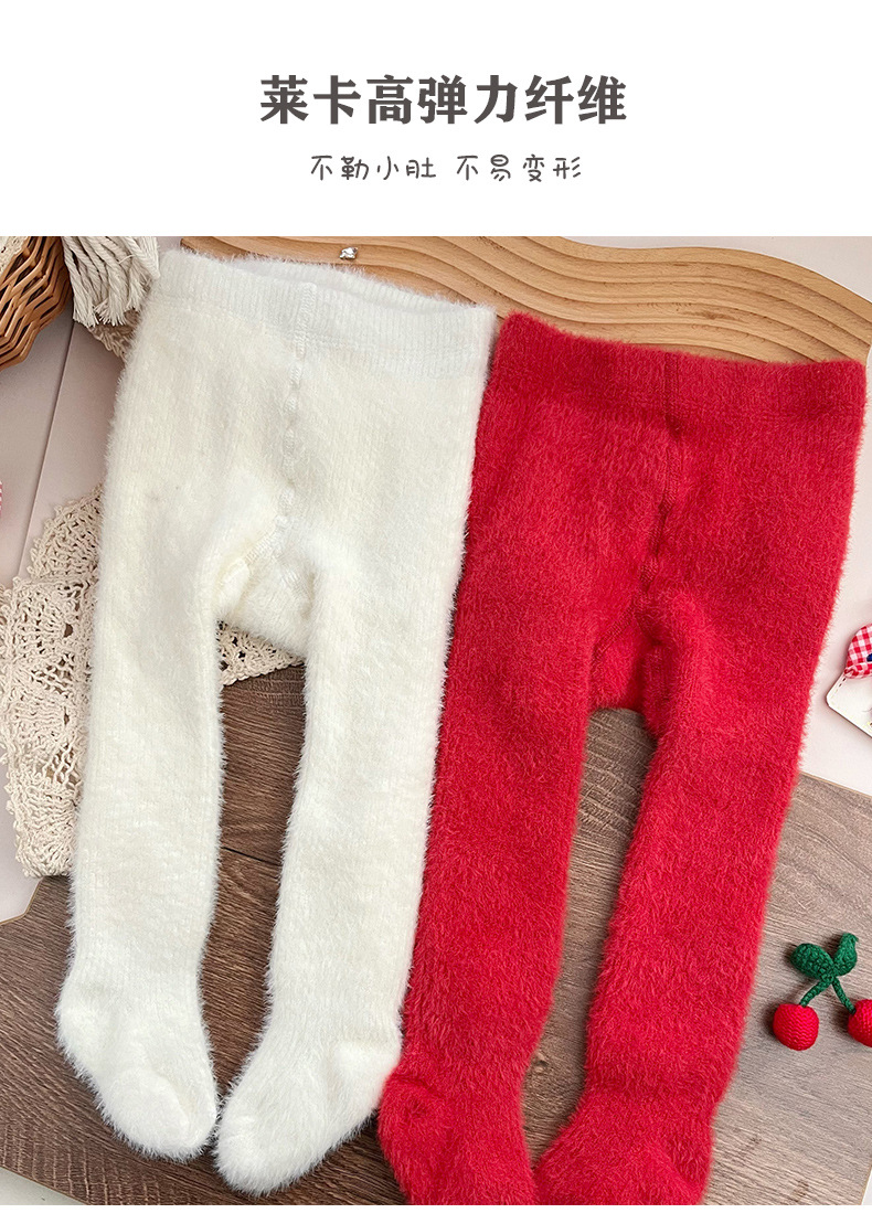 어린이 겨울 두꺼운 밍크 벨벳 따뜻한 팬티 스타킹 아기의 니트 스킨 친화적 소프트 올 매치 레깅스 레드