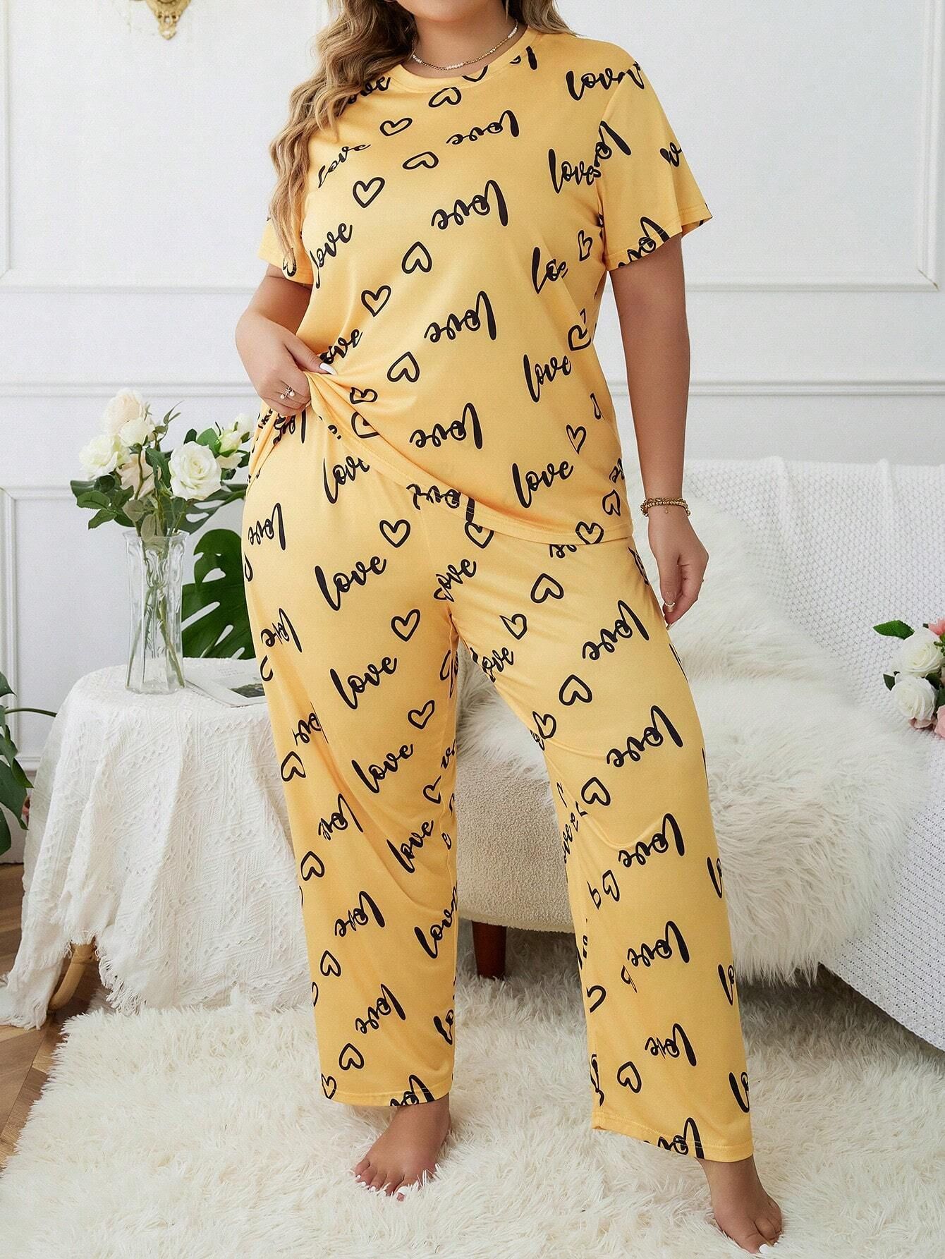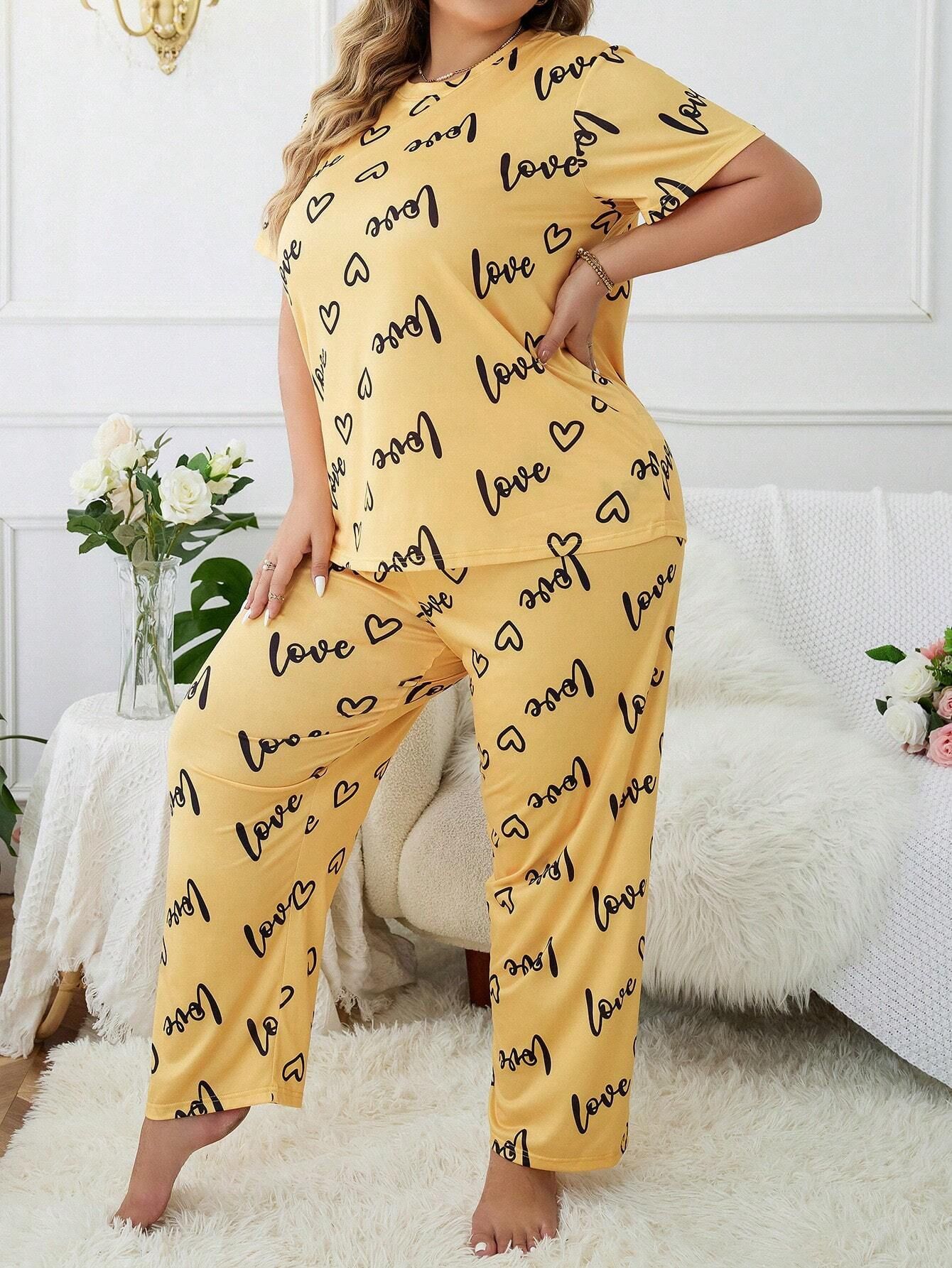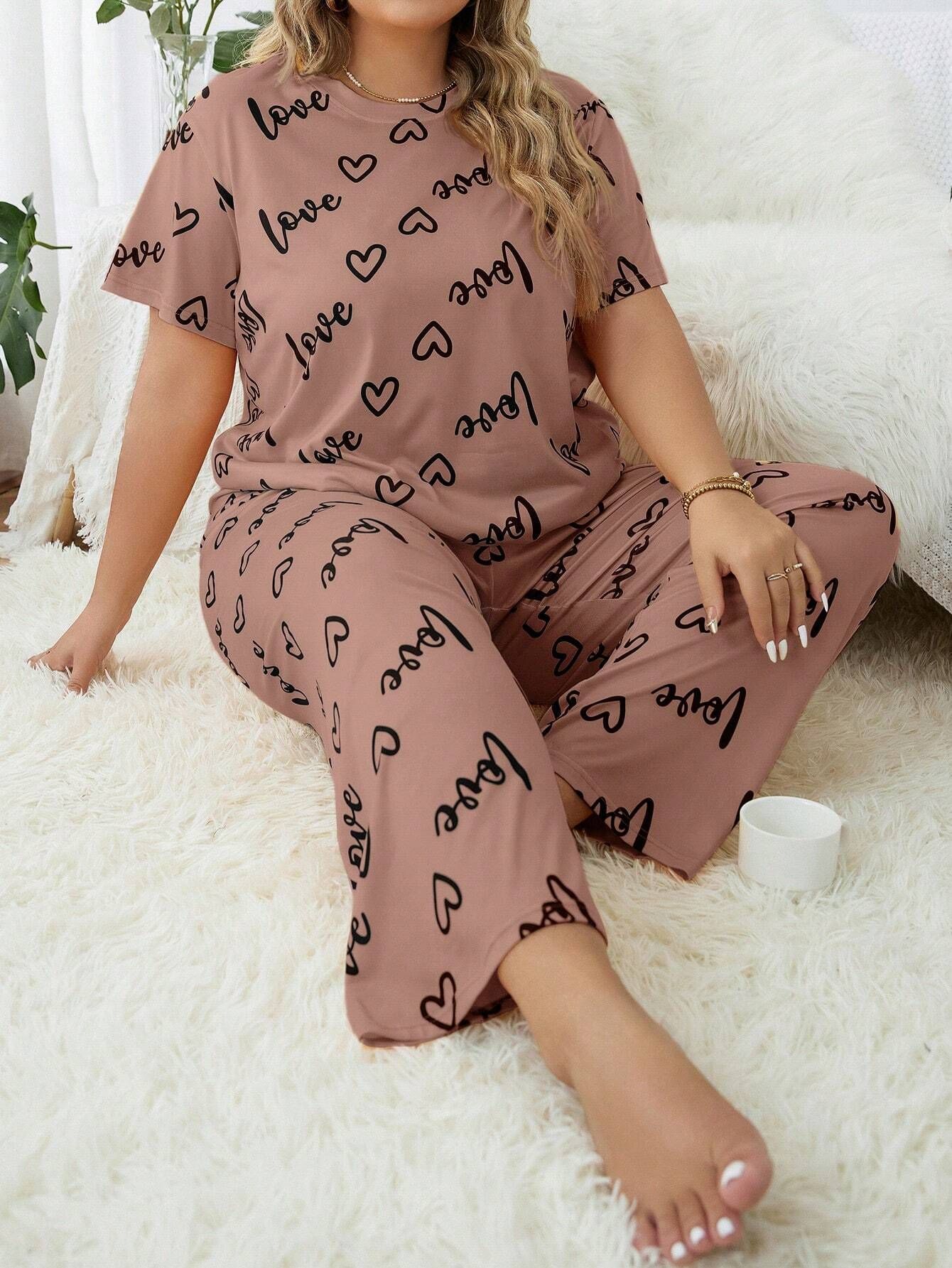 Temu 국경 간 유럽과 미국 스타일의 플러스 사이즈 홈 옷과 뚱뚱한 사랑 둥근 목 짧은 소매 바지 여성 잠옷 세트스토어 가기