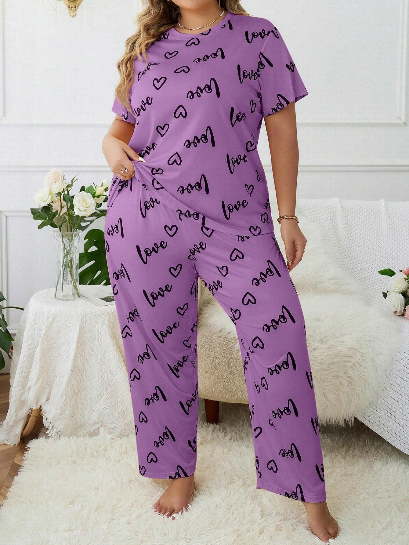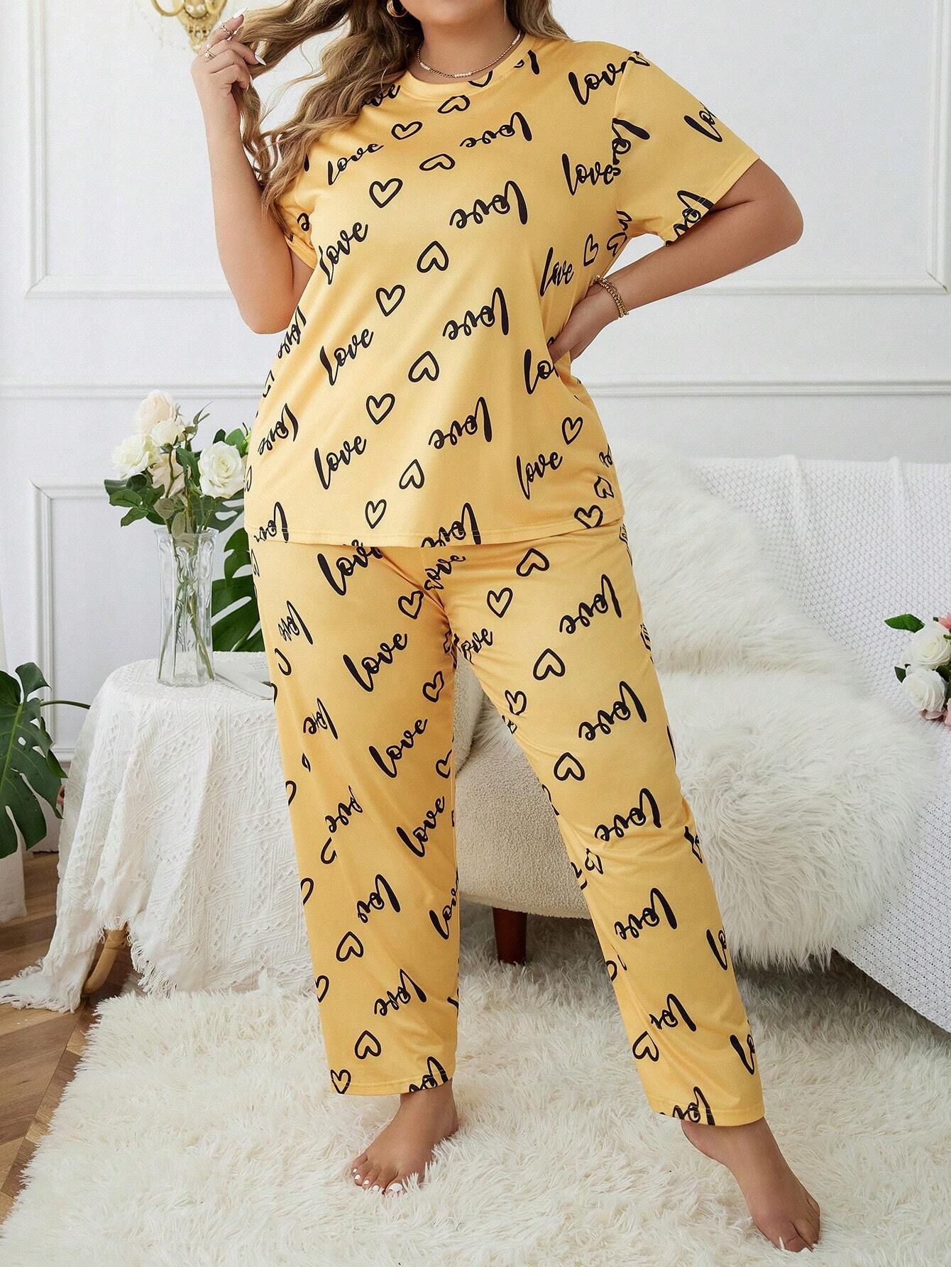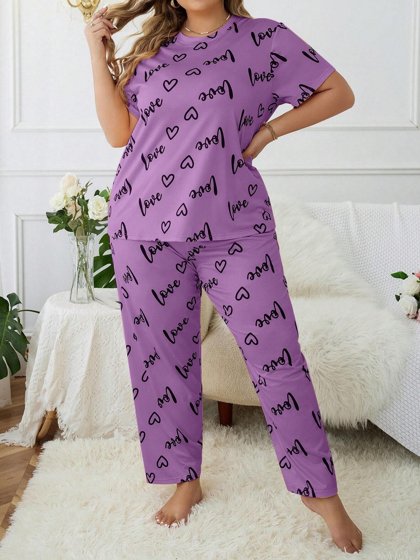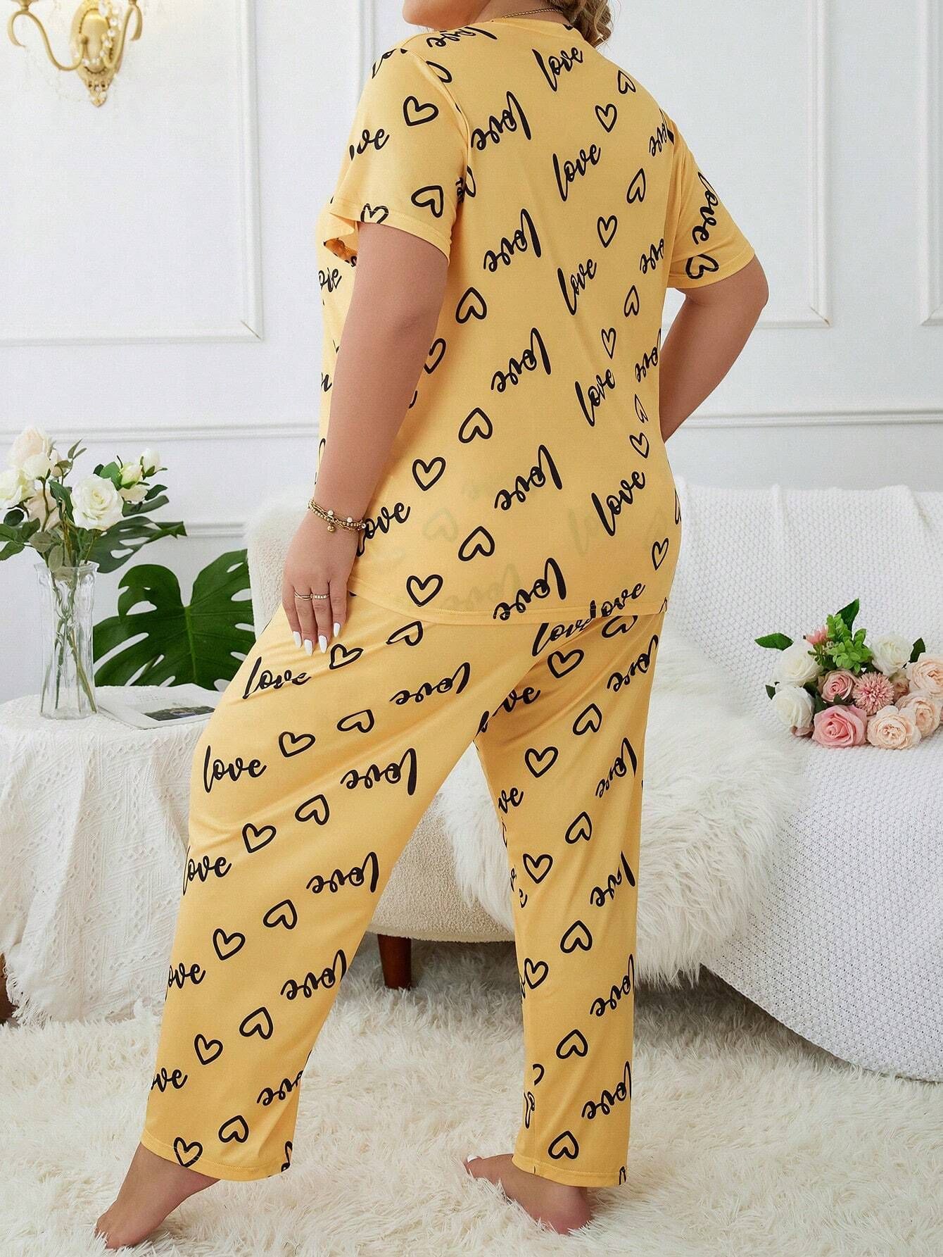 Temu 국경 간 유럽과 미국 스타일의 플러스 사이즈 홈 옷과 뚱뚱한 사랑 둥근 목 짧은 소매 바지 여성 잠옷 세트스토어 가기