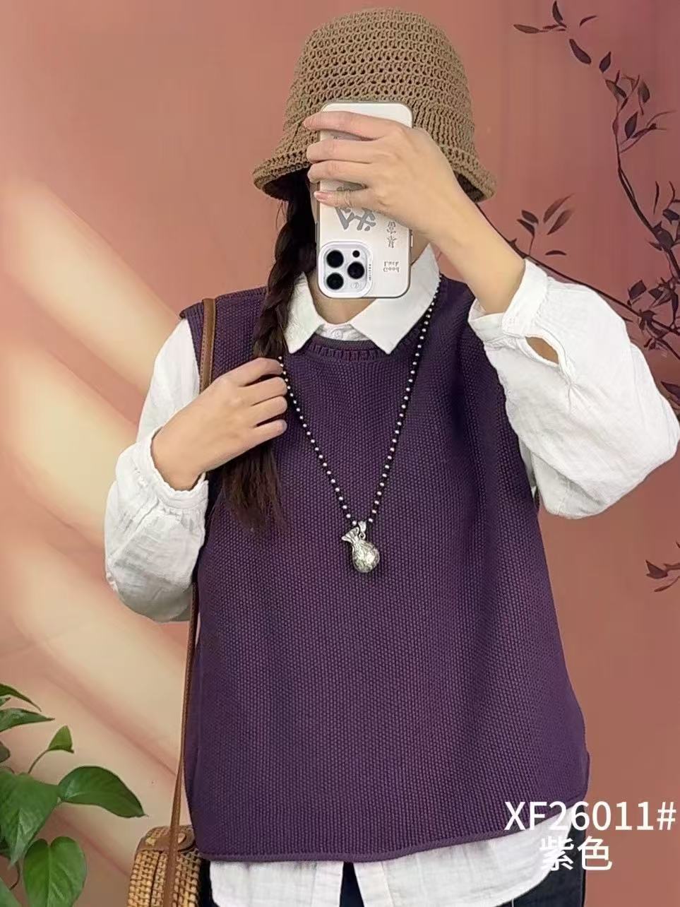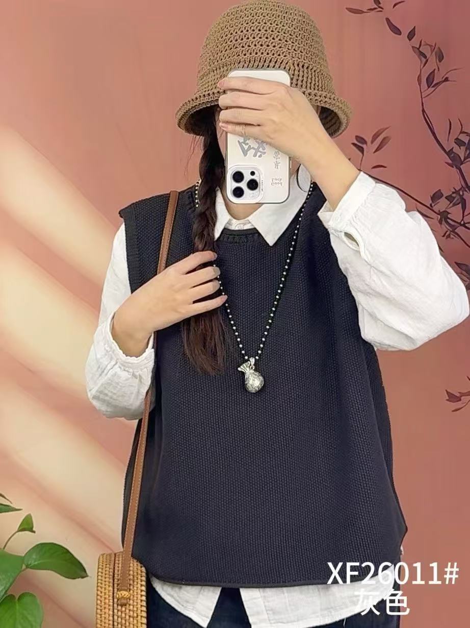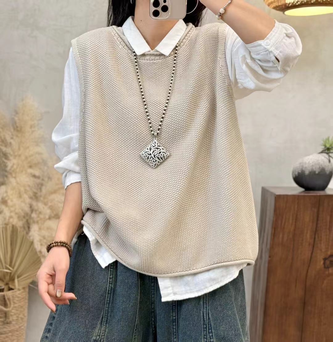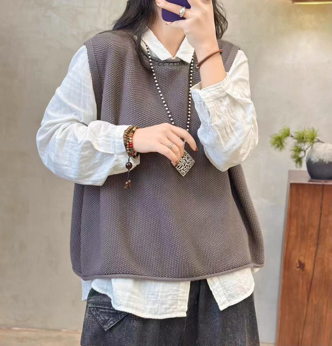 2025 봄 새 라운드 넥 풀오버 코튼 니트 조끼 여자 캐주얼 올 매치 스택 아우터 코트 5188