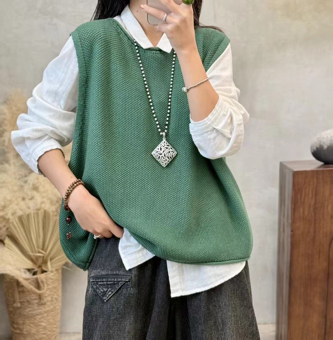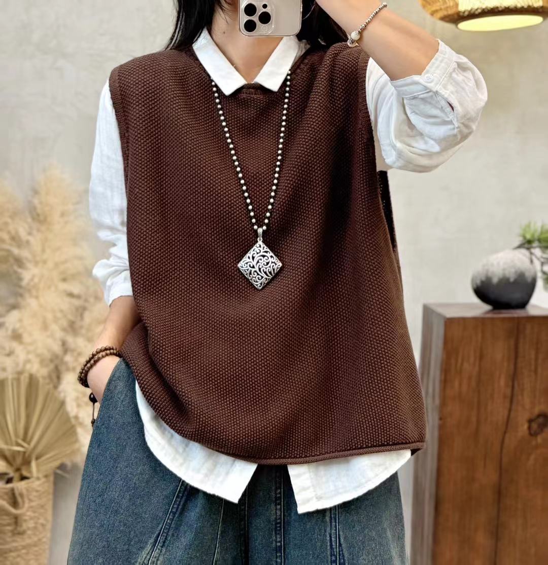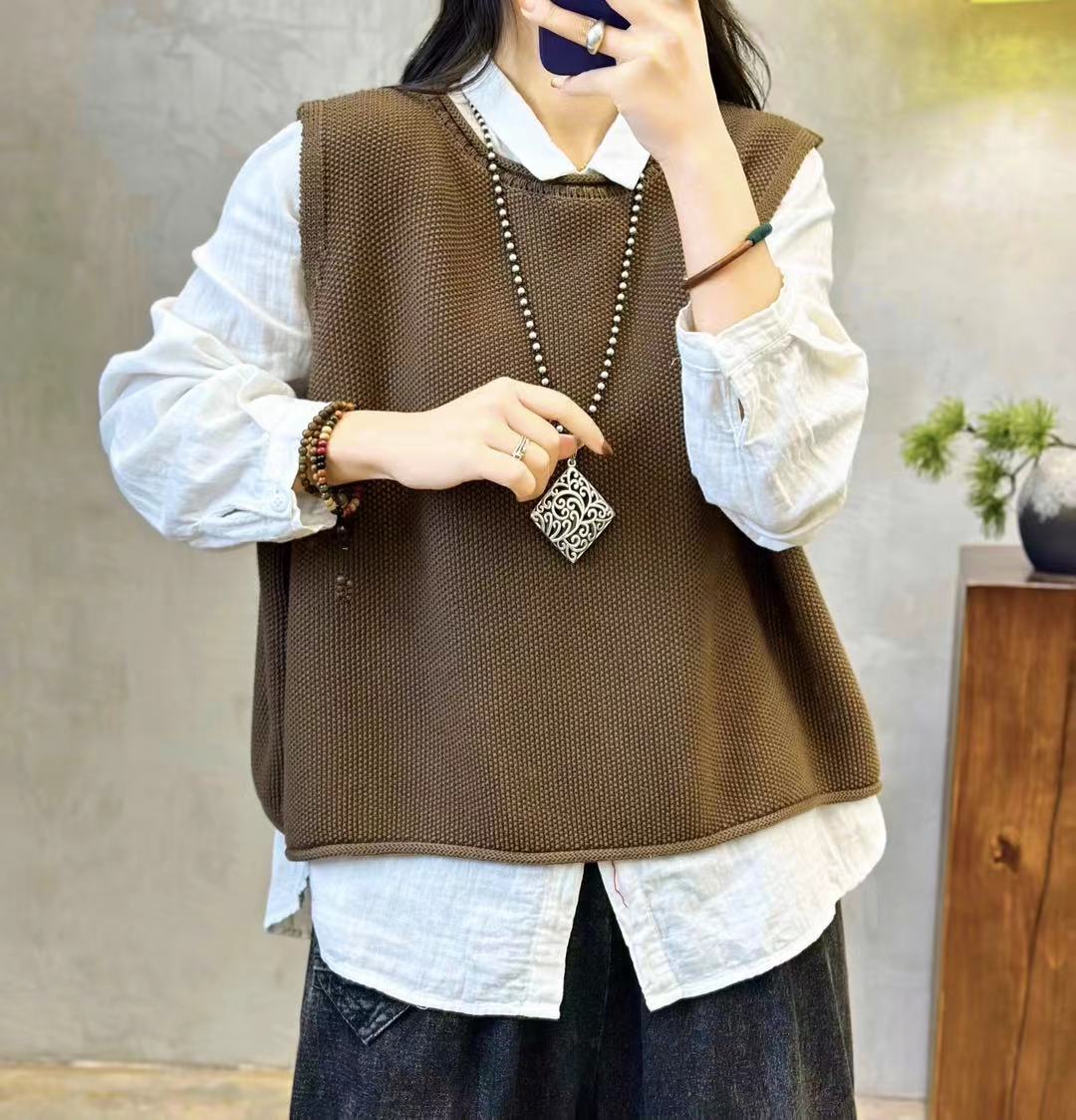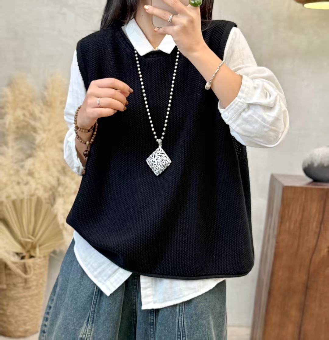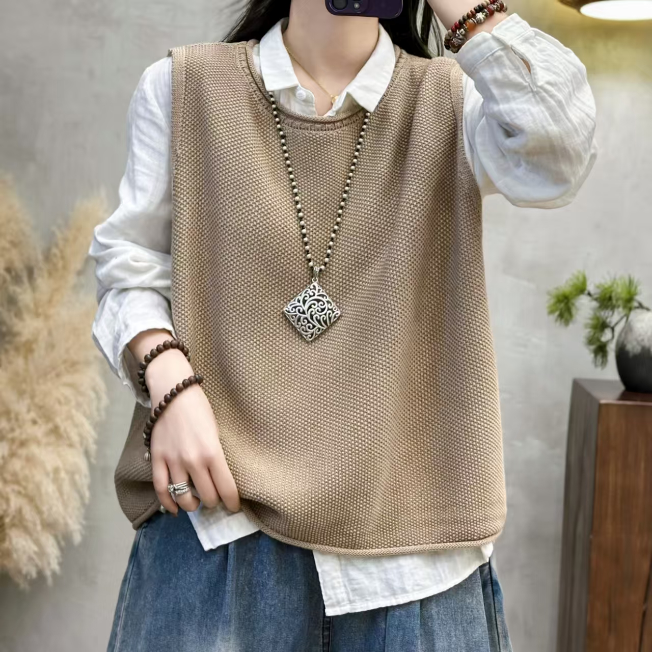 2025 봄 새 라운드 넥 풀오버 코튼 니트 조끼 여자 캐주얼 올 매치 스택 아우터 코트 5188