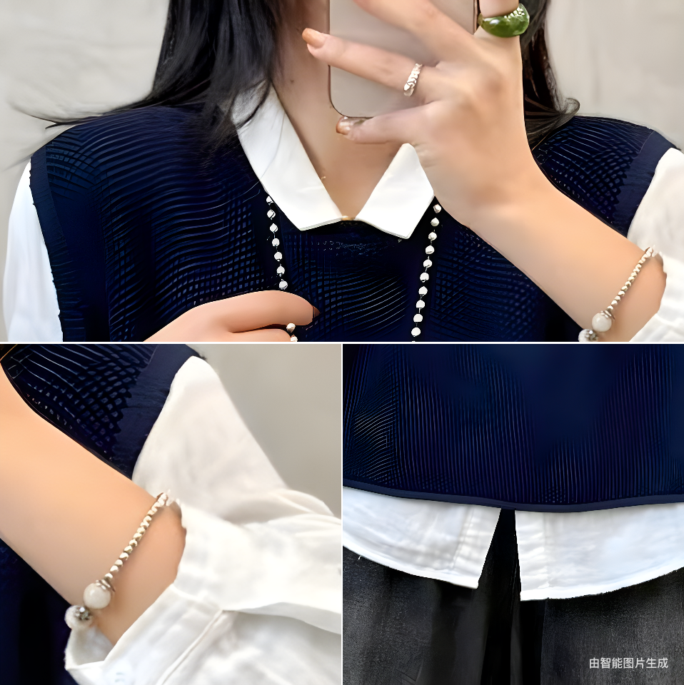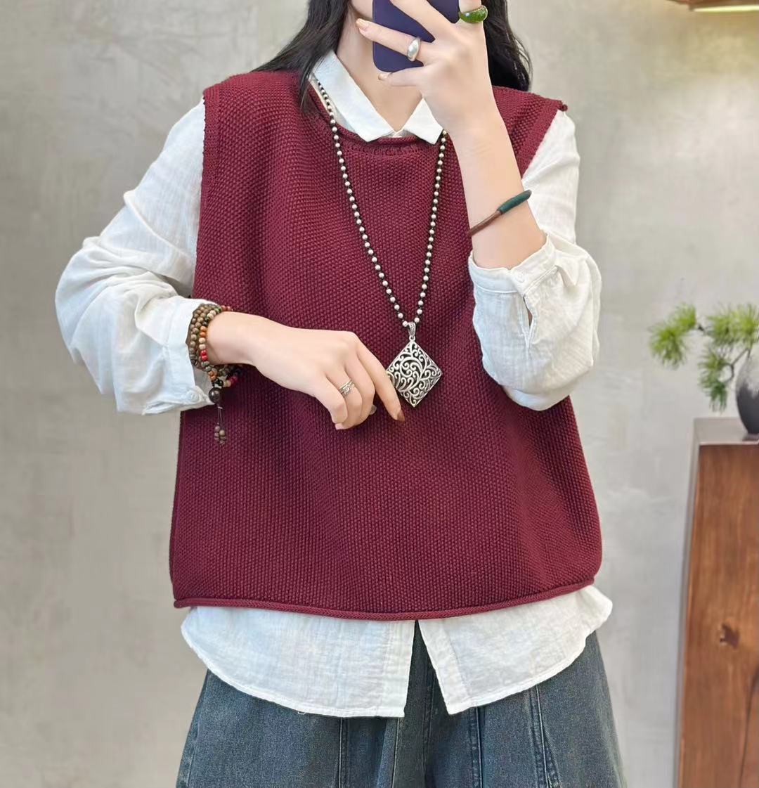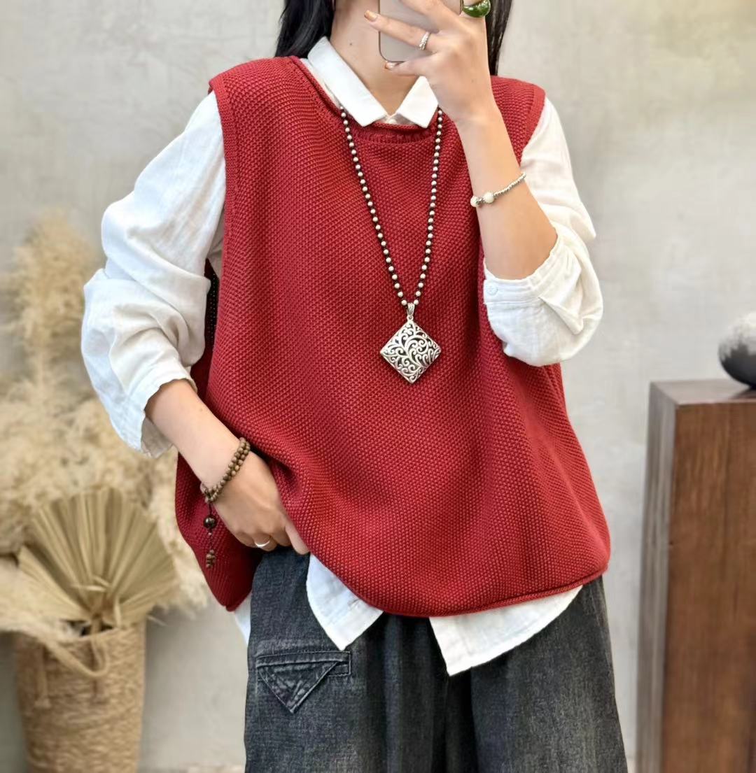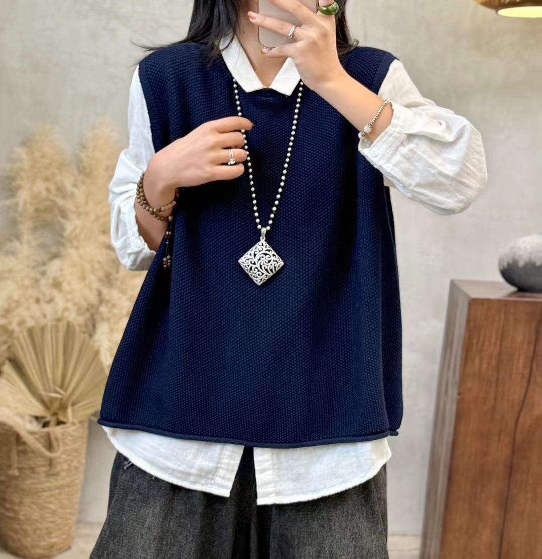 2025 봄 새 라운드 넥 풀오버 코튼 니트 조끼 여자 캐주얼 올 매치 스택 아우터 코트 5188