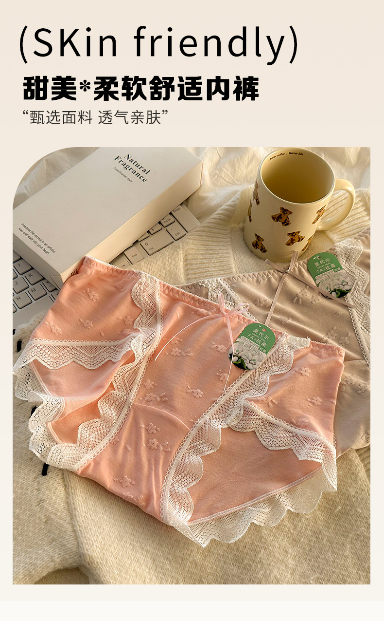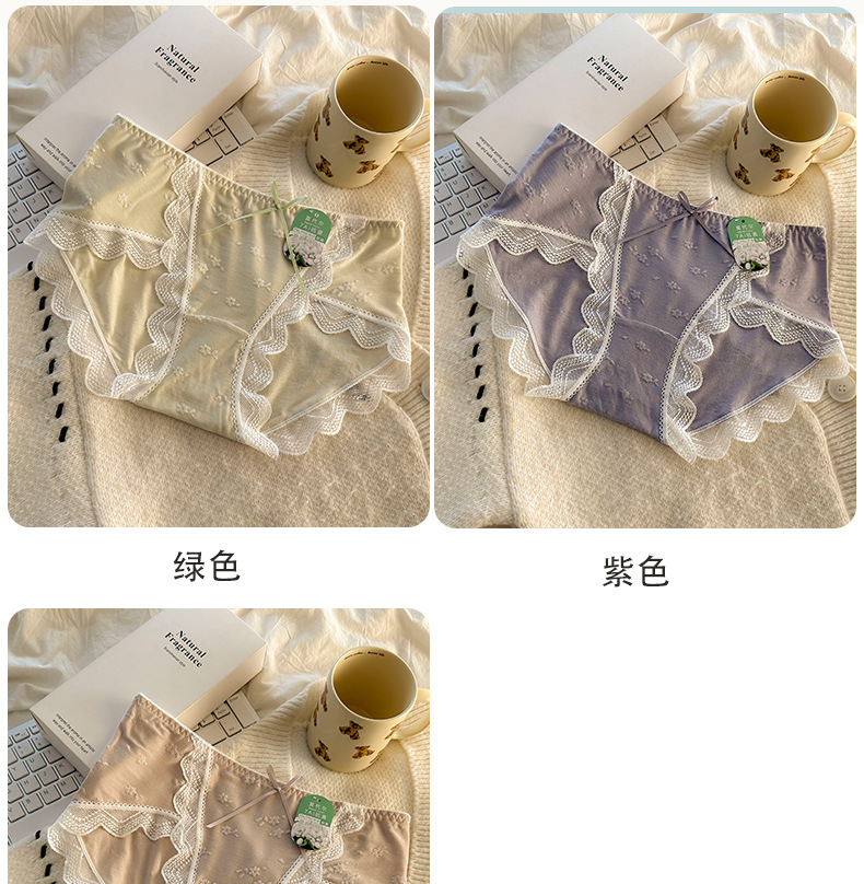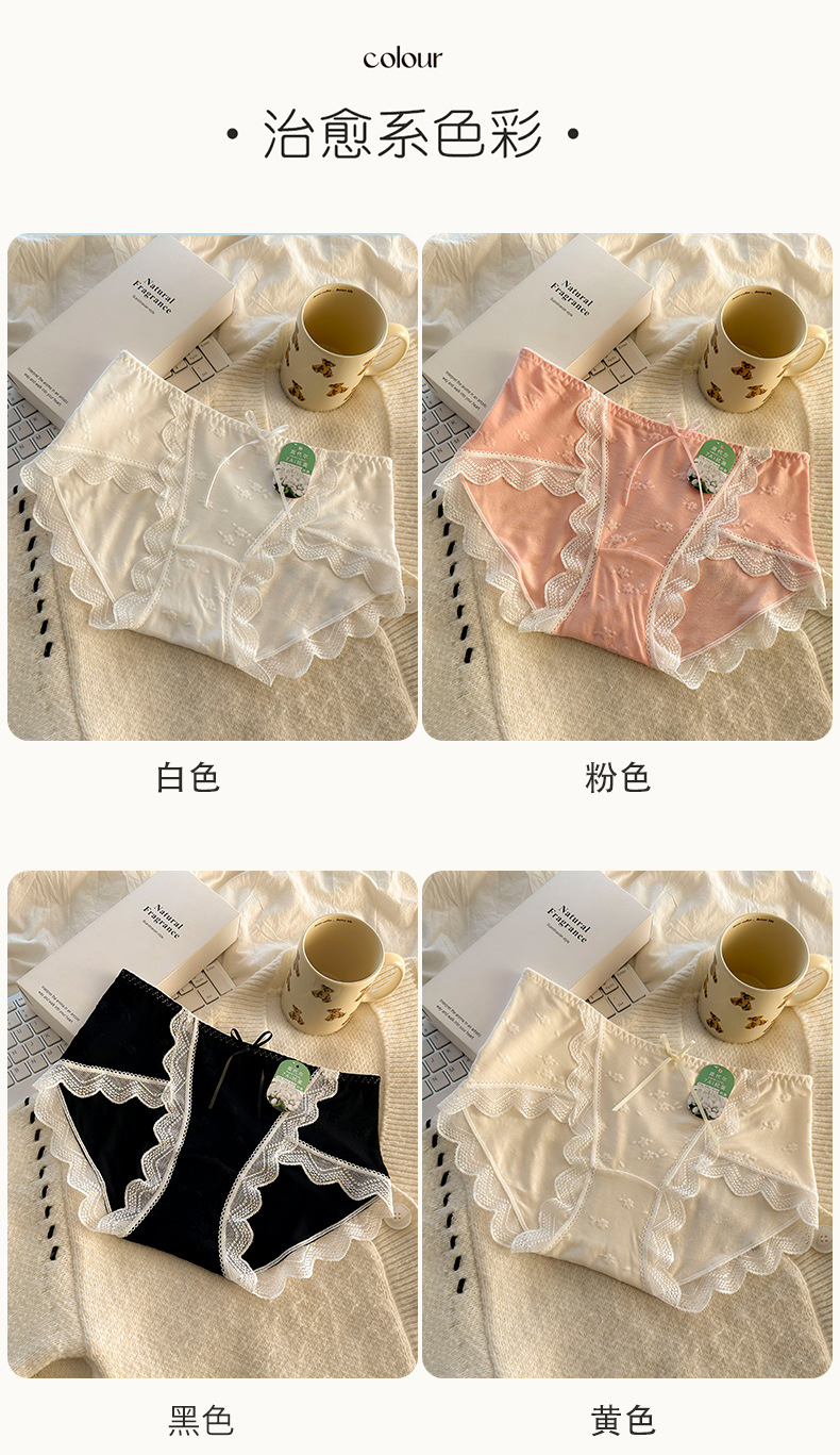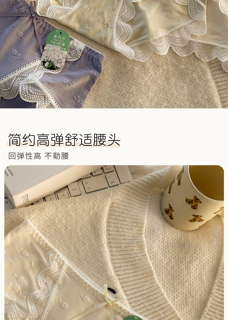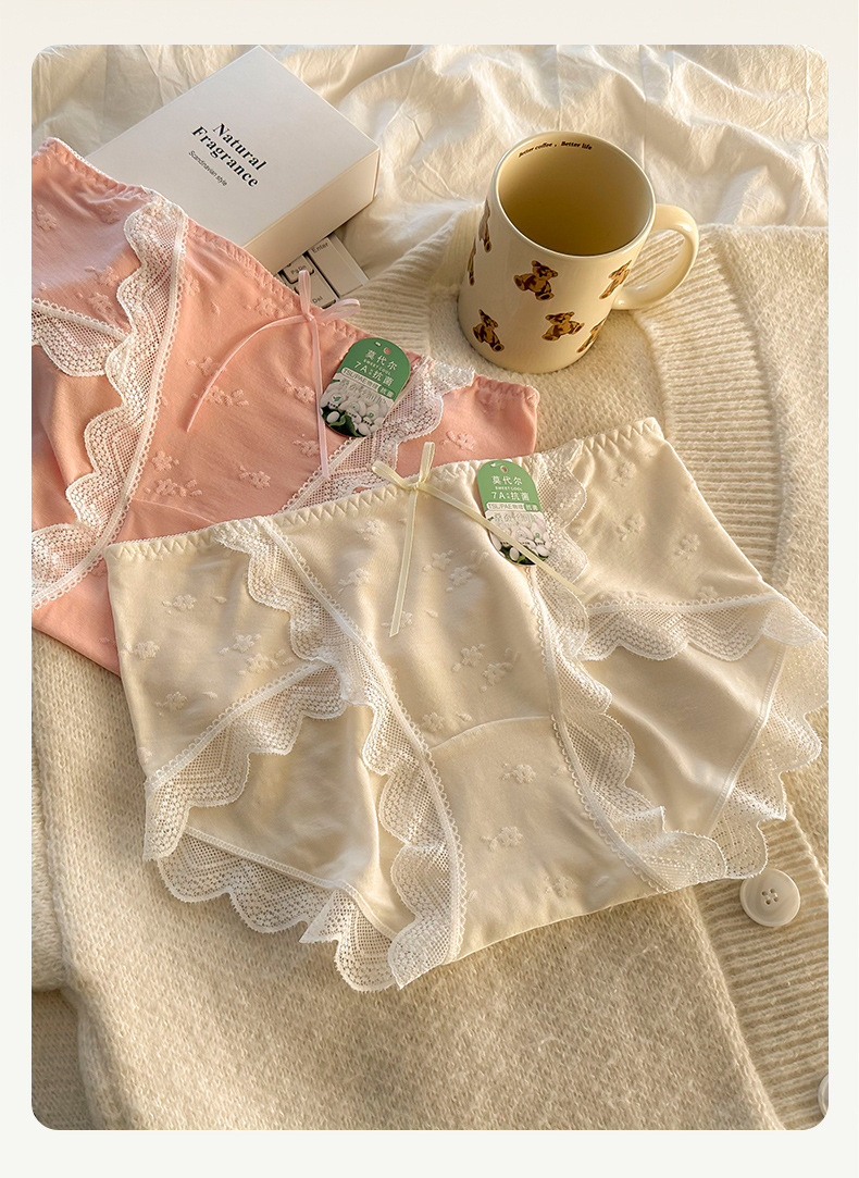 모달 속옷 7A 항균 면화 크로트 소녀 스위트 레이스 미드 허리 엉덩이 자카드 브리프스토어 가기