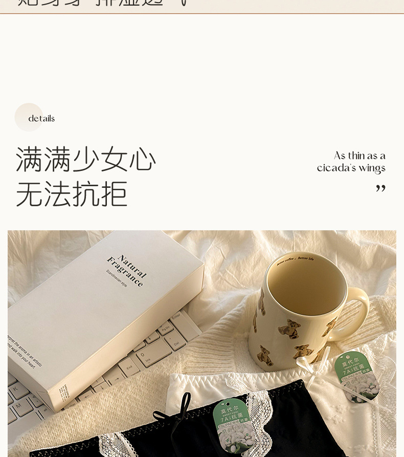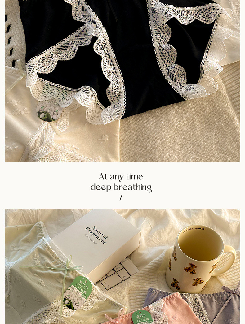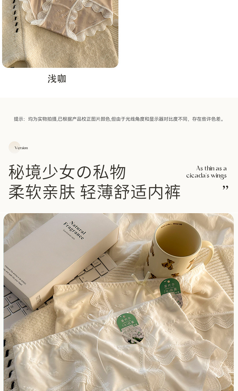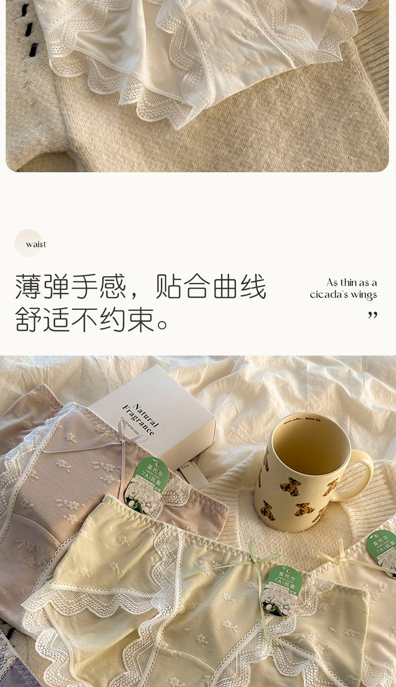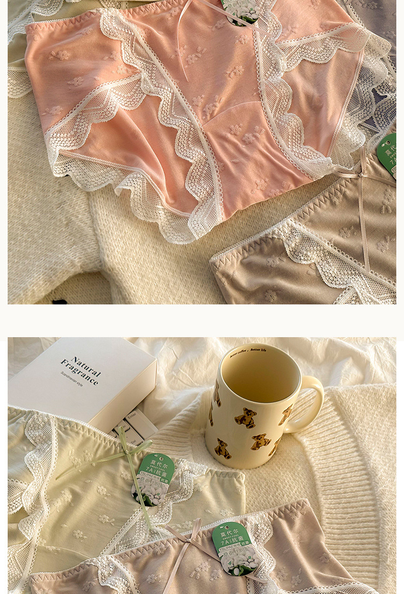 모달 속옷 7A 항균 면화 크로트 소녀 스위트 레이스 미드 허리 엉덩이 자카드 브리프스토어 가기