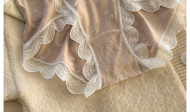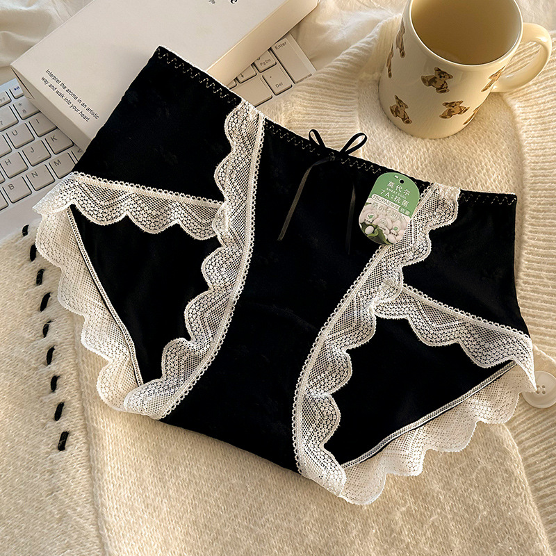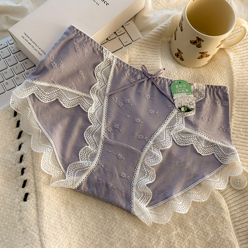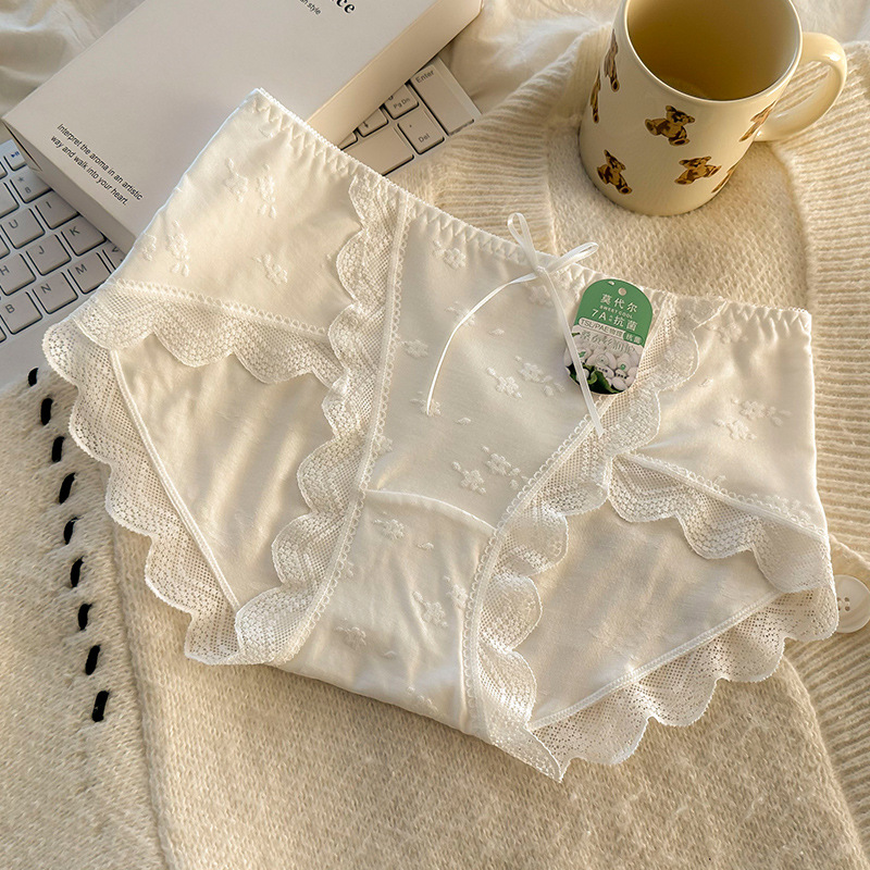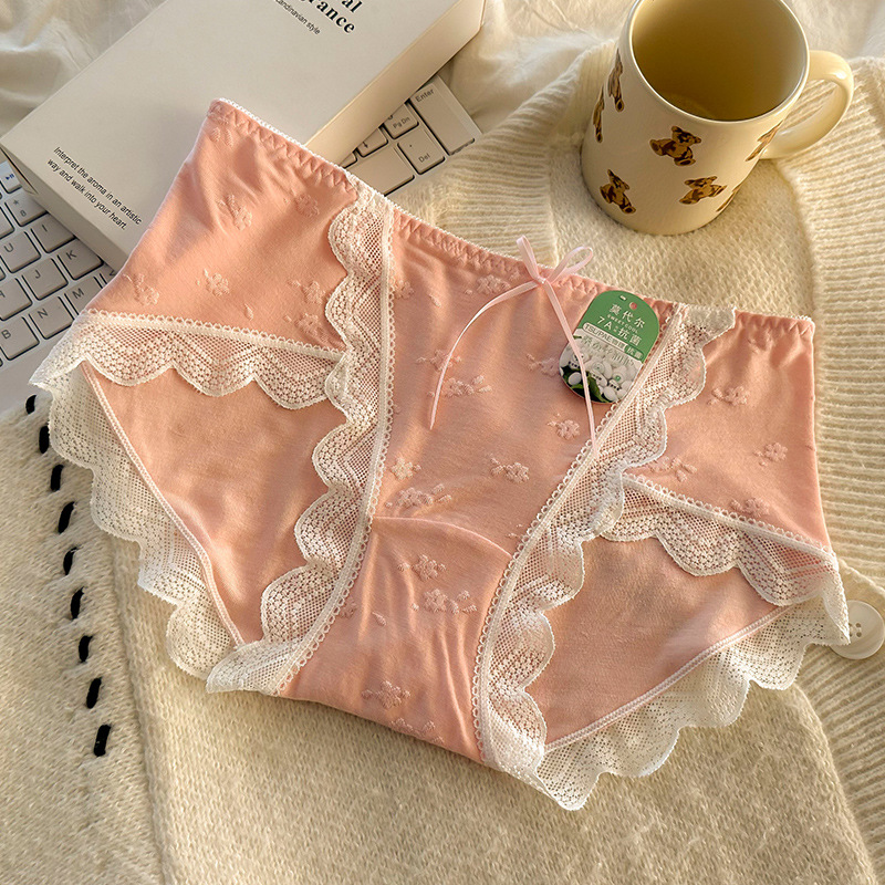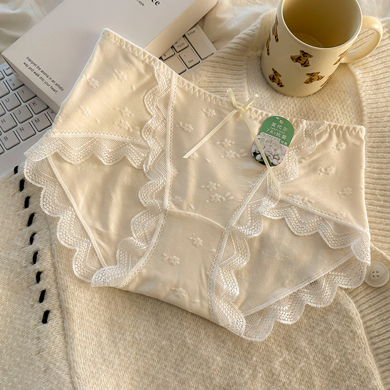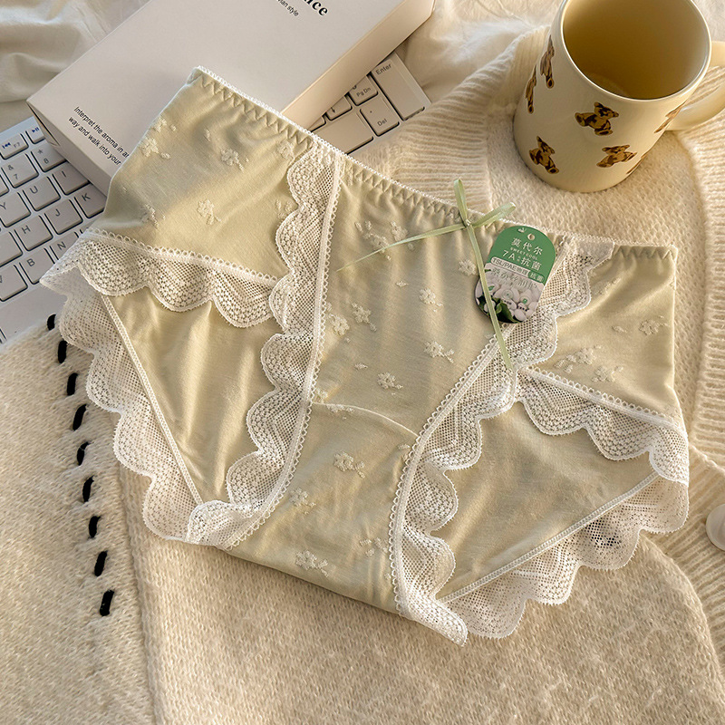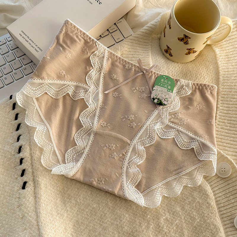모달 속옷 7A 항균 면화 크로트 소녀 스위트 레이스 미드 허리 엉덩이 자카드 브리프