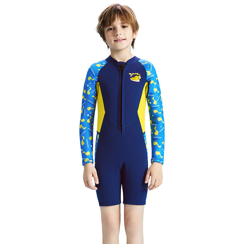 어린이 잠수복 2.5MM 원피스 긴팔 반바지 따뜻한 잠수복 소년 스노클링 서핑 방한 해파리 슈트