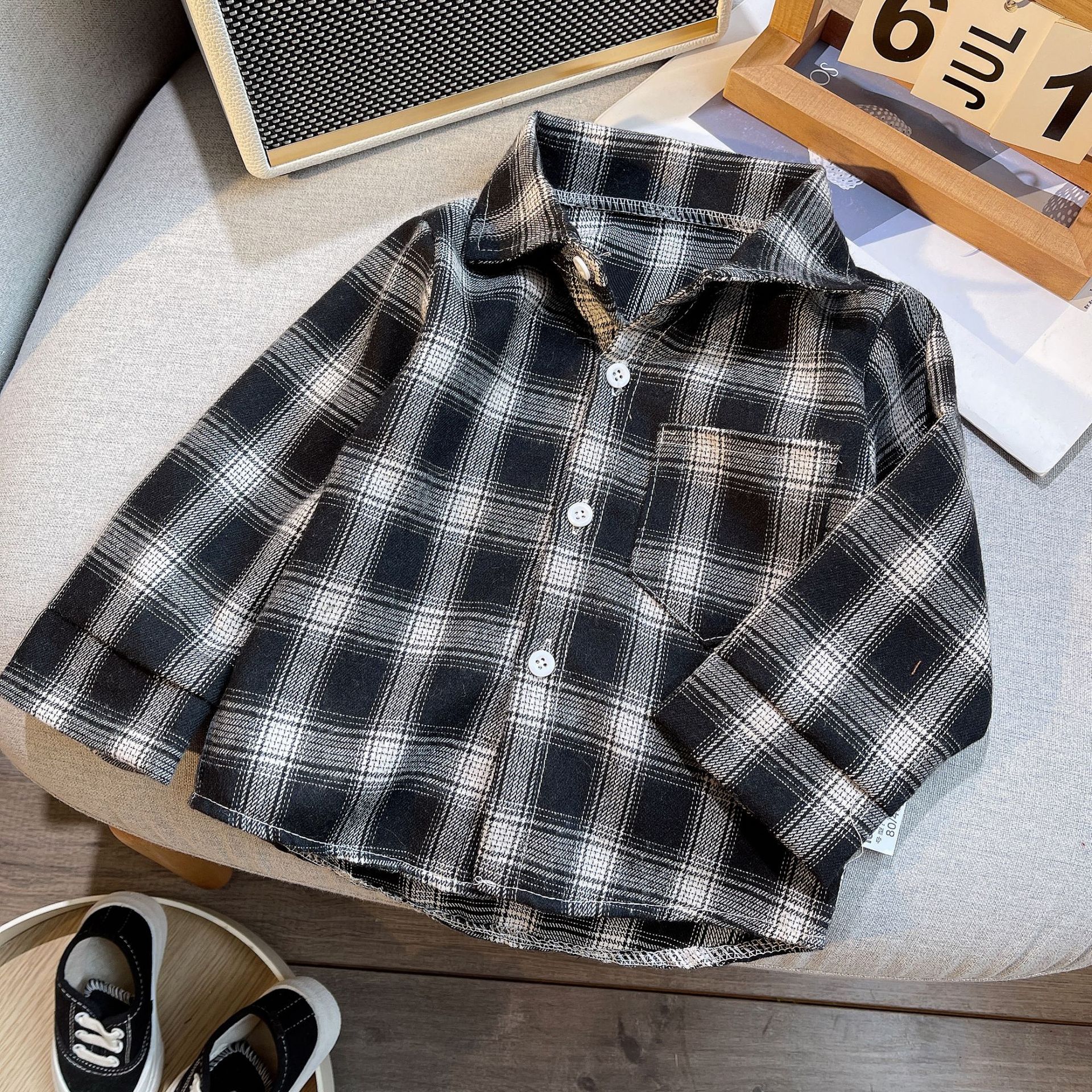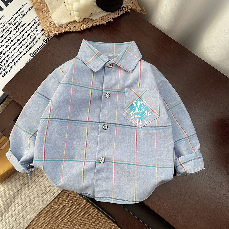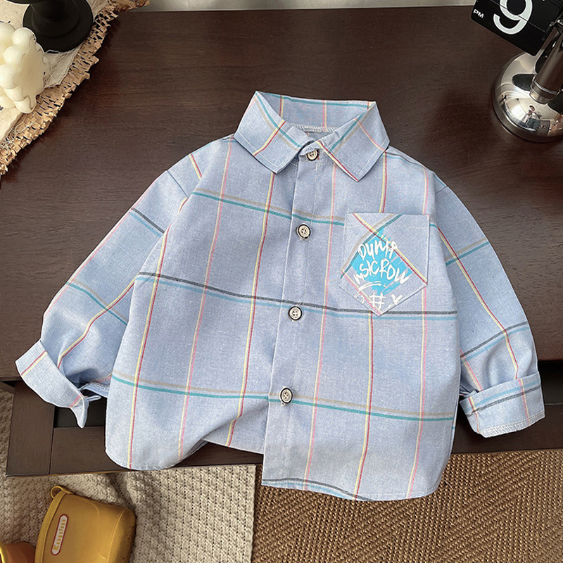 2025 봄과 여름 새로운 어린이 옷깃 셔츠 한국 스타일 귀여운 낙서 만화 코트 긴 소매 셔츠 아기 탑스토어 가기
