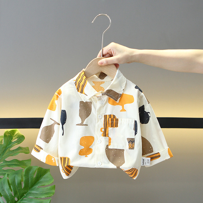 2025 봄과 여름 새로운 어린이 옷깃 셔츠 한국 스타일 귀여운 낙서 만화 코트 긴 소매 셔츠 아기 탑
