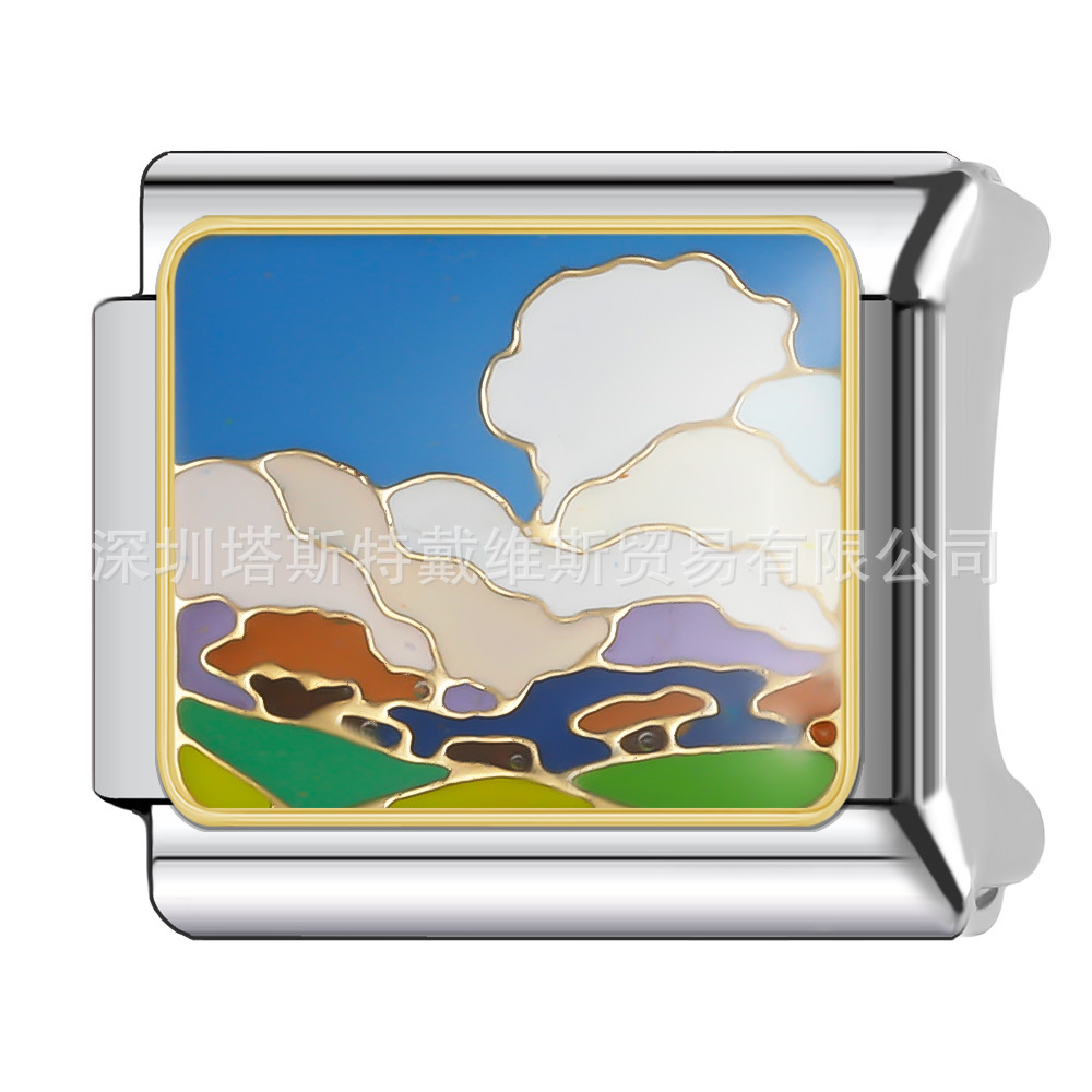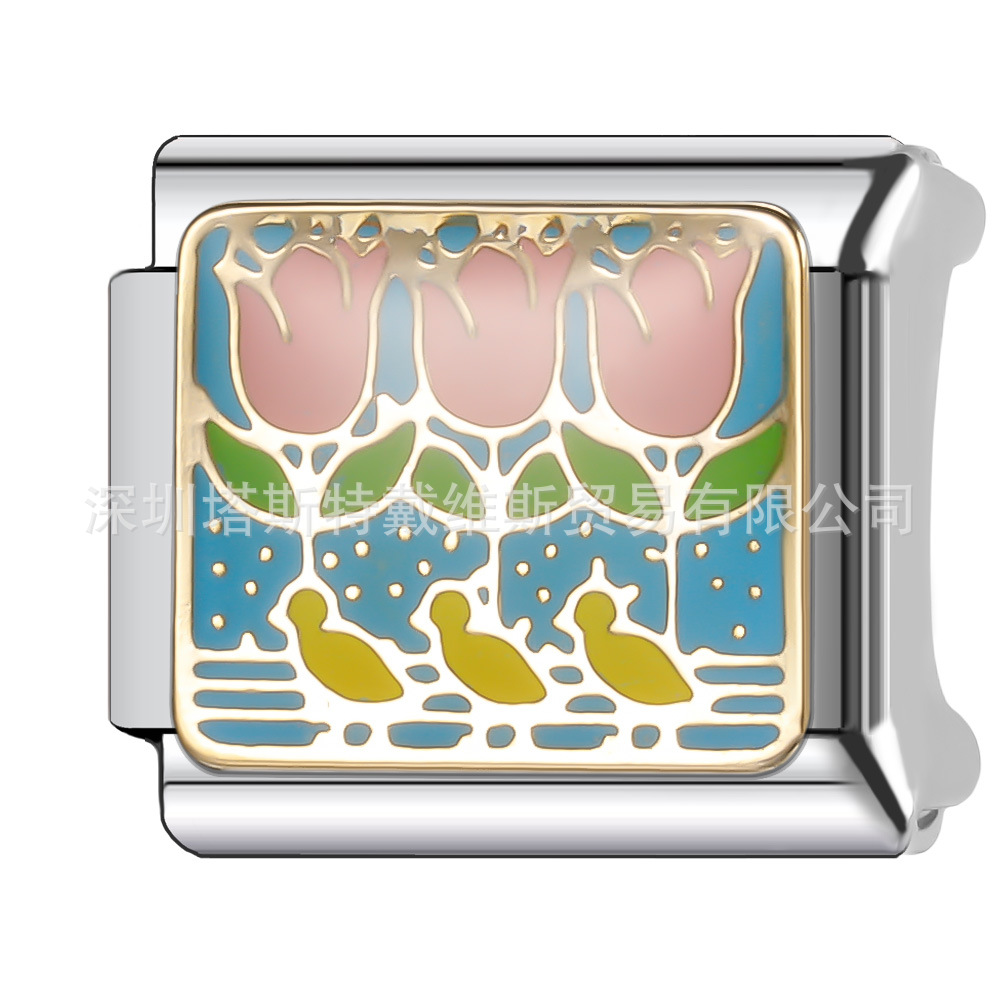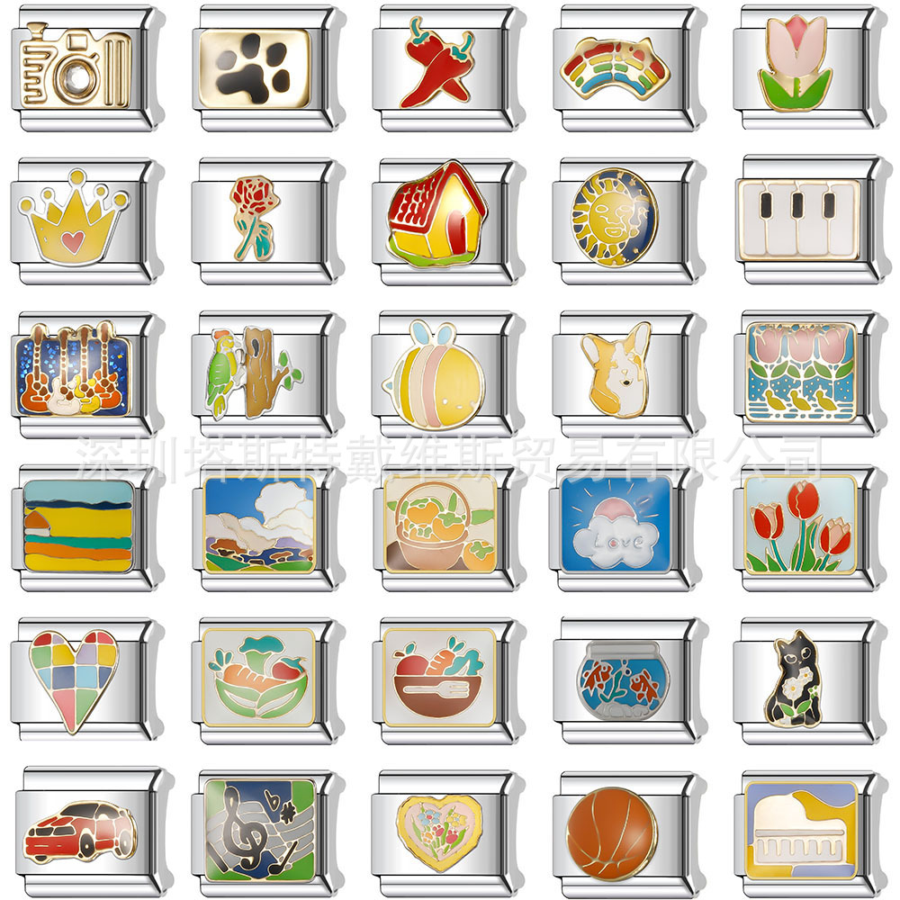 목가적 스타일 시리즈 이탈리아 모듈식 팔찌 9MM 스테인레스 스틸 크로스보더 신상품 틈새 DIY 스티치 핸드 액세서리스토어 가기