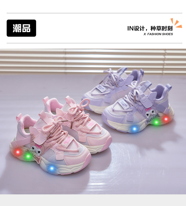 여아 쿠로미 발광 운동화 2025 봄 가을 신상 귀여운 만화 공주 신발 어린이 경량 러닝화스토어 가기