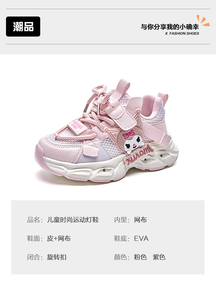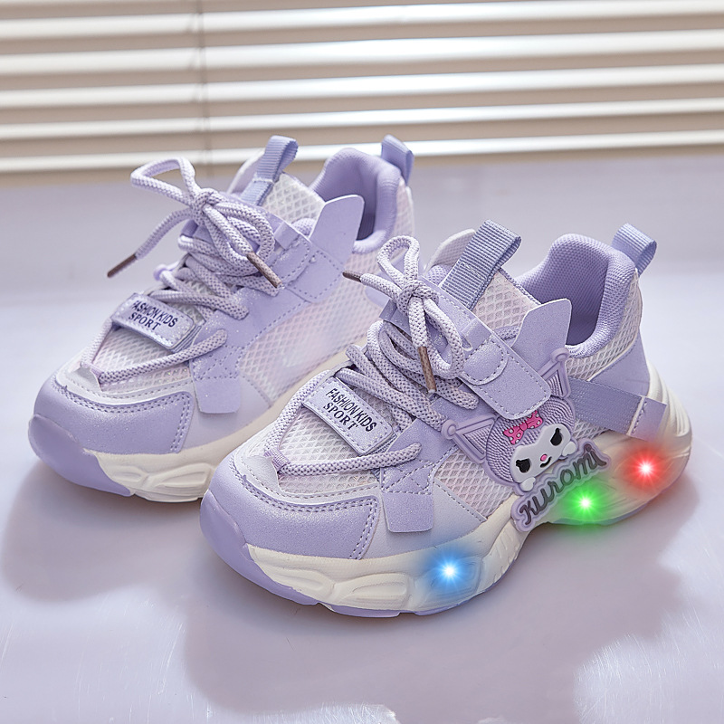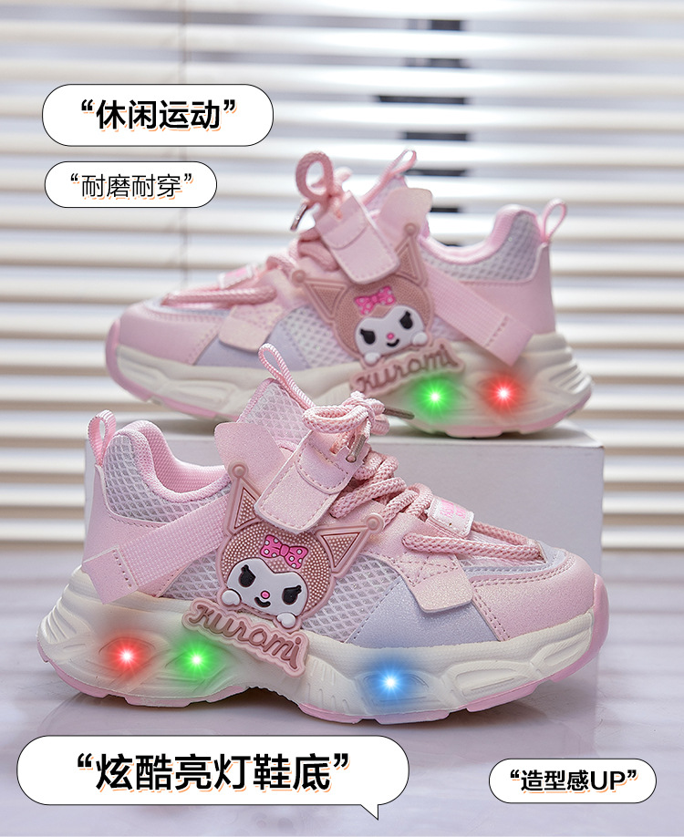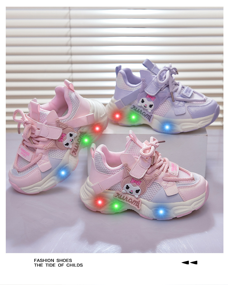 여아 쿠로미 발광 운동화 2025 봄 가을 신상 귀여운 만화 공주 신발 어린이 경량 러닝화
