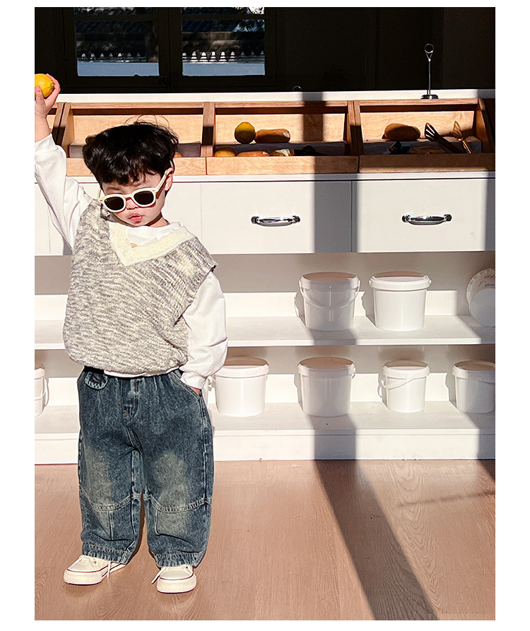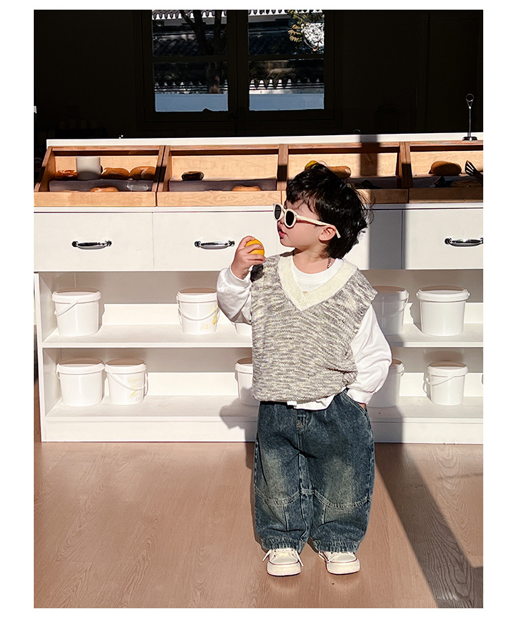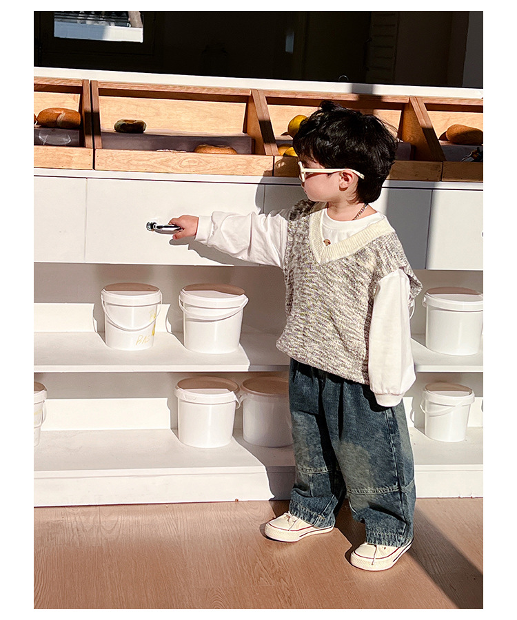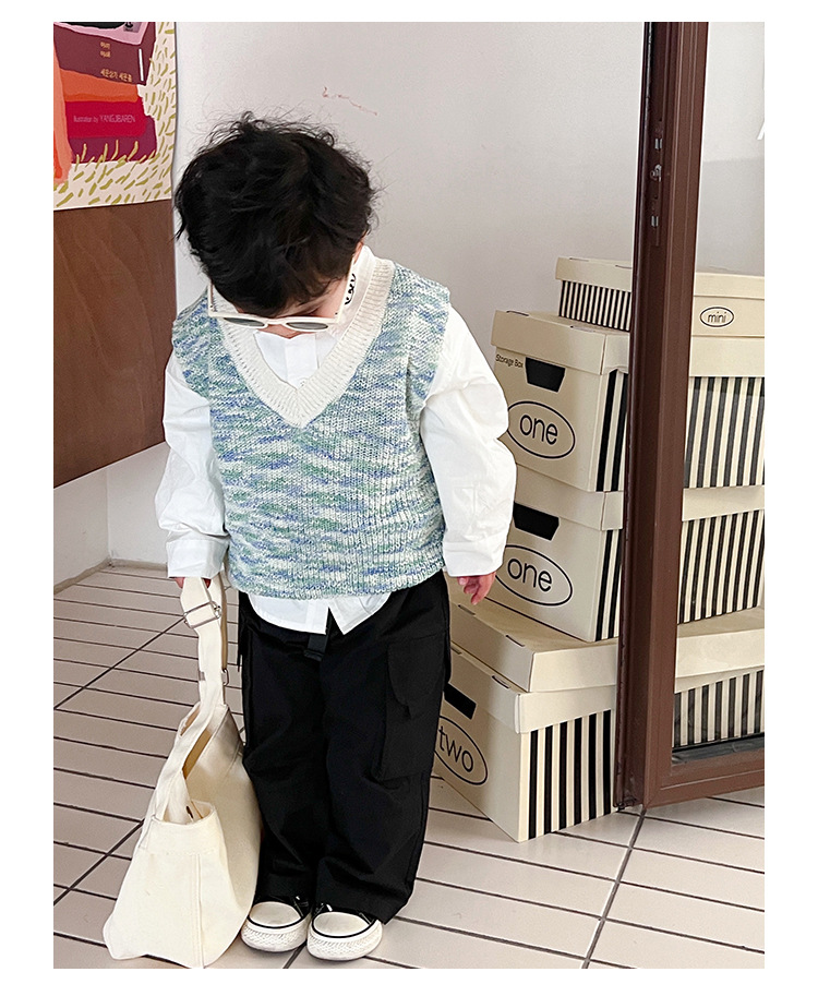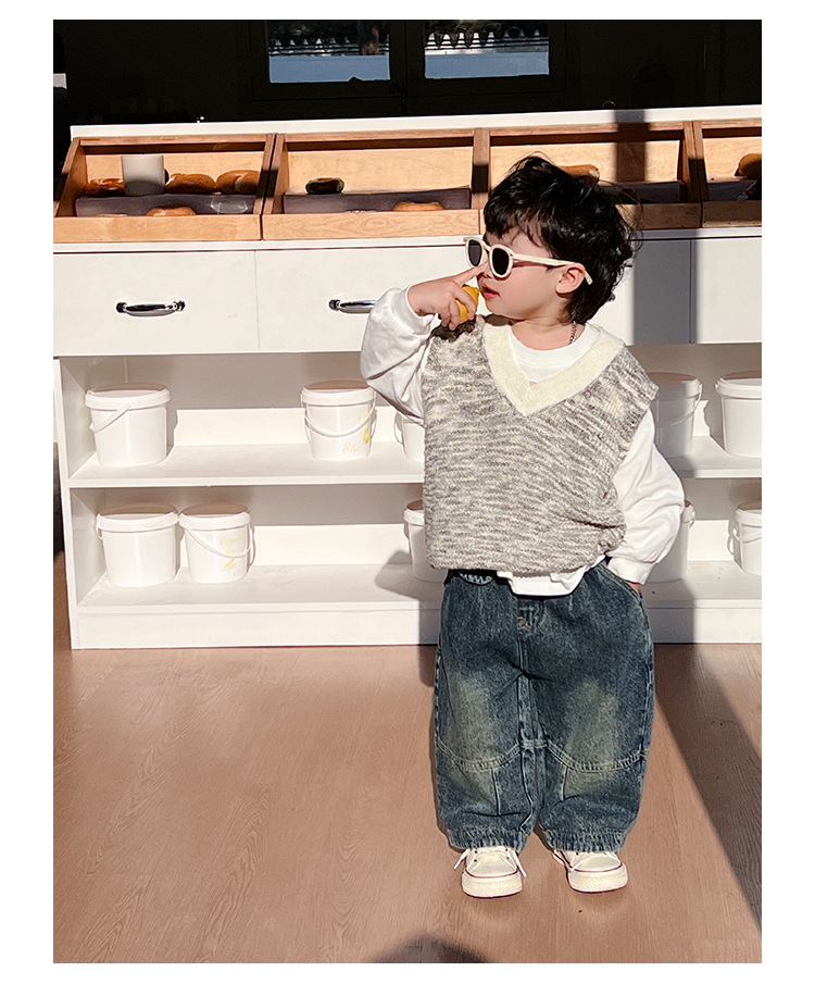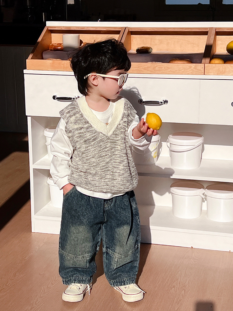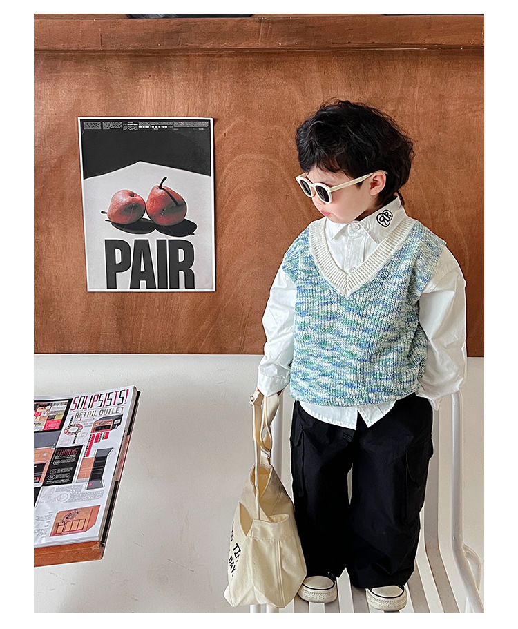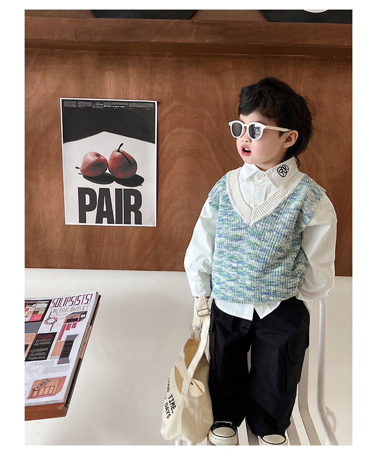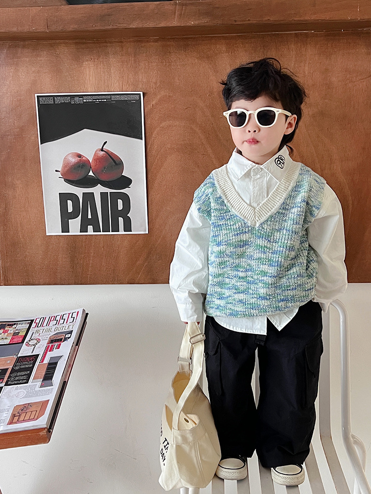 아기 니트 조끼 봄 2025 새로운 도착 남자 어린이 유행 잘 생긴 톱 한국 어린이 착용 어린이 조끼 유행스토어 가기