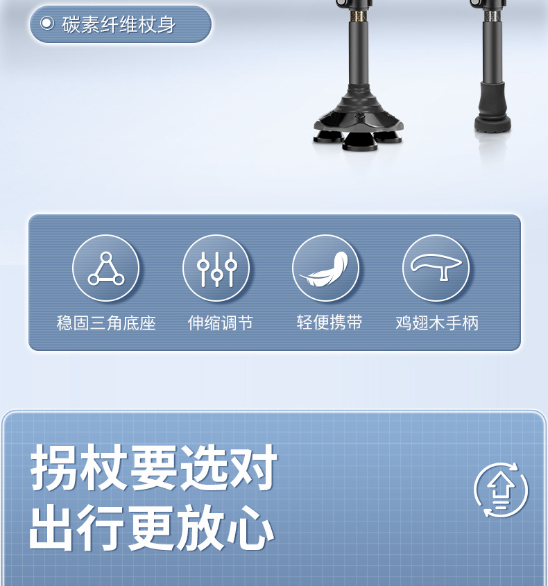 금봉, 4족 탄소섬유 지팡이, 치킨윙우드, 신축성 있는 미끄럼 방지 지팡이, 노인용 초경량 지팡이스토어 가기