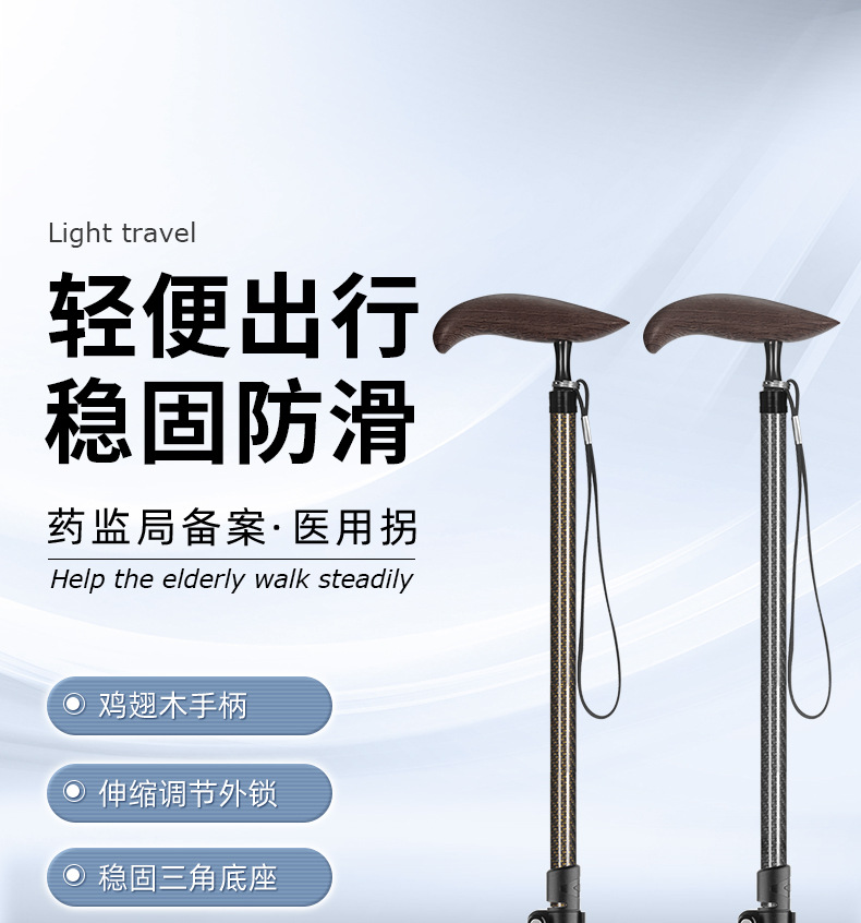 금봉, 4족 탄소섬유 지팡이, 치킨윙우드, 신축성 있는 미끄럼 방지 지팡이, 노인용 초경량 지팡이
