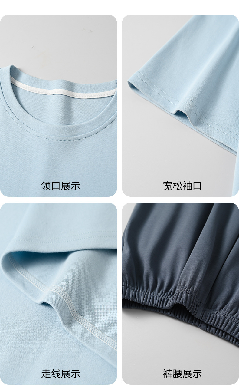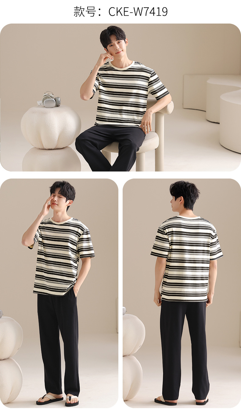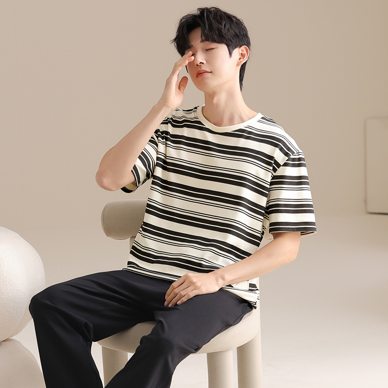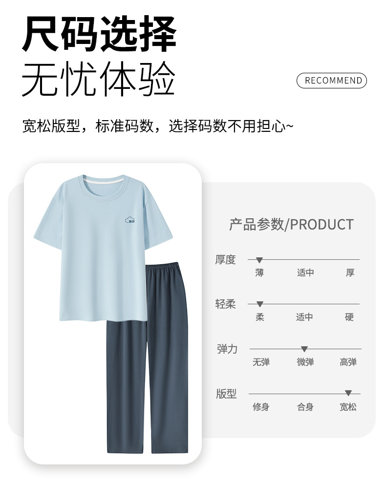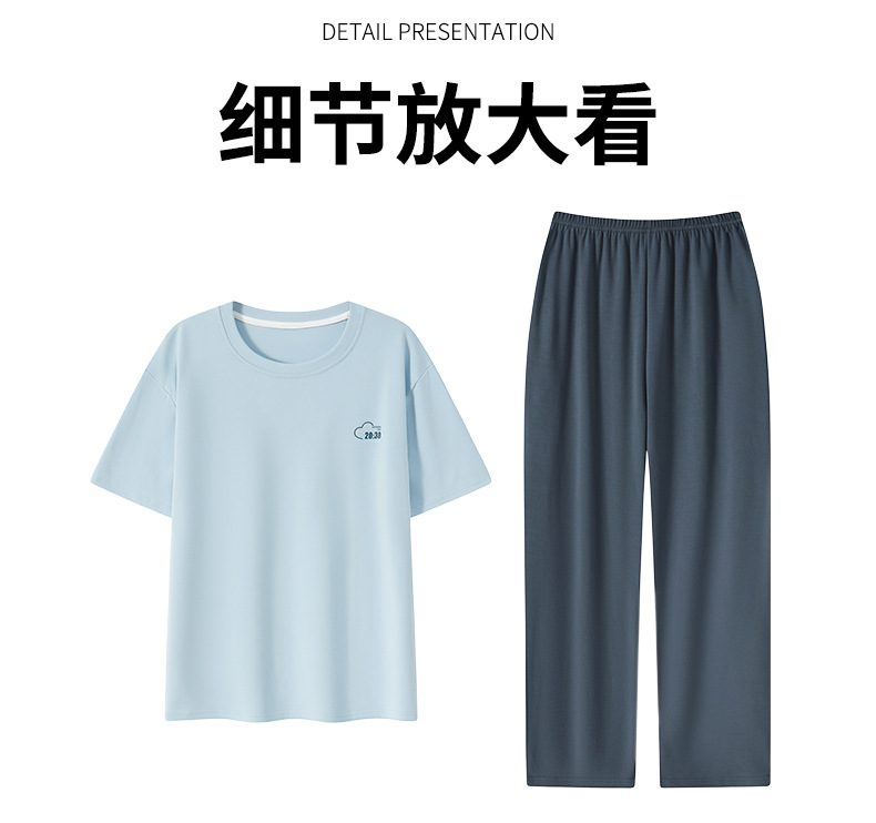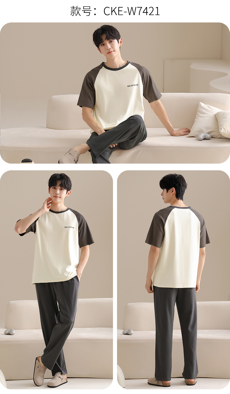 풀오버 순수 코튼 남성 잠옷 봄과 여름 새로운 반팔 라운드 넥 바지 솔리드 컬러 캐주얼 겉옷 홈웨어 세트스토어 가기