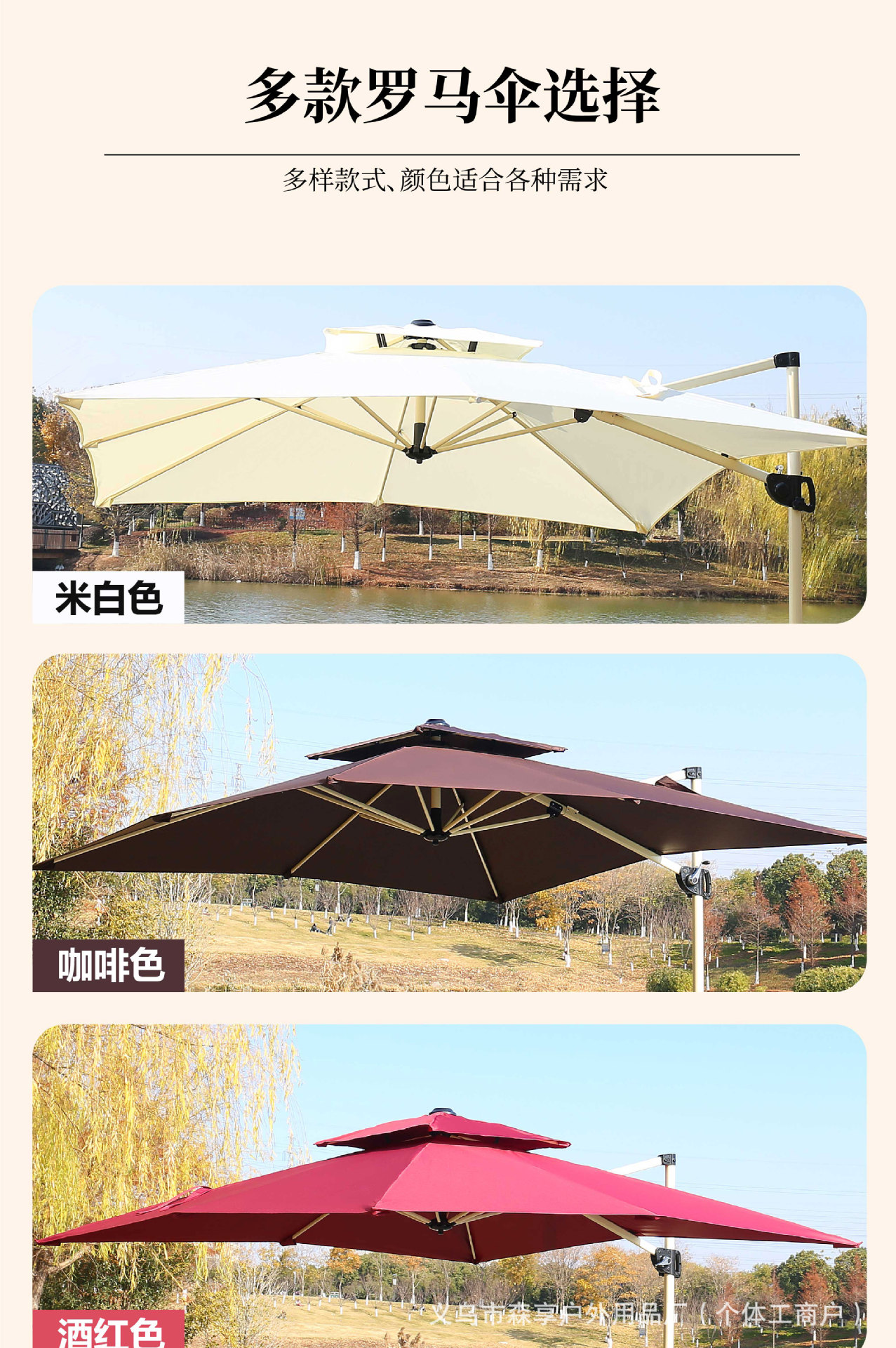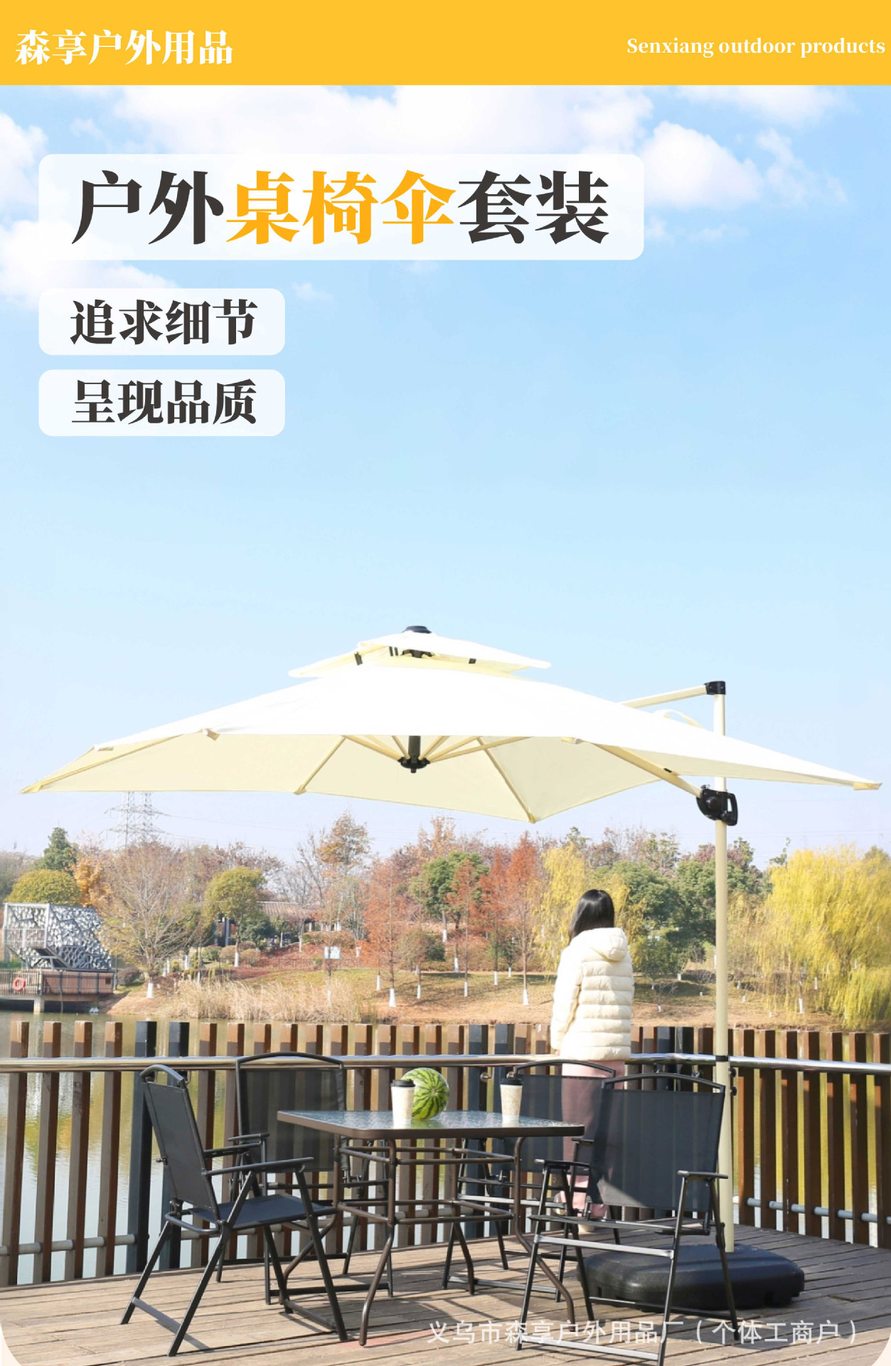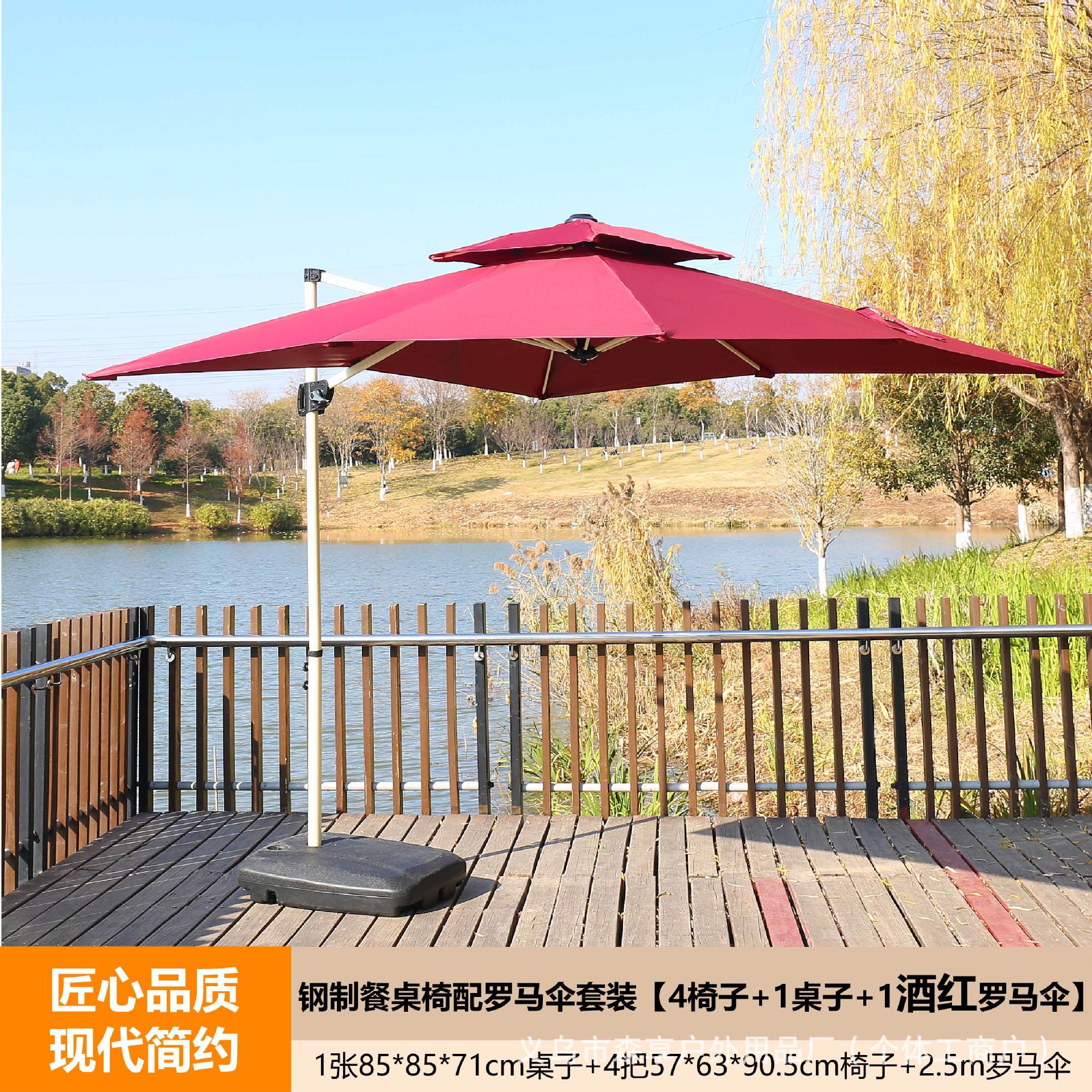 • 부르고뉴 로마 우산 + 스틸 식탁과 의자