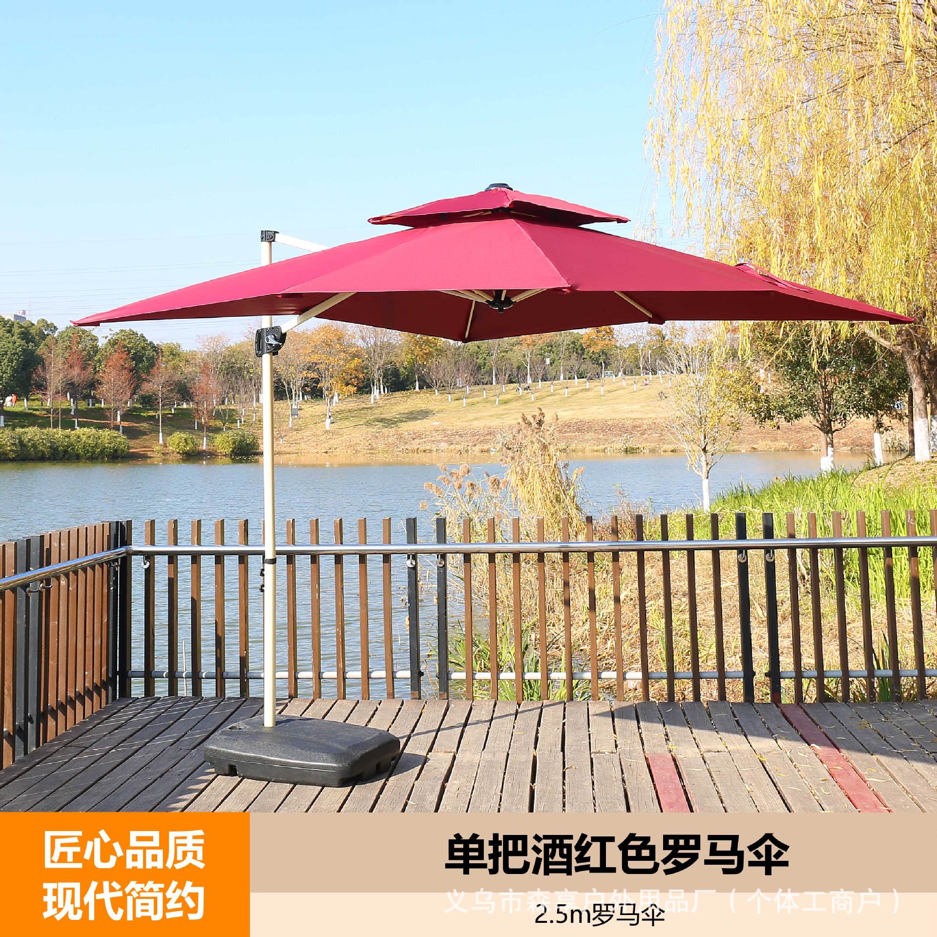 • 베이스가 있는 단일 버건디 로마 우산