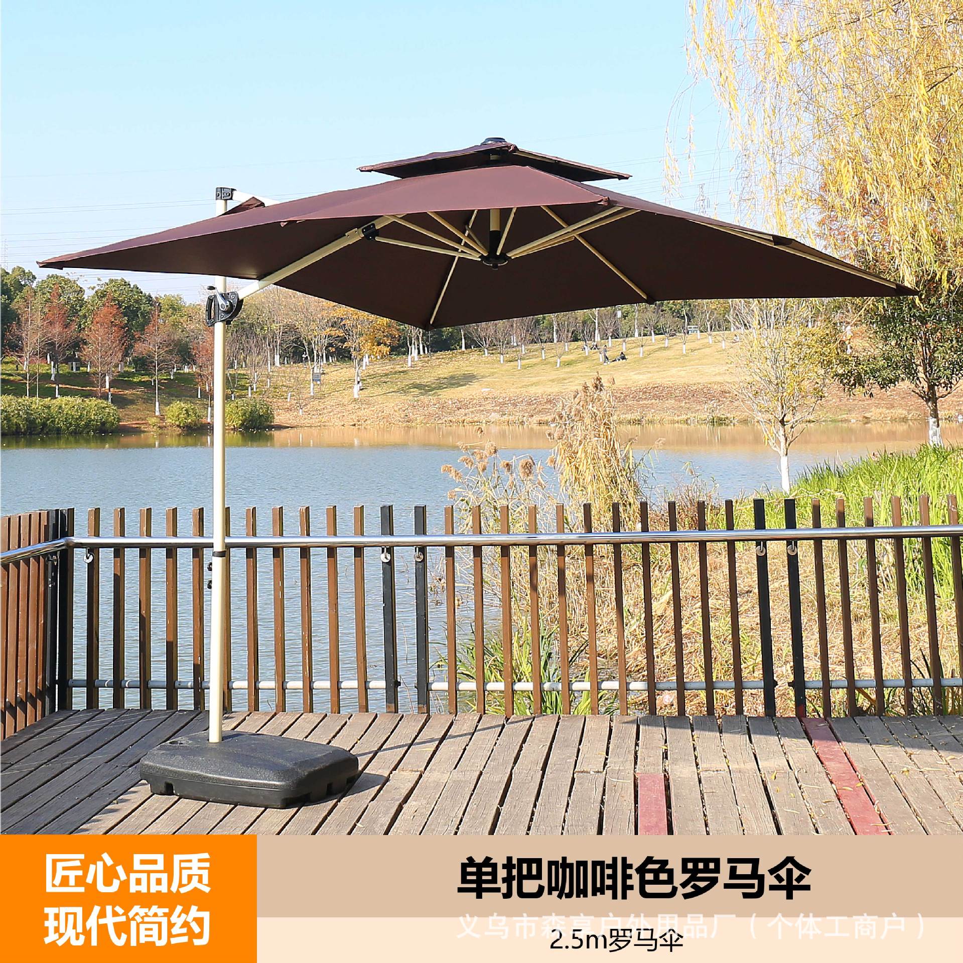 • 베이스가 있는 단일 갈색 로마 우산