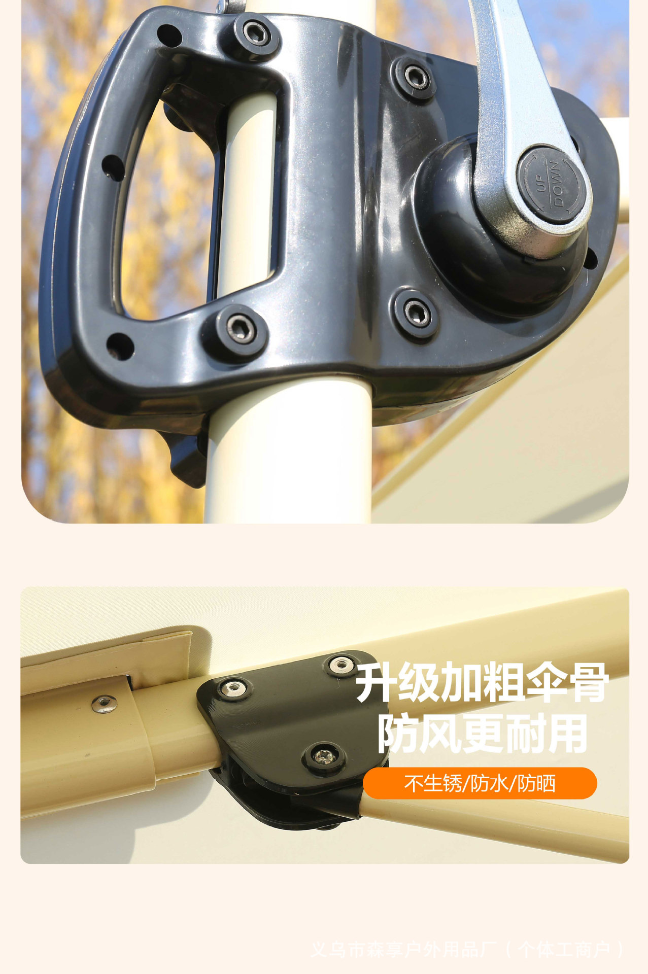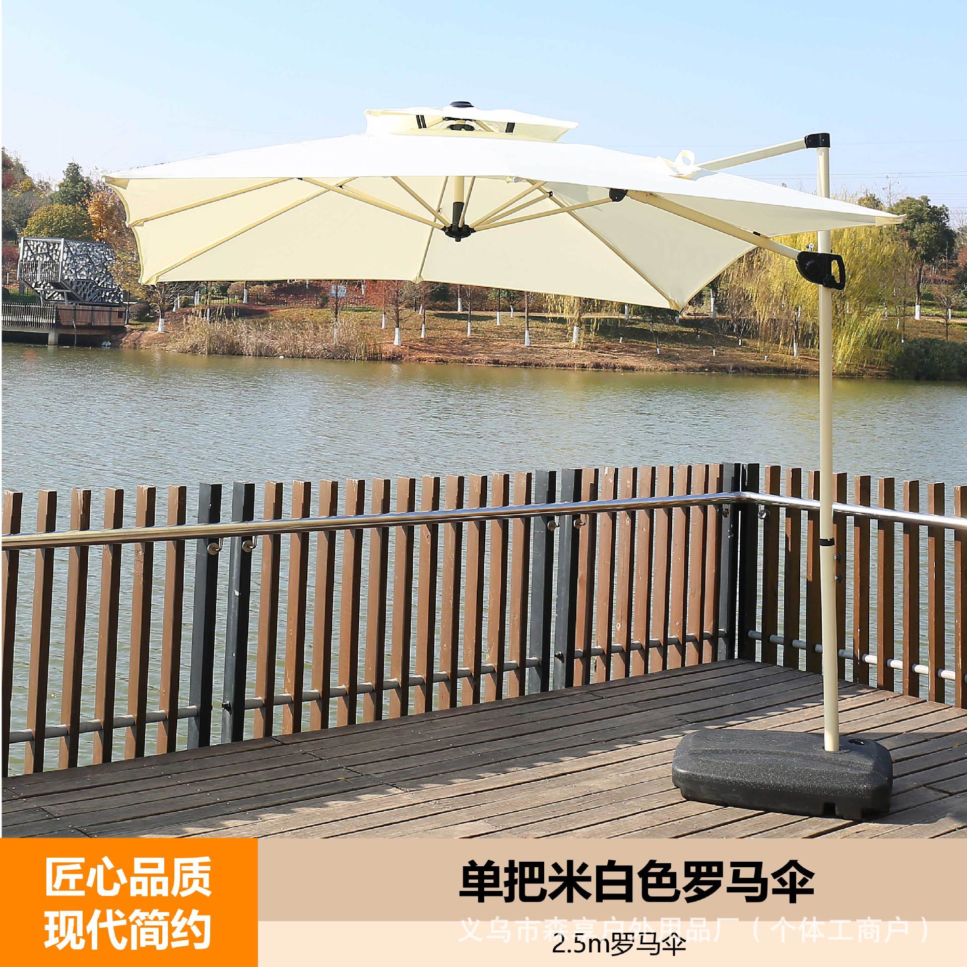 • 베이스가 있는 단일 황백색 로마 우산