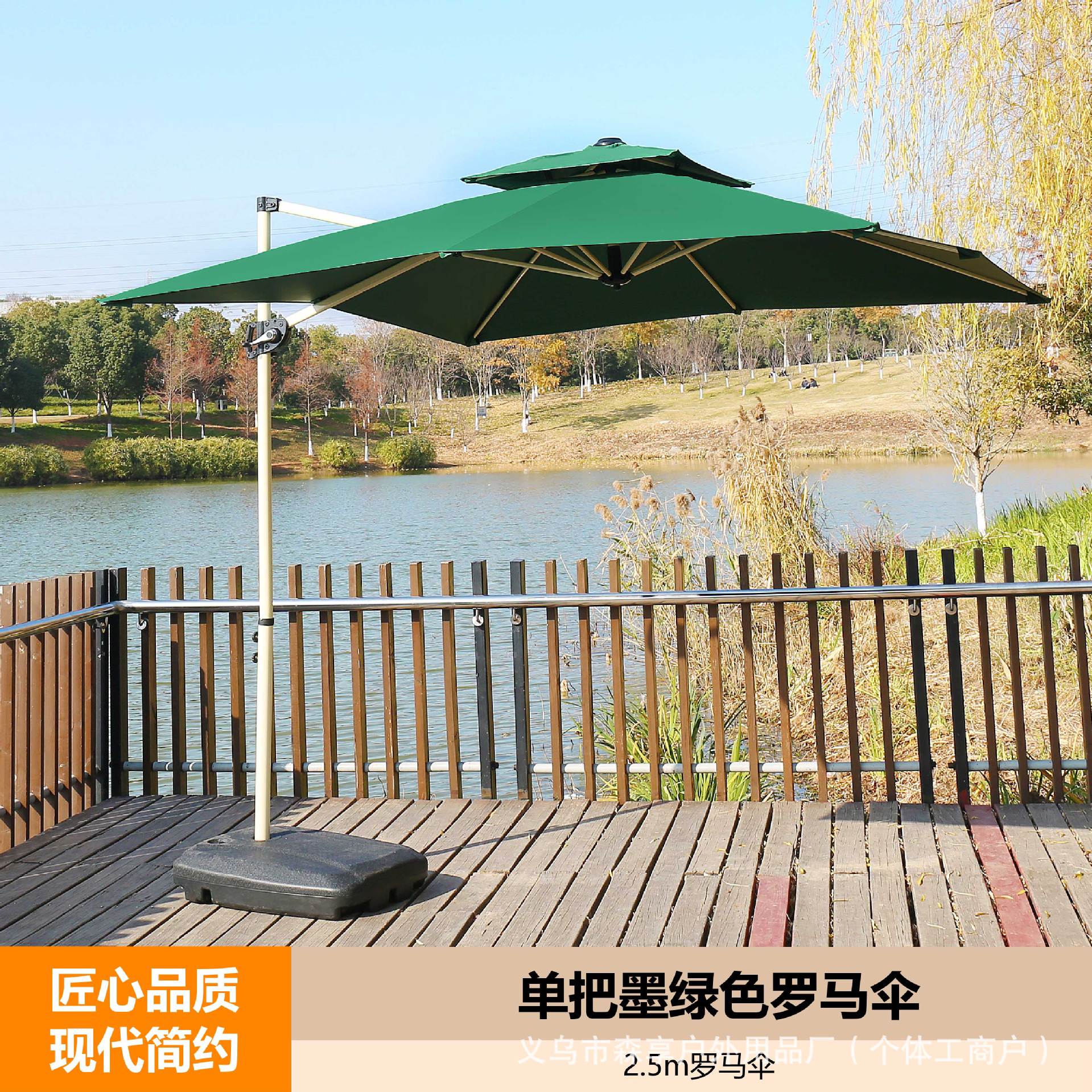 • 베이스가 있는 단일 짙은 녹색 로마 우산