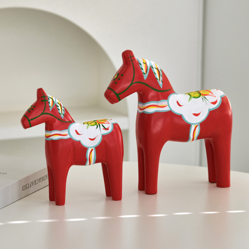 유럽 스타일의 가벼운 럭셔리 붉은 말 장식품 웨딩 선물 항목 북유럽 손으로 그린 달라 트로이 목마 루킹 창조적 인 홈 장식