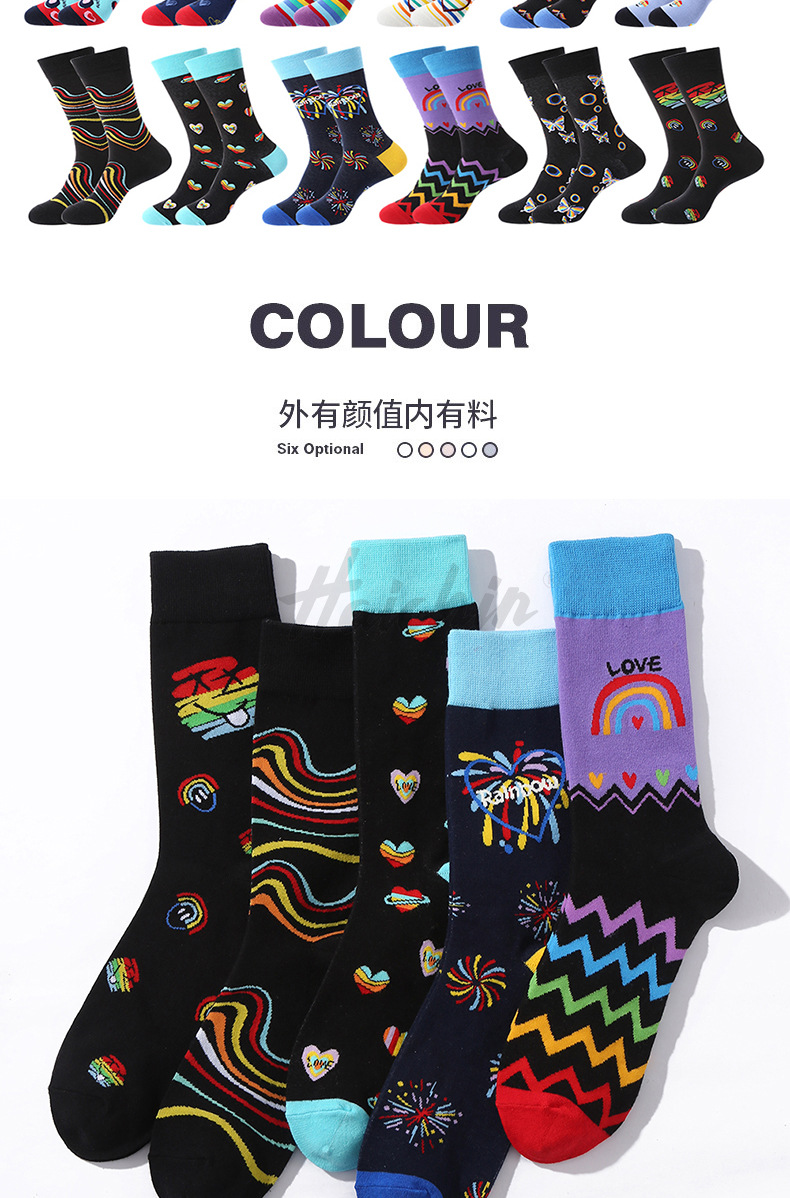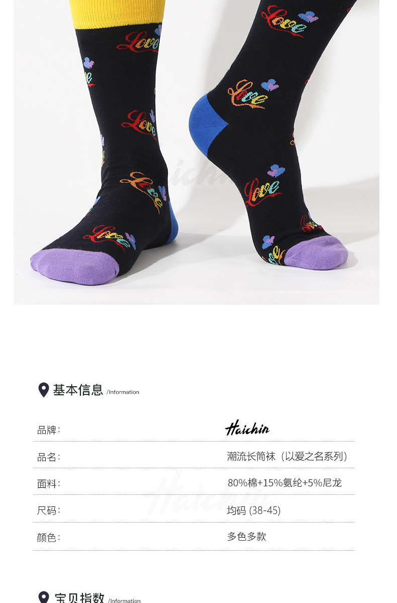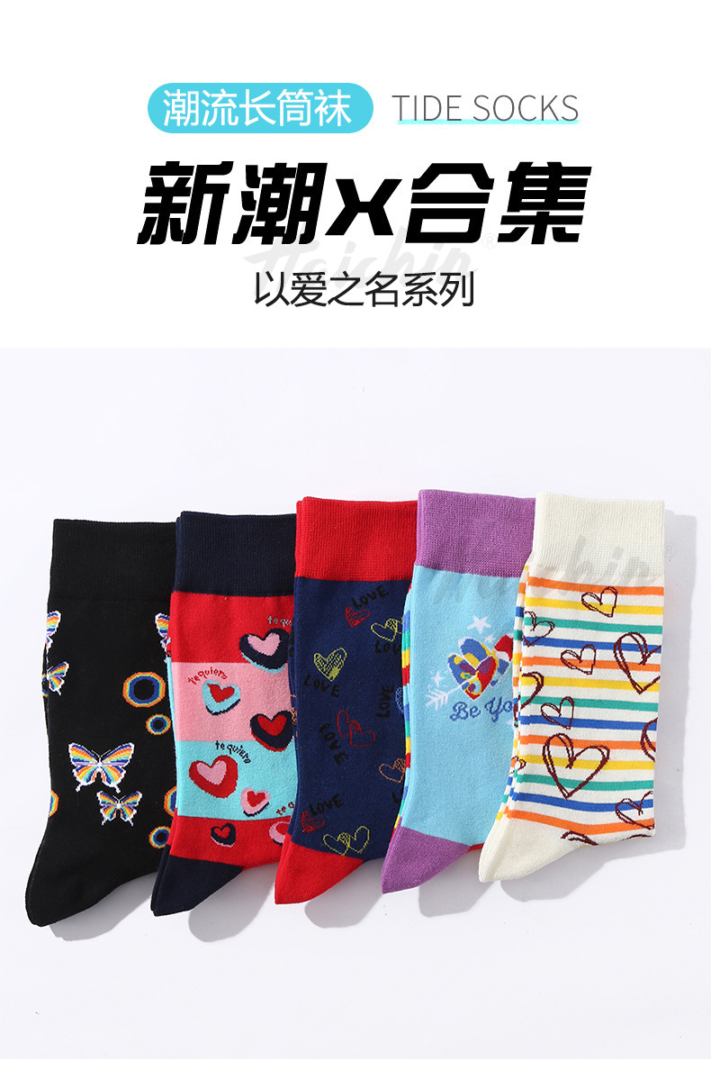 튜브 패션 양말에 사랑의 이름으로 Haichin 발렌타인 데이 여성 유럽과 미국의 패션 스트리트 스타킹 아마존 면화 양말