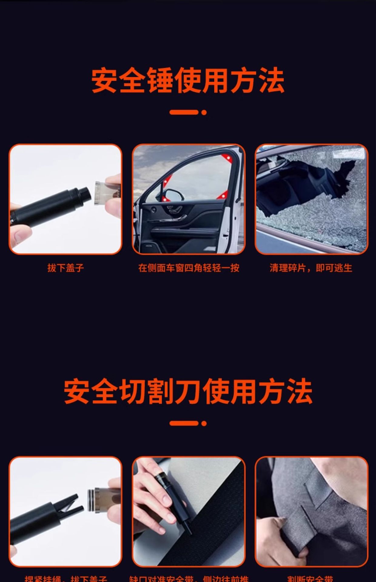 • 업그레이드된 시각적 모델*2 [미끄럼 방지 본체丨1초 깨진 창] 한 손 조작丨초 만에 안전 벨트 절단