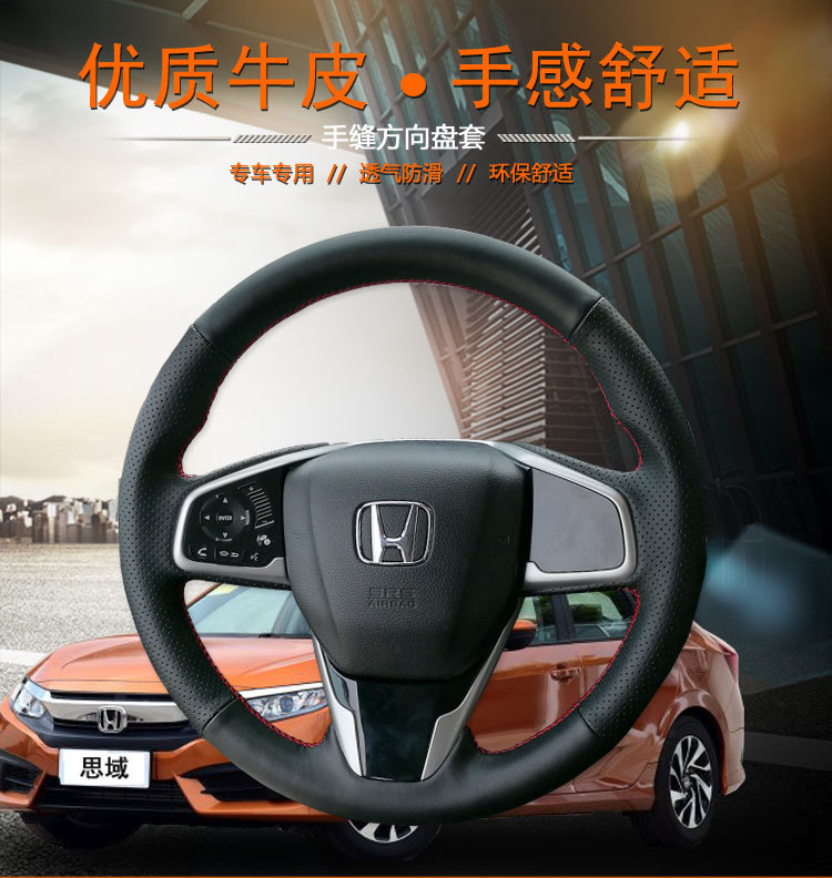 가죽 손으로 스티치 스티어링 휠 커버 오래된 CRV 특수 가죽 핸드 스티치 핸들 커버 자동차 스티어링 휠 커버스토어 가기