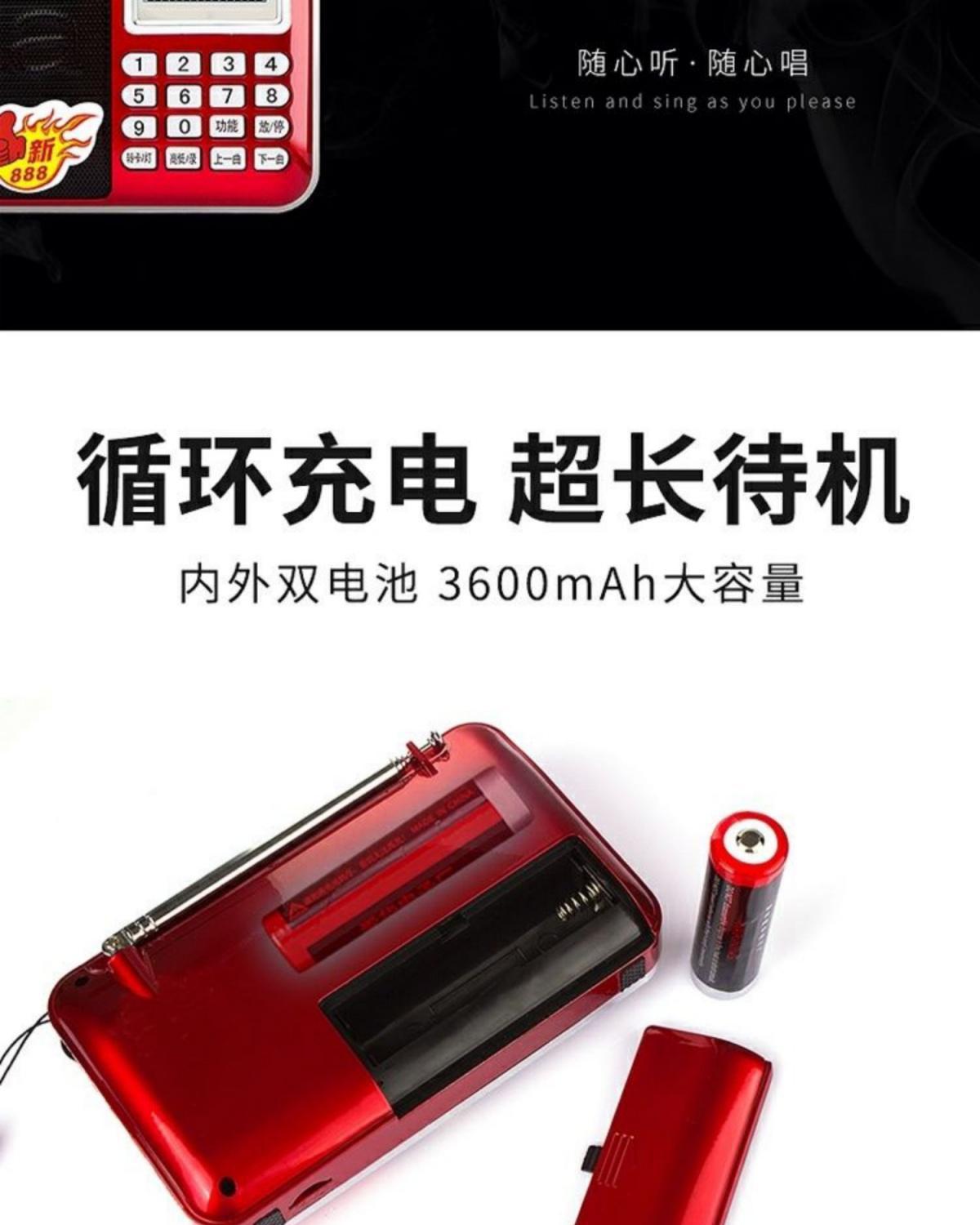 Aihua 888 휴대용 스테레오 라디오 블루투스 스피커 가사 디스플레이 대형 화면 다기능 카드 플레이어