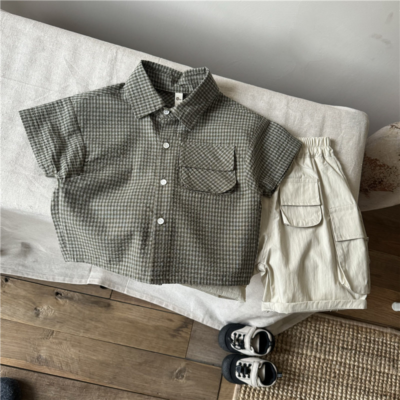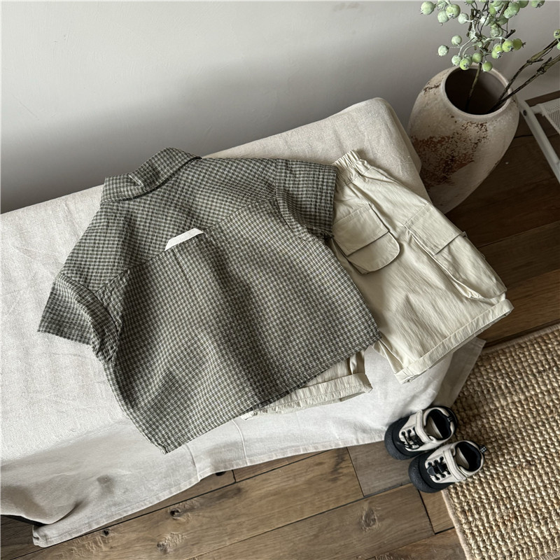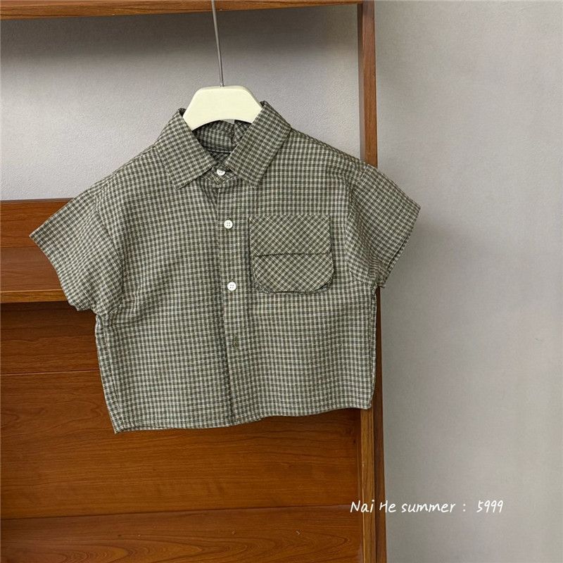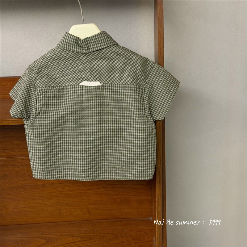 26가지 새로운 여름 스타일 아동용 한국 스타일 체크무늬 반팔 셔츠, 남아 여아용 캐주얼 베이비 셔츠 상의, 트렌디한 상의스토어 가기