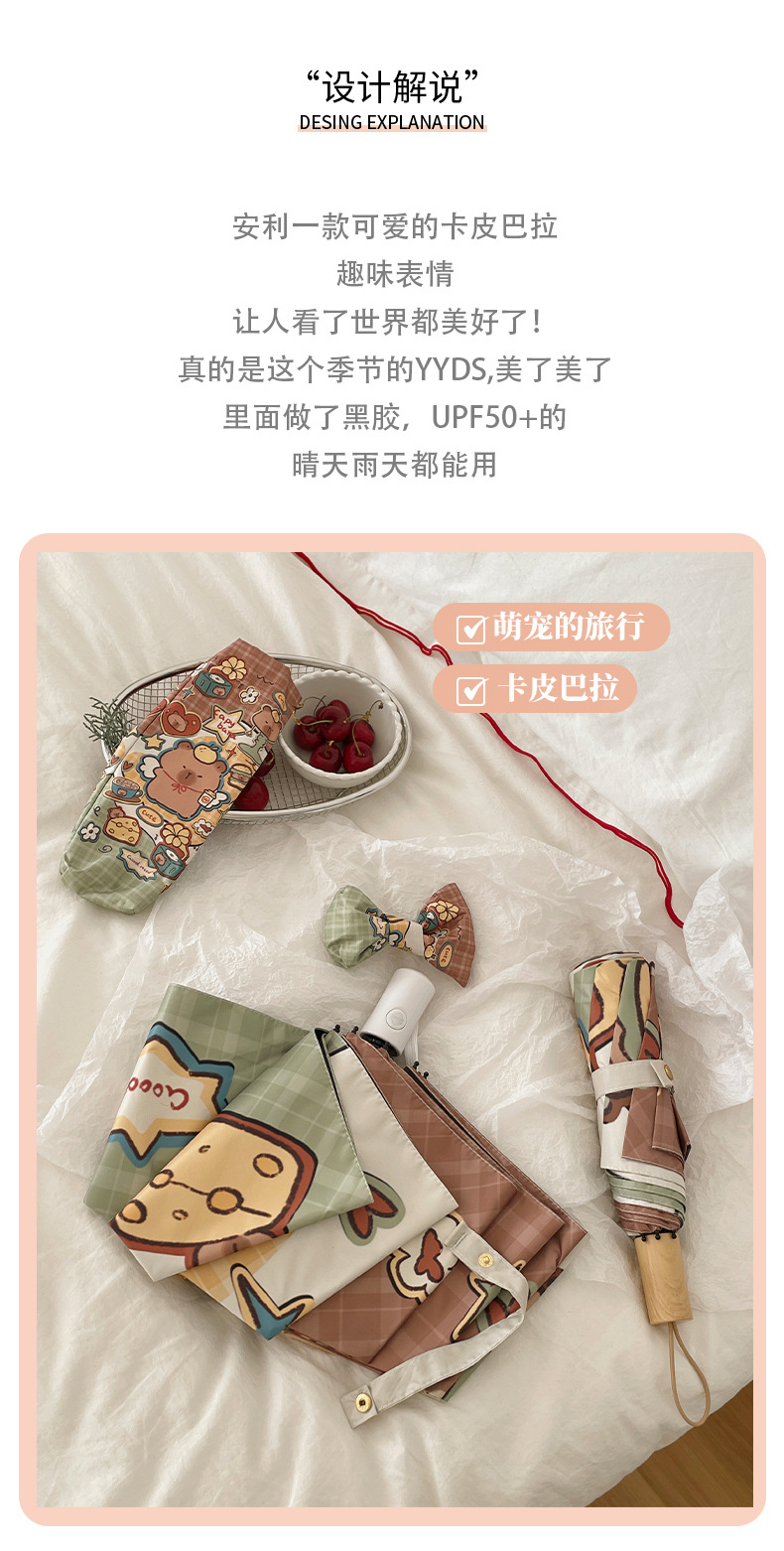 귀여운 자동 우산 여성의 햇빛과 비 이중 사용 선 스크린 우산 UV 보호 검은 우산 접히는 햇빛 3 배