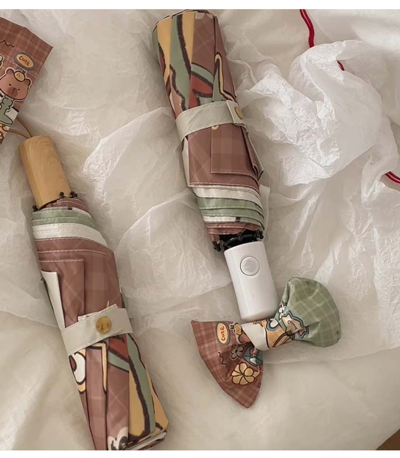 귀여운 자동 우산 여성의 햇빛과 비 이중 사용 선 스크린 우산 UV 보호 검은 우산 접히는 햇빛 3 배스토어 가기