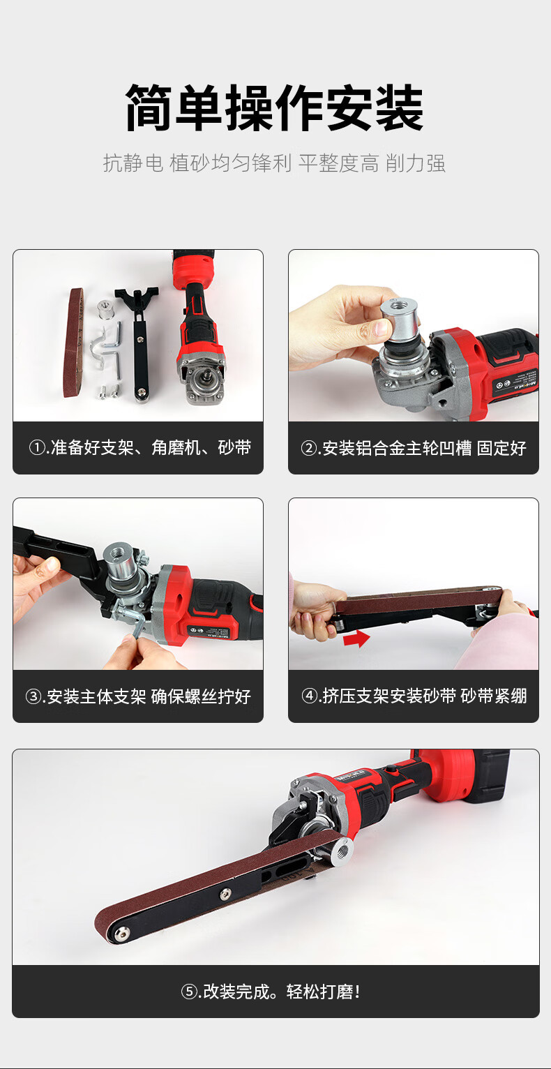 앵글 그라인더를 벨트 그라인더로 개조하는 100형 125형 범용 연마 및 광택기, 플록킹 사포