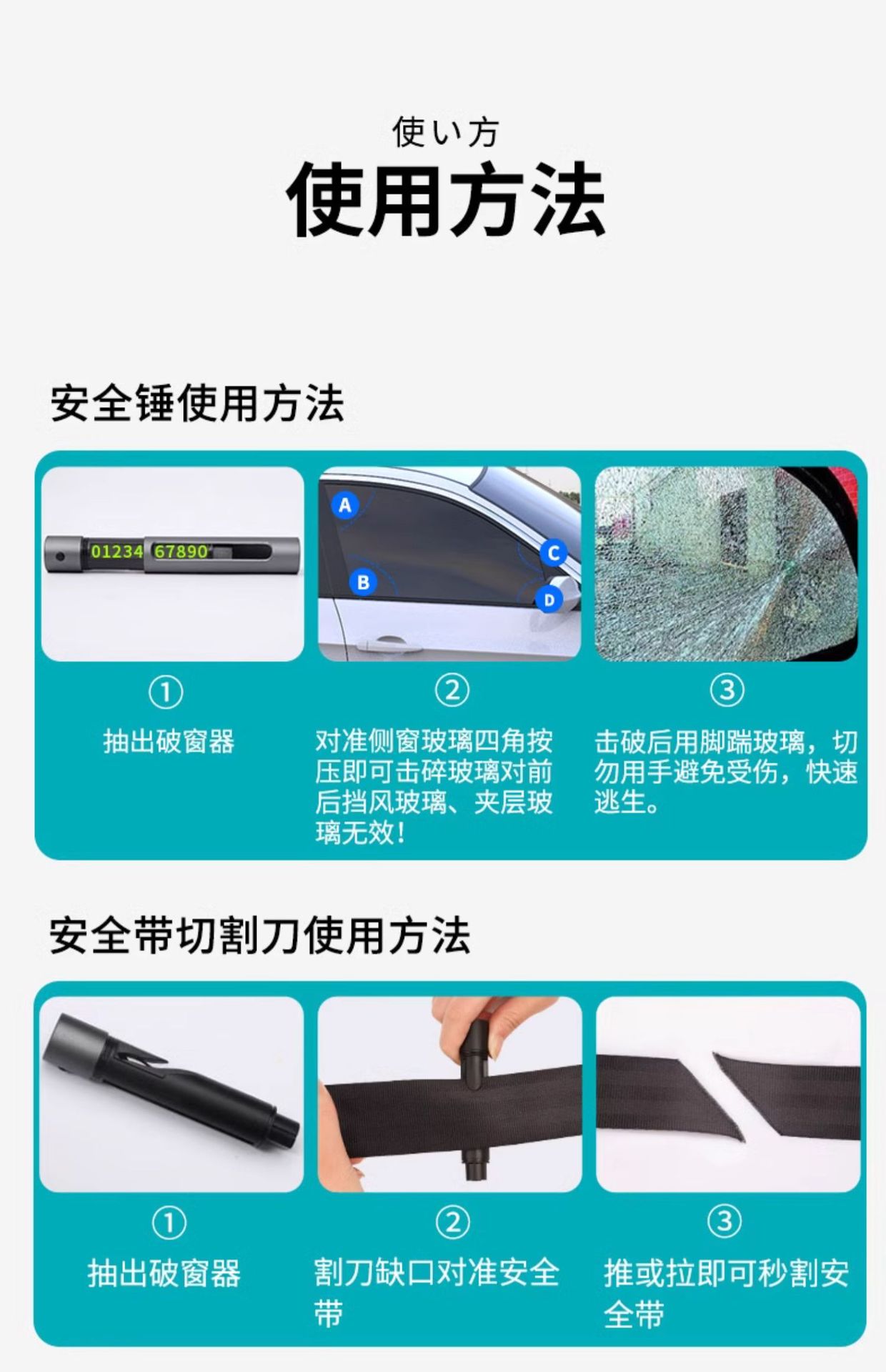 자동차 안전 망치 창 차단기 생존 차량 생명을 구하는 비상 탈출 창 폭파 미니 안전 벨트 절단 칼