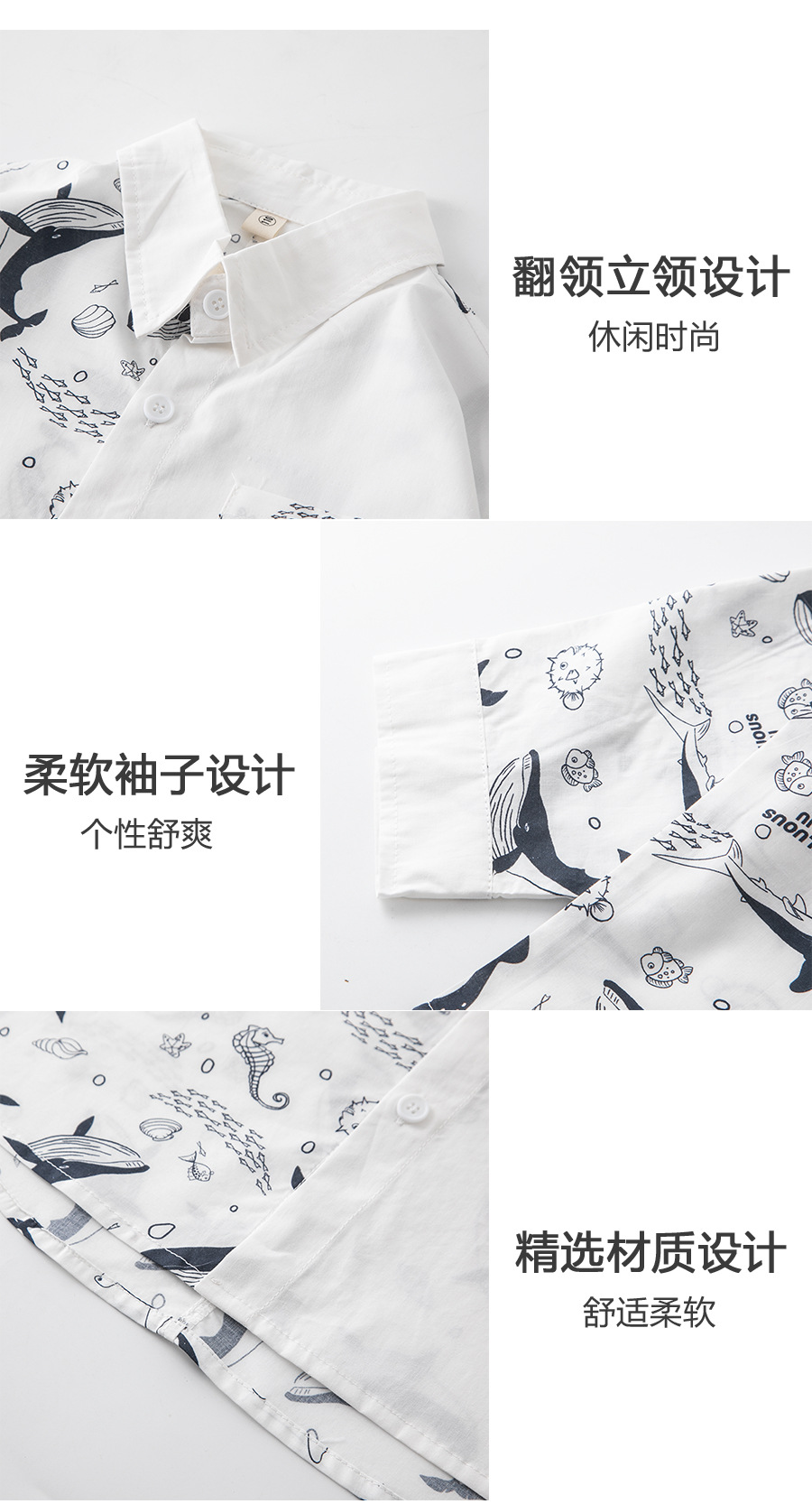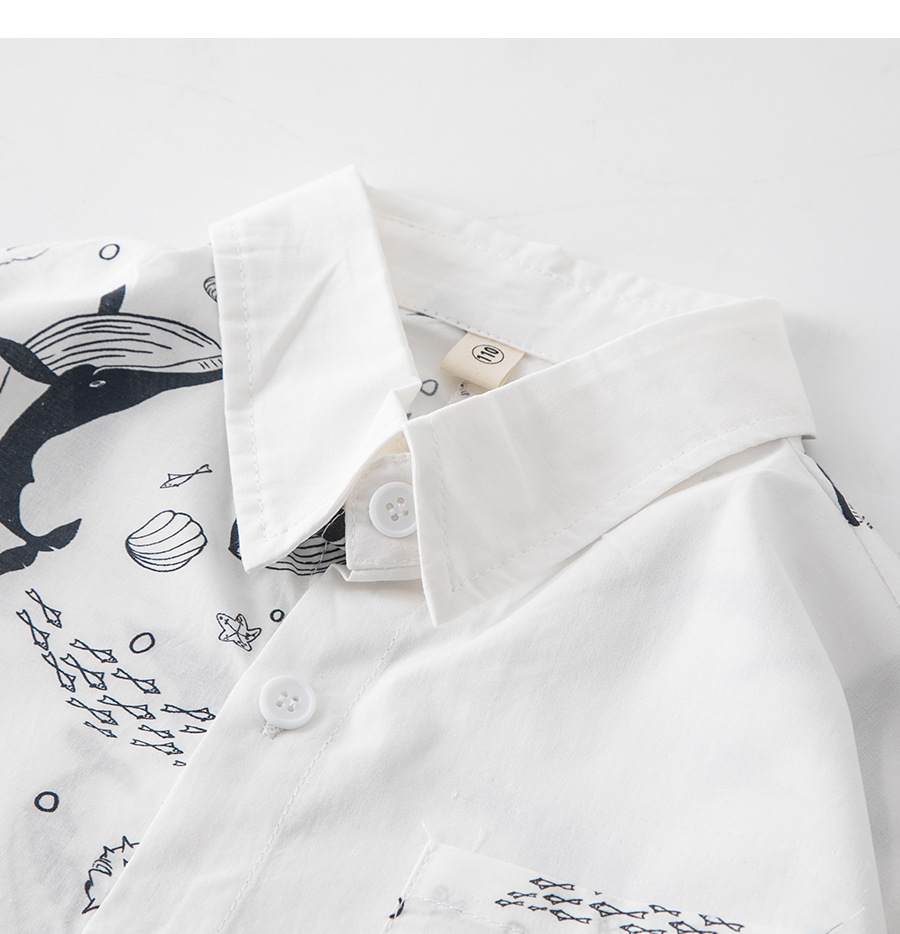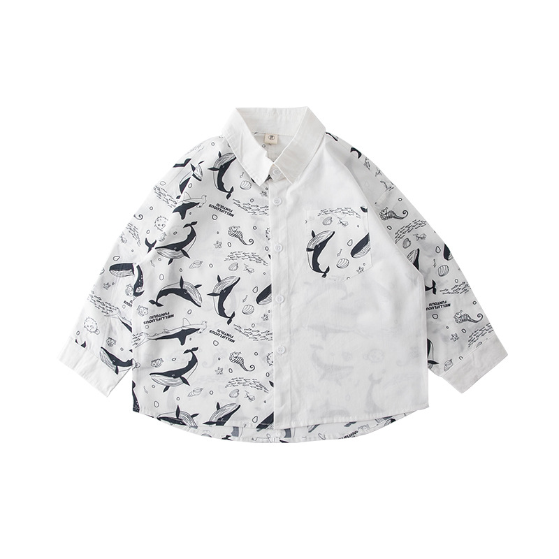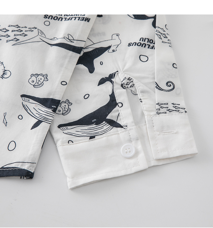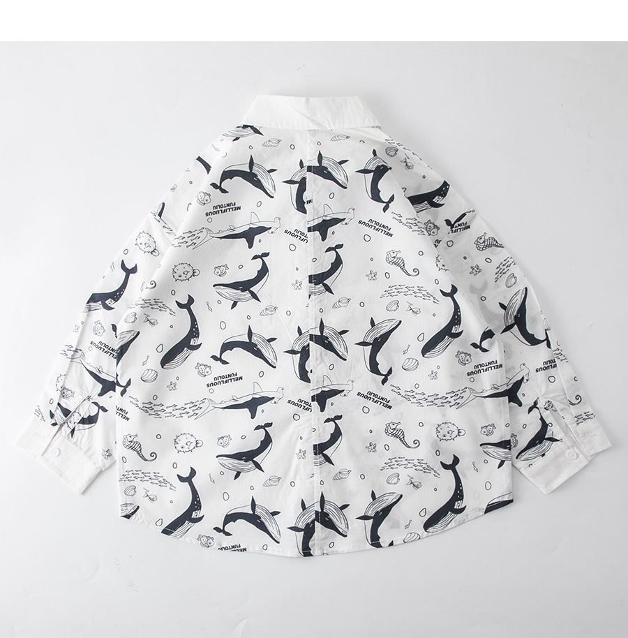 한국 스타일 소년 면 셔츠 봄과 가을 2025 새로운 어린이 잘 생긴 인쇄 캐주얼 셔츠 서양식 아기 탑스토어 가기