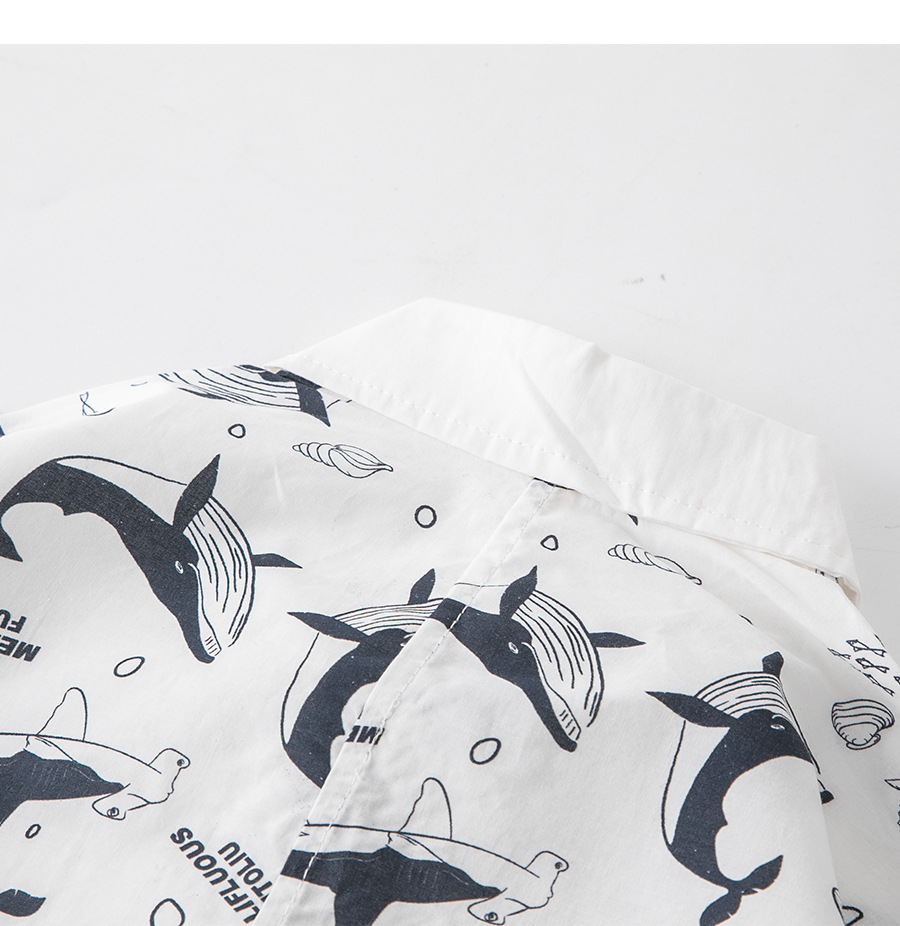 한국 스타일 소년 면 셔츠 봄과 가을 2025 새로운 어린이 잘 생긴 인쇄 캐주얼 셔츠 서양식 아기 탑