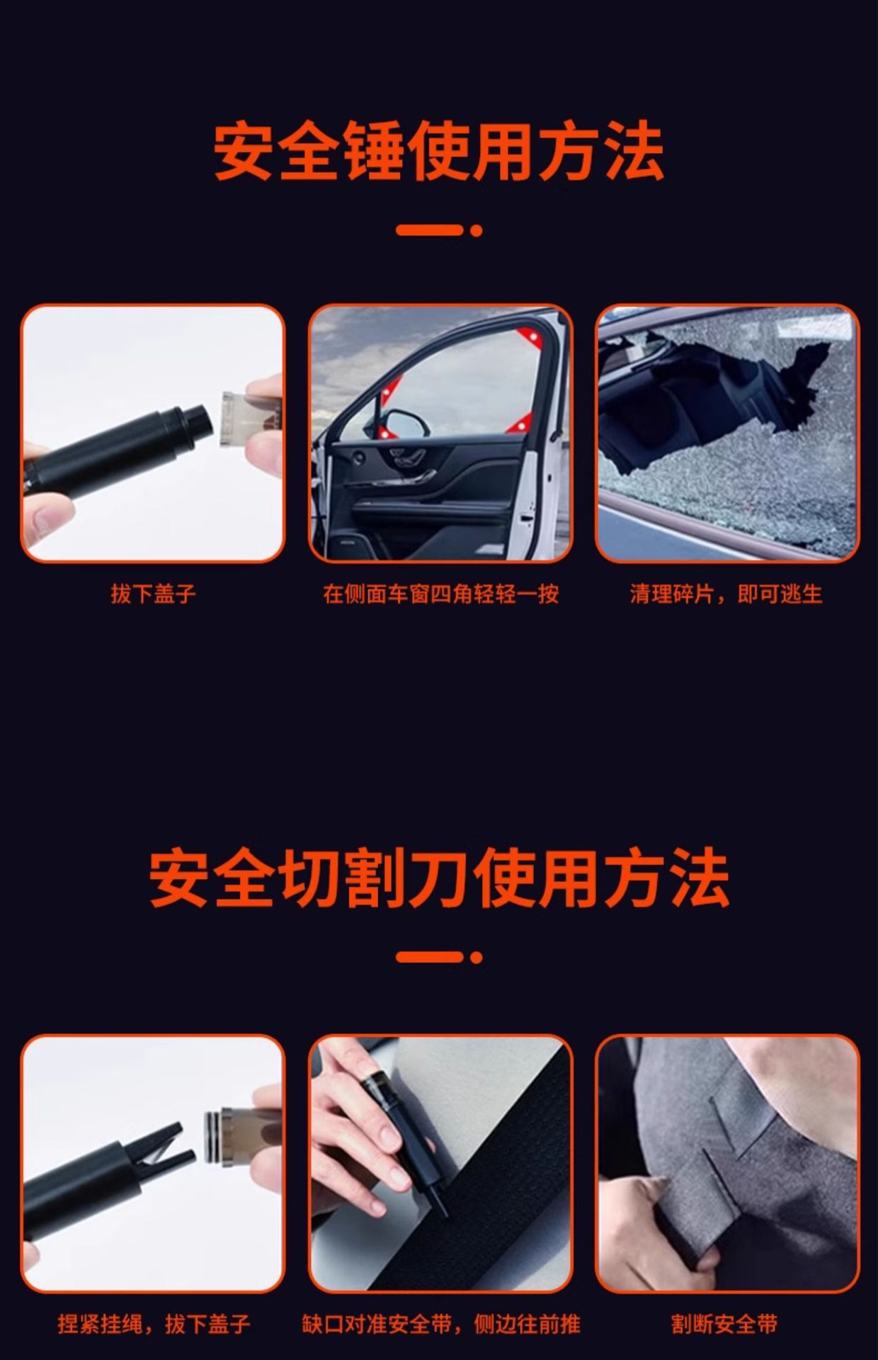 • 업그레이드된 시각적 모델*2 [미끄럼 방지 본체丨1초 깨진 창] 한 손 조작丨초 만에 안전 벨트 절단