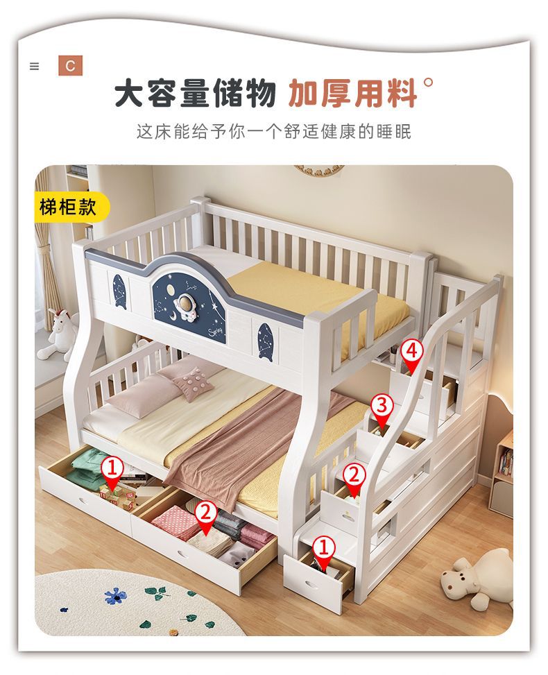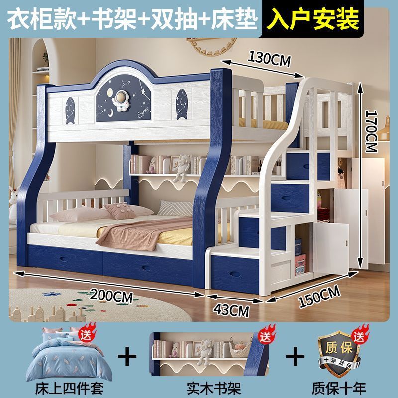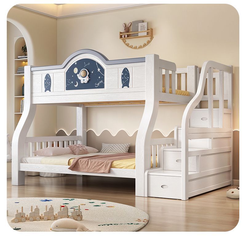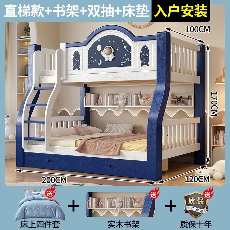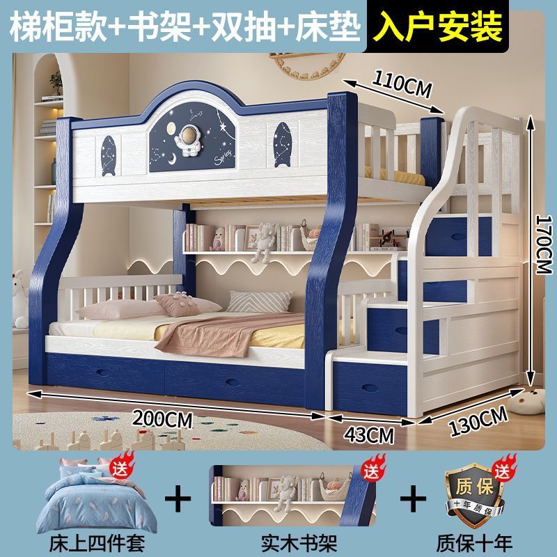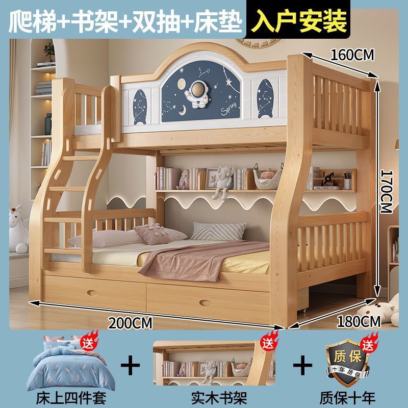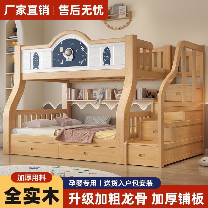솔리드 우드 어린이 이층 침대 이층 침대 2 층 높고 낮은 침대 작은 아파트 두꺼운 더블 침대