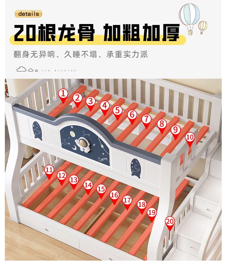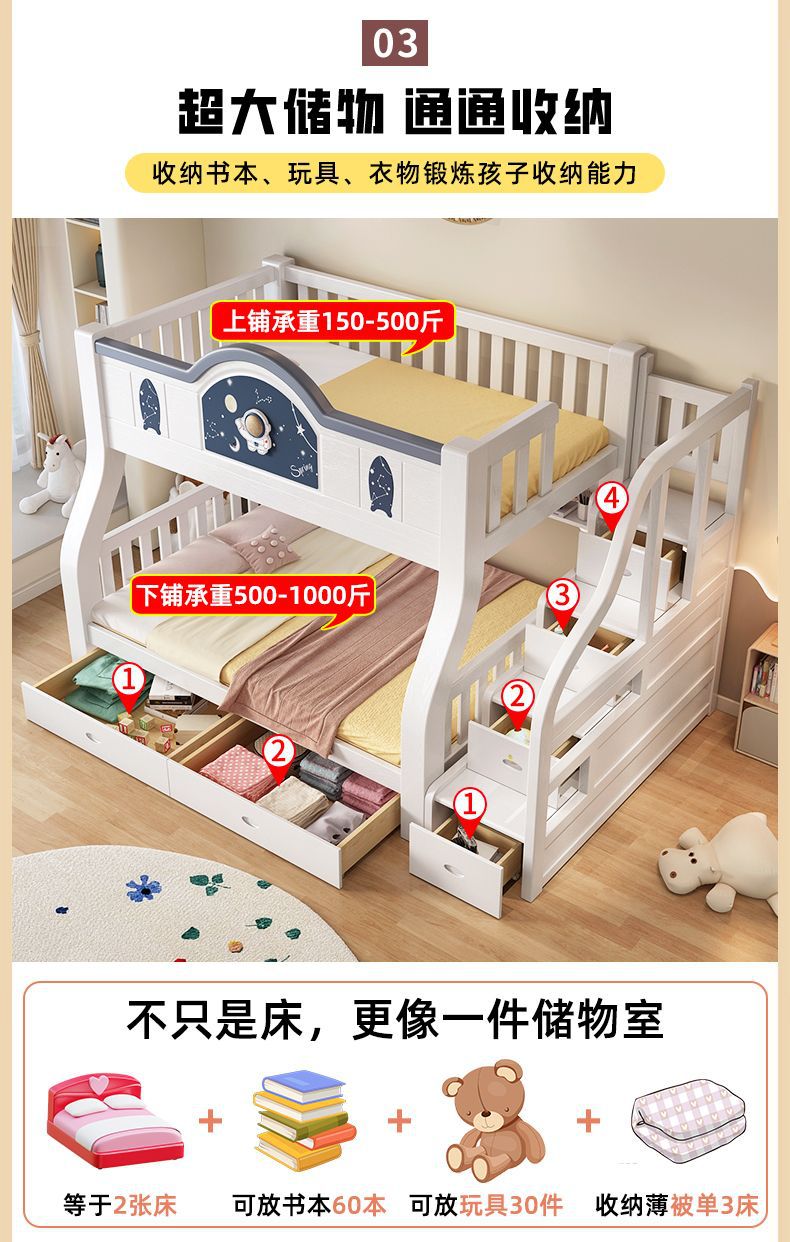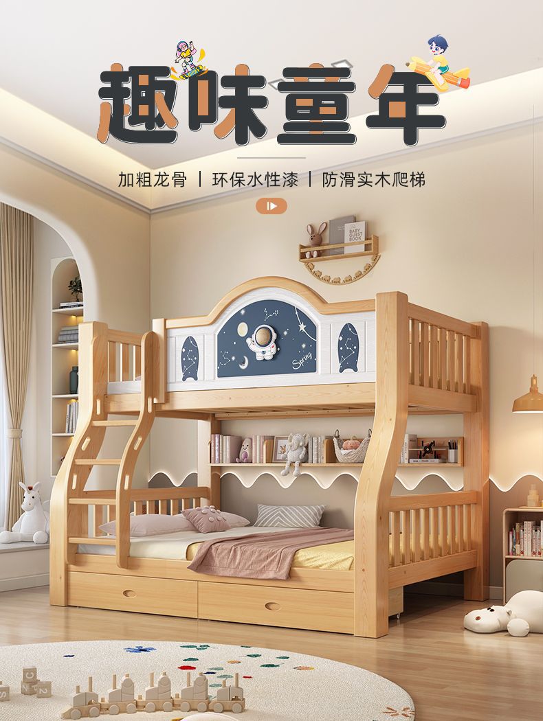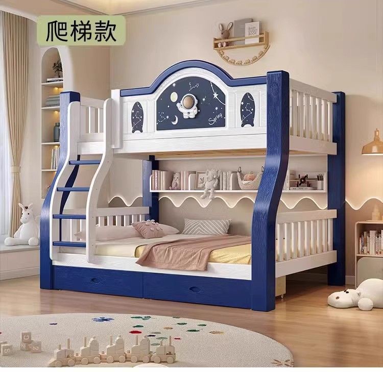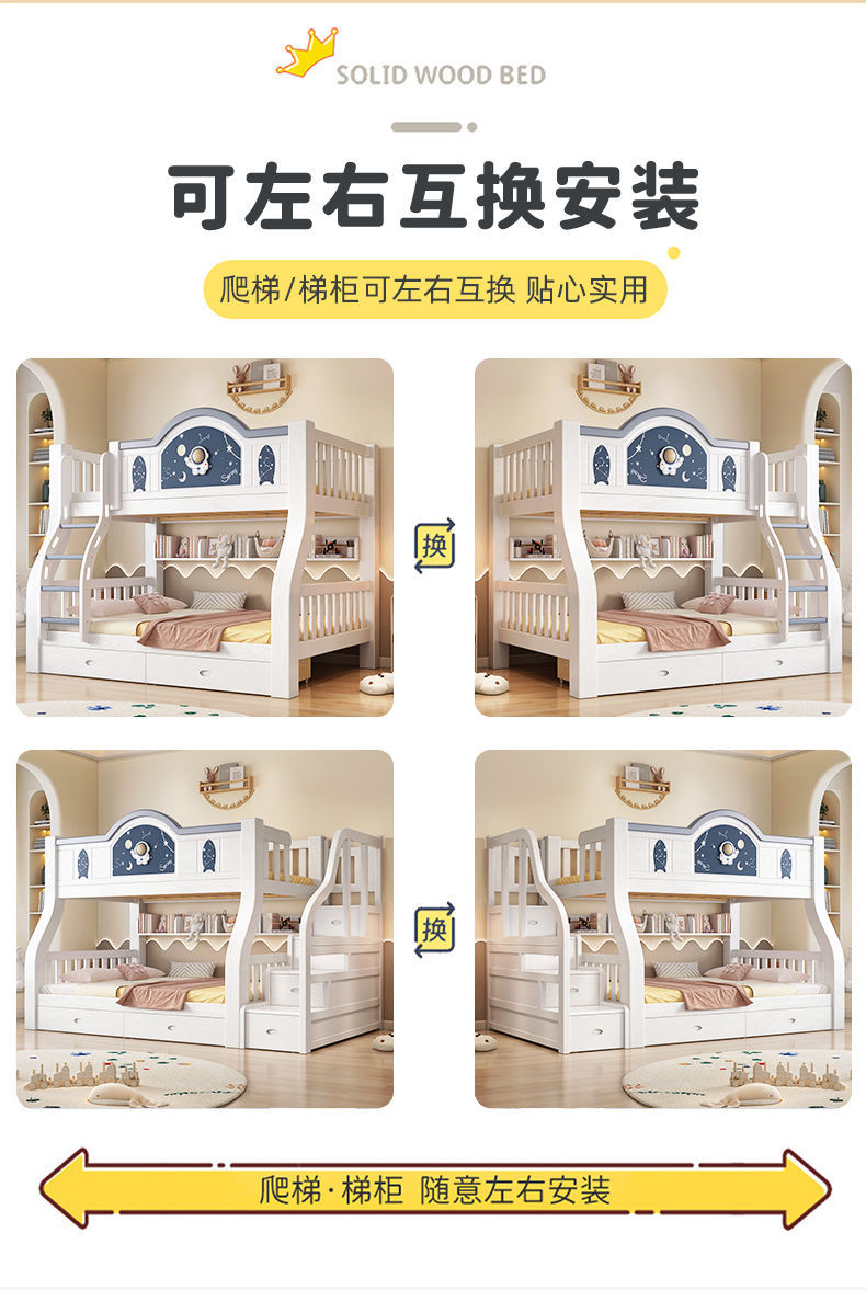 솔리드 우드 어린이 이층 침대 이층 침대 2 층 높고 낮은 침대 작은 아파트 두꺼운 더블 침대