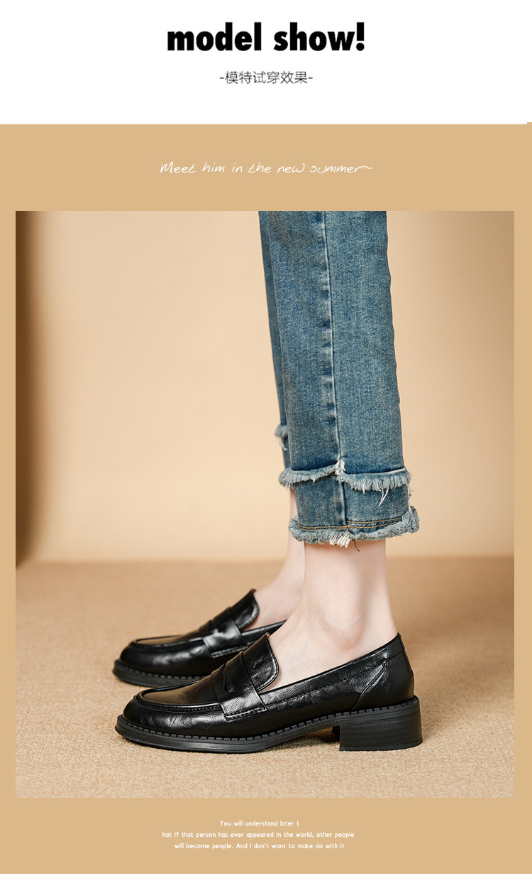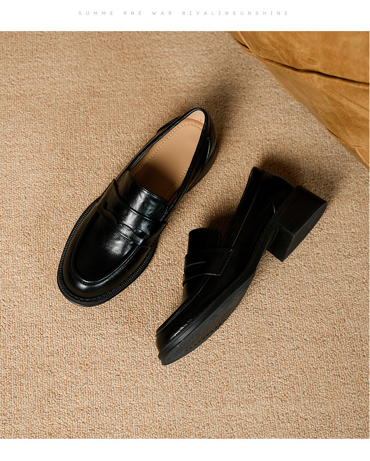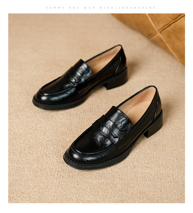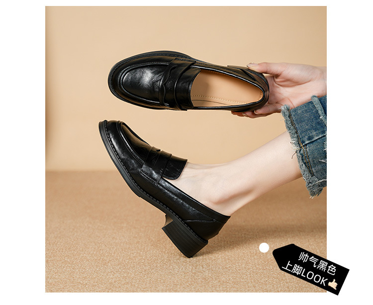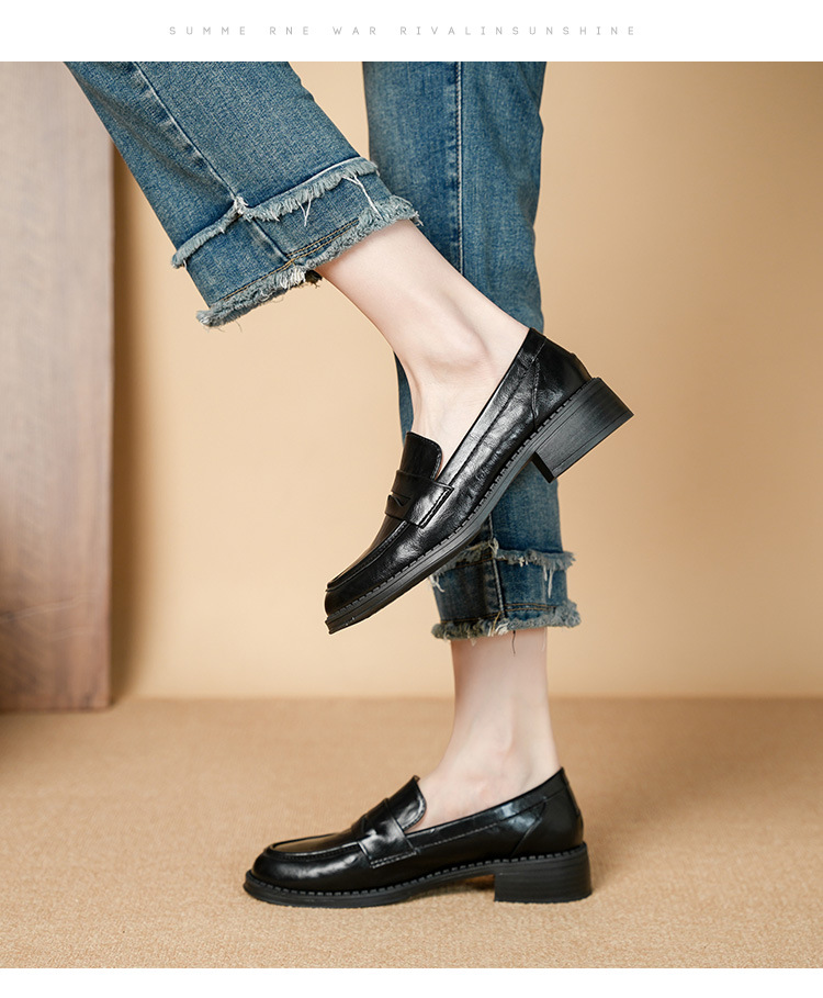 2911-2 블랙 레트로 로퍼 여성 라운드 발가락 딥 입 유럽과 한국 레트로 두꺼운 작은 가죽 신발 소프트 싱글 레이어 신발스토어 가기
