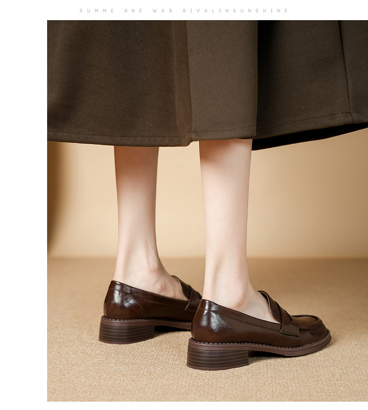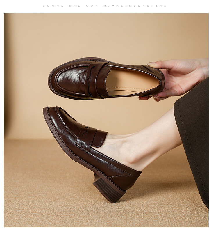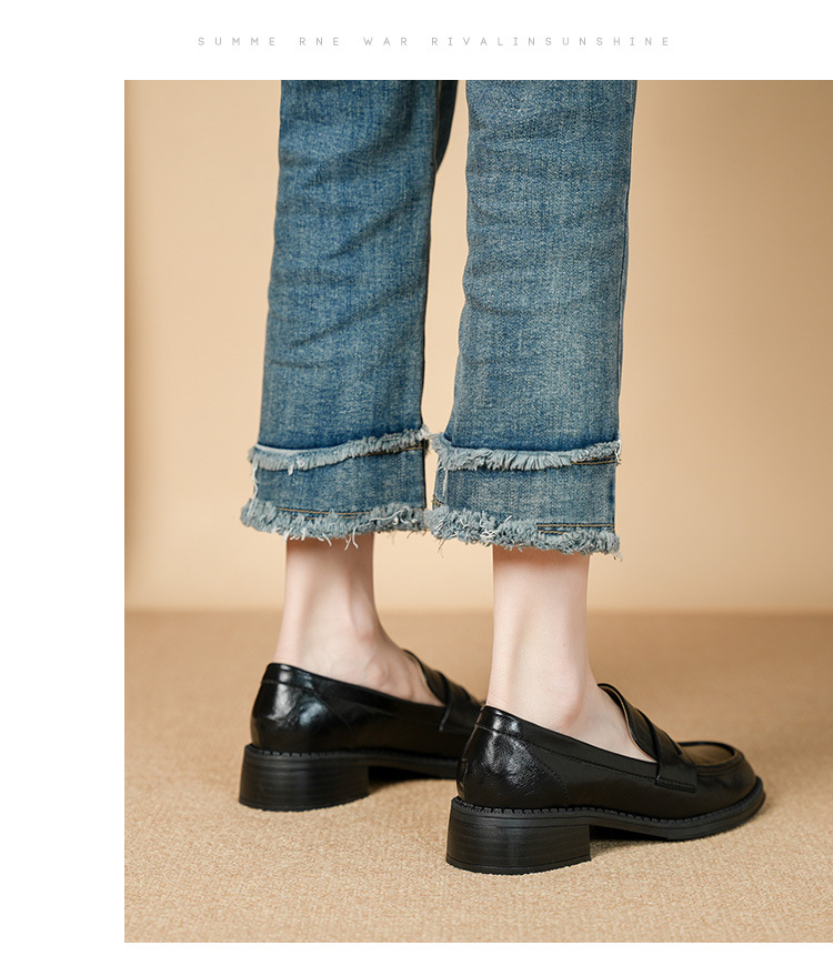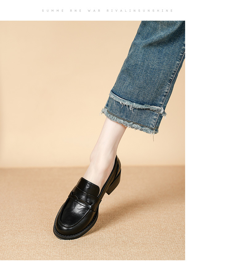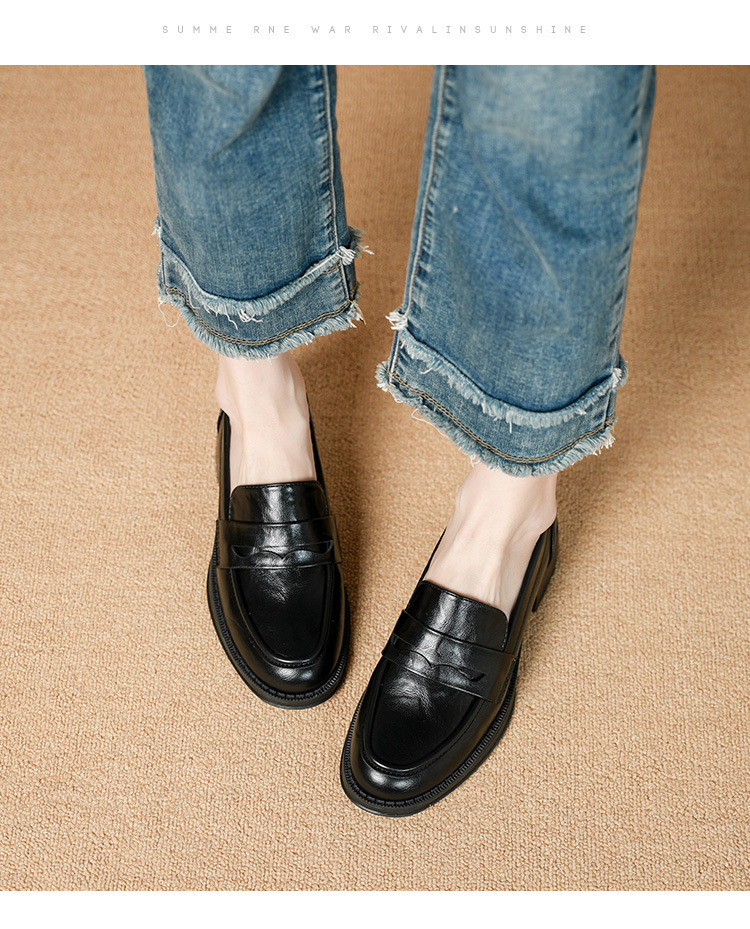 2911-2 블랙 레트로 로퍼 여성 라운드 발가락 딥 입 유럽과 한국 레트로 두꺼운 작은 가죽 신발 소프트 싱글 레이어 신발스토어 가기