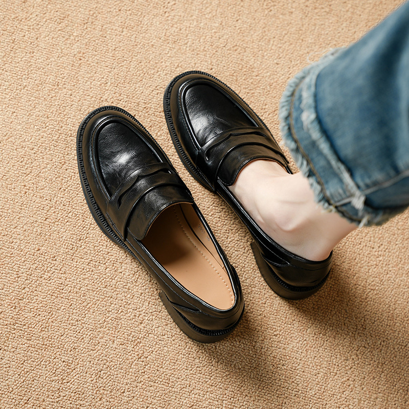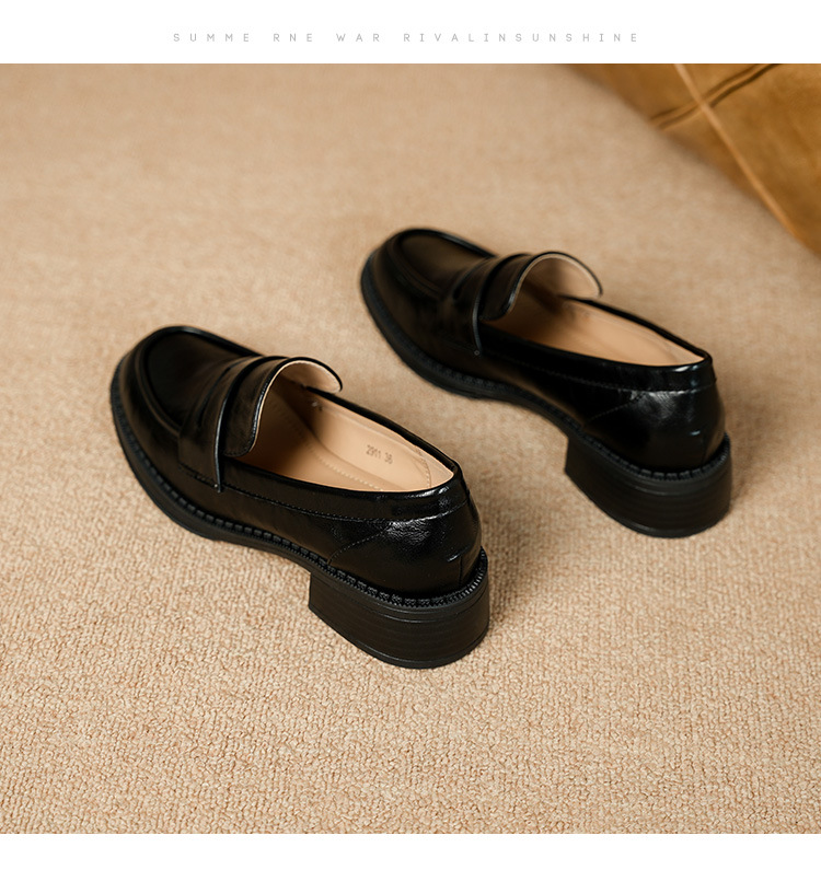 2911-2 블랙 레트로 로퍼 여성 라운드 발가락 딥 입 유럽과 한국 레트로 두꺼운 작은 가죽 신발 소프트 싱글 레이어 신발