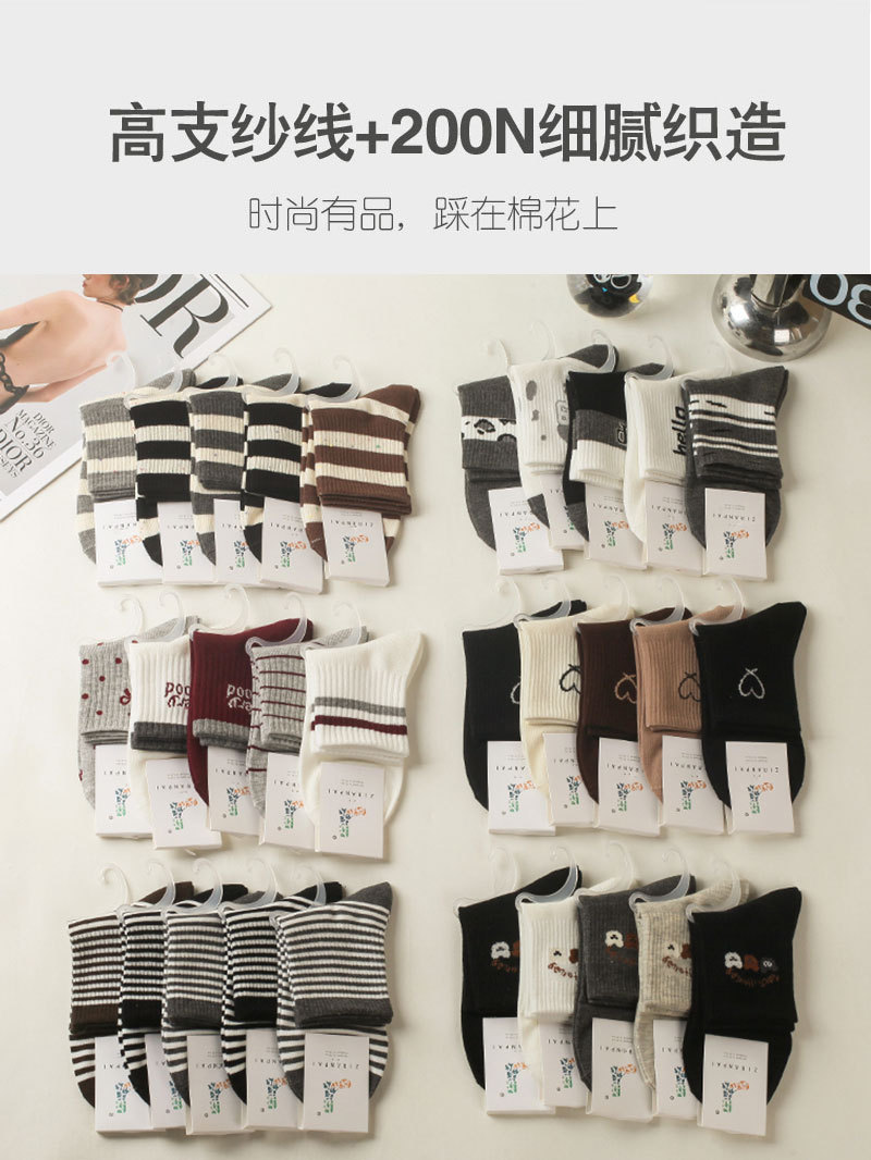 양말 여성용 종아리 중간 양말 가을 겨울 트렌드 봄 가을 일본 인터넷 연예인 스타일 스포츠 면 양말 한국식 대학 스타일 스타킹스토어 가기