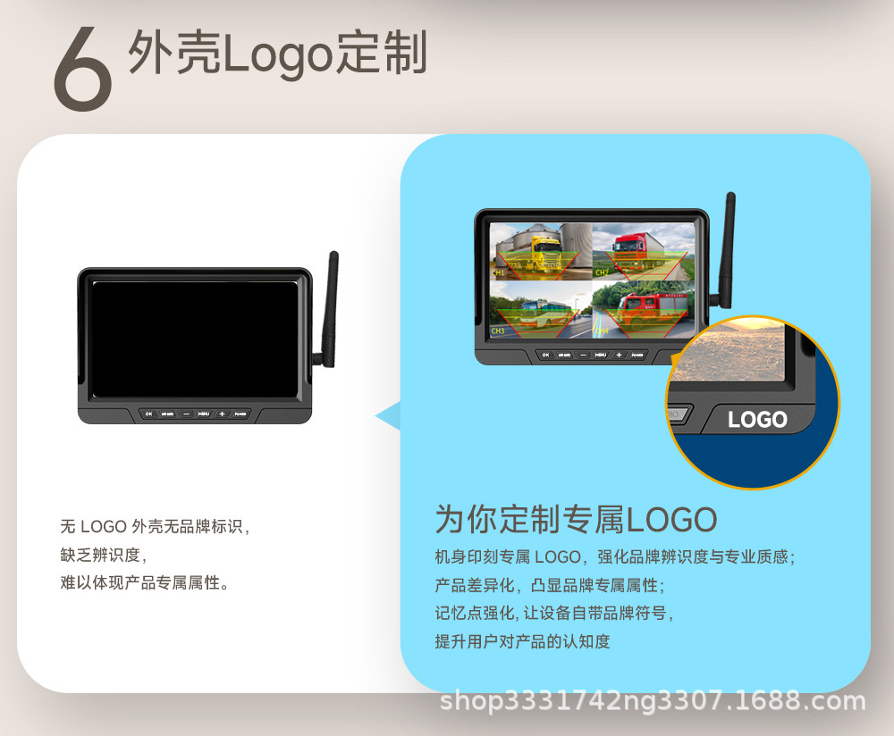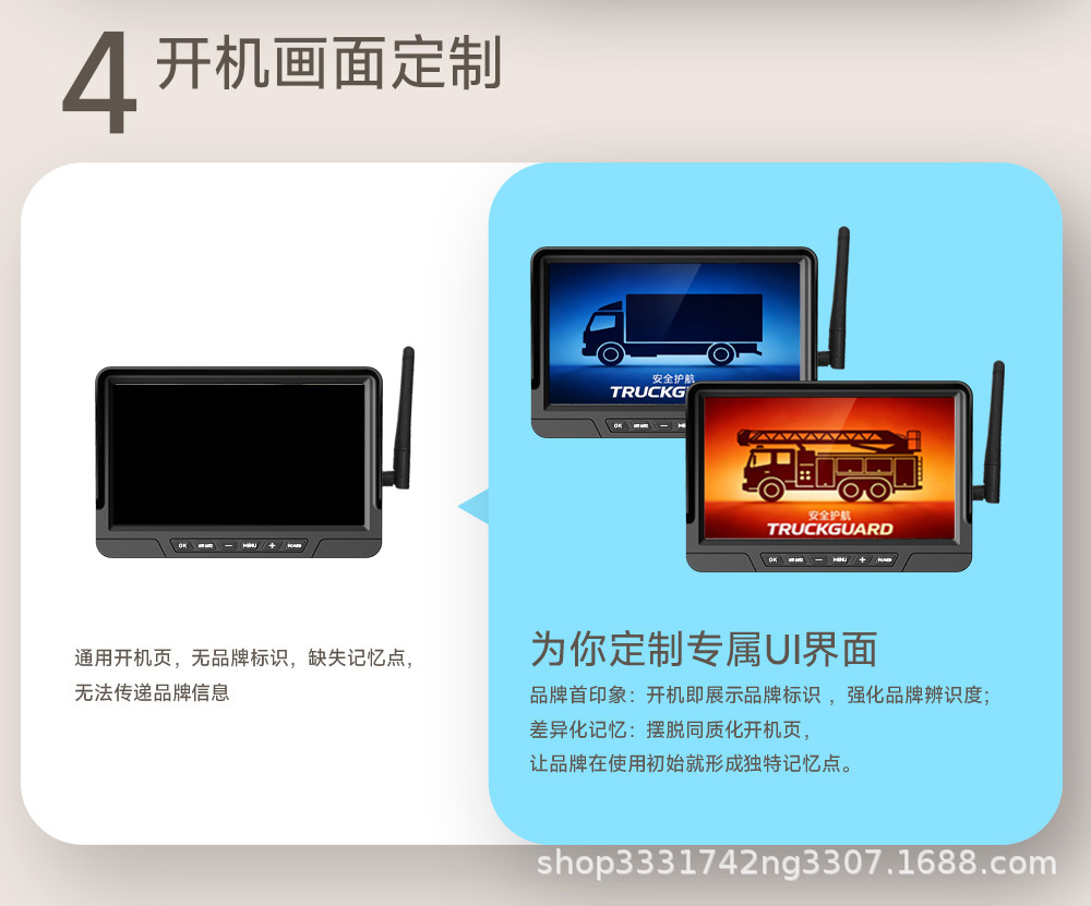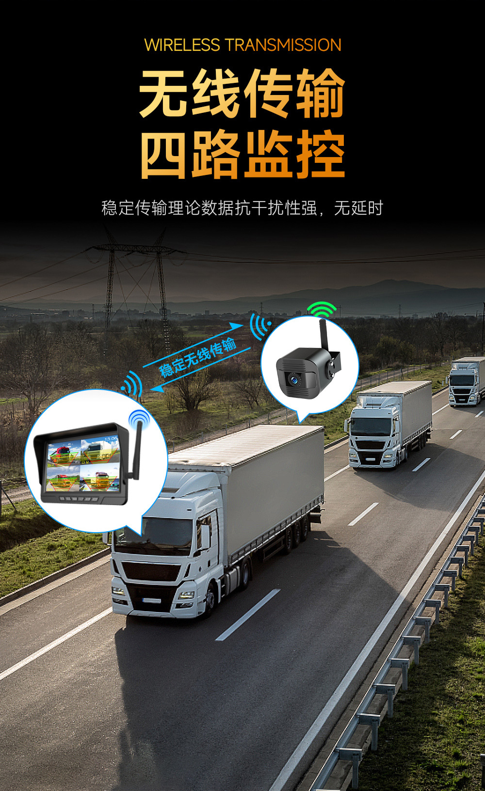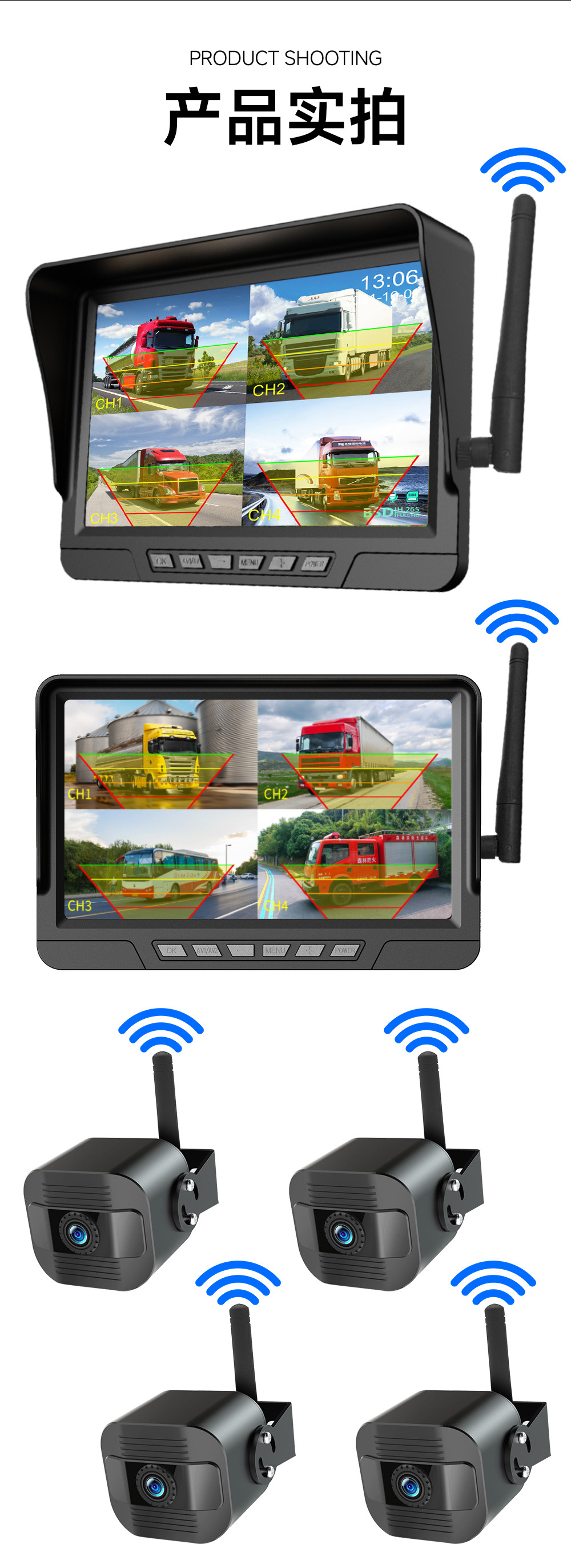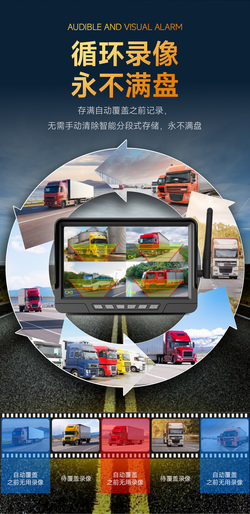 此款可以选择搭配7寸/10寸屏幕的无线记录仪,支持多种语言版本,可选1~4路,产品安装方便,操作简单,无需布线,屏幕点烟器供电 即插即用,带BSD算法