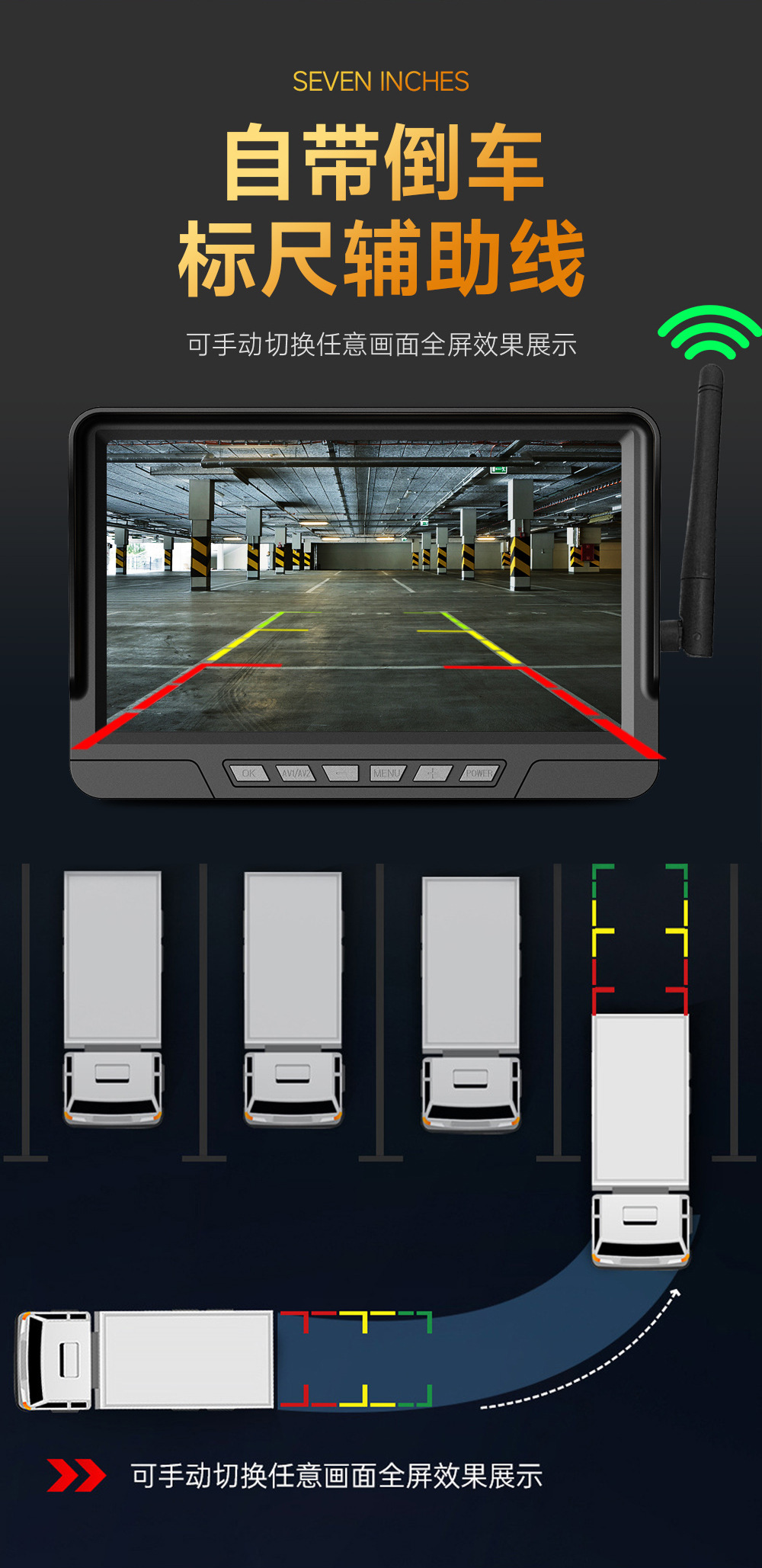 • 7inch 트럭 무선 모니터 + 4개의 별빛 풀 컬러 카메라 반전 이미지