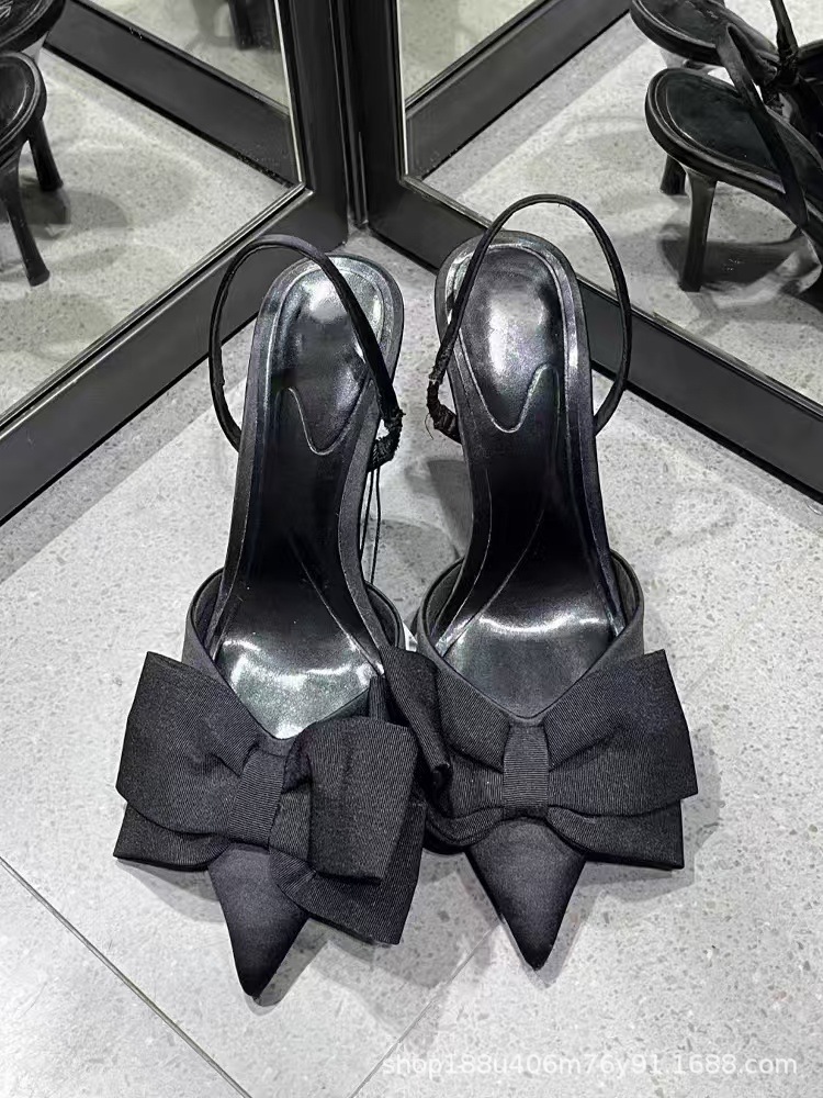 2025 새로운 스타일 연예인 포인팅 블랙 활 연회 여성의 아름다운 샌들 후면 빈 탑 여성 싱글 레이어 신발스토어 가기