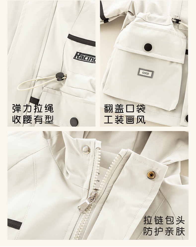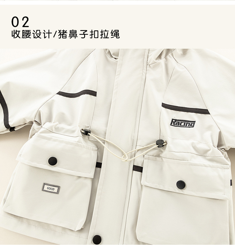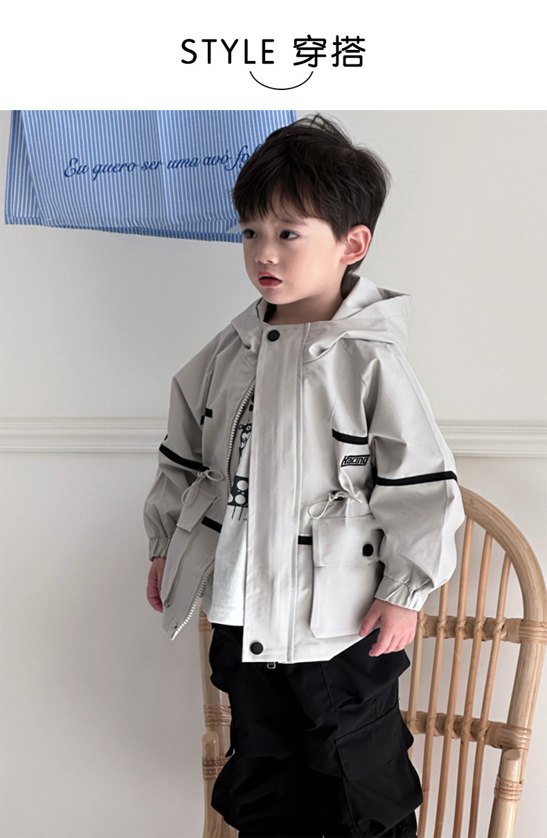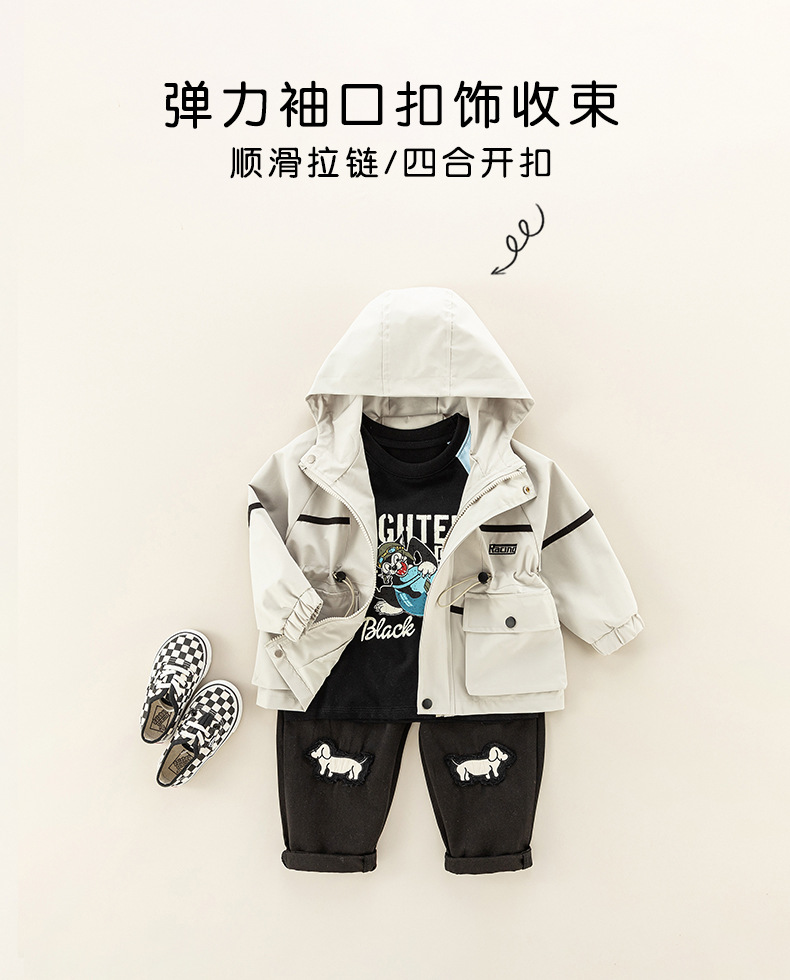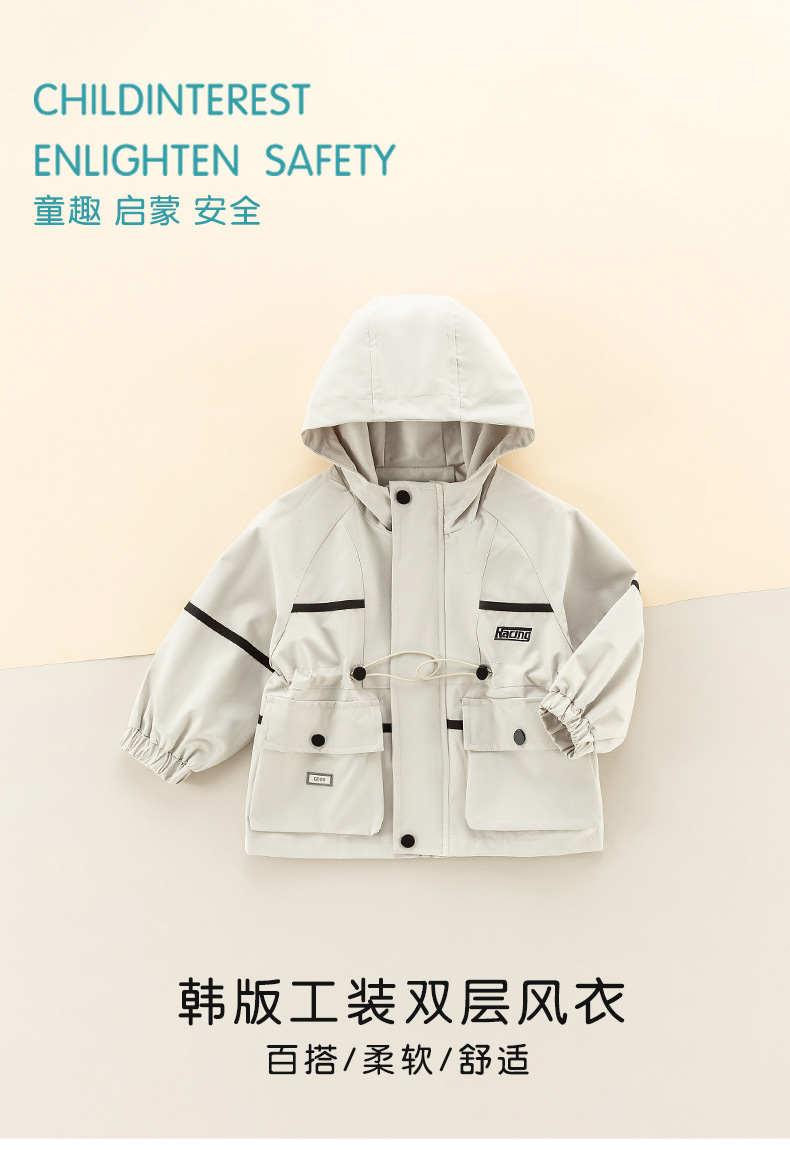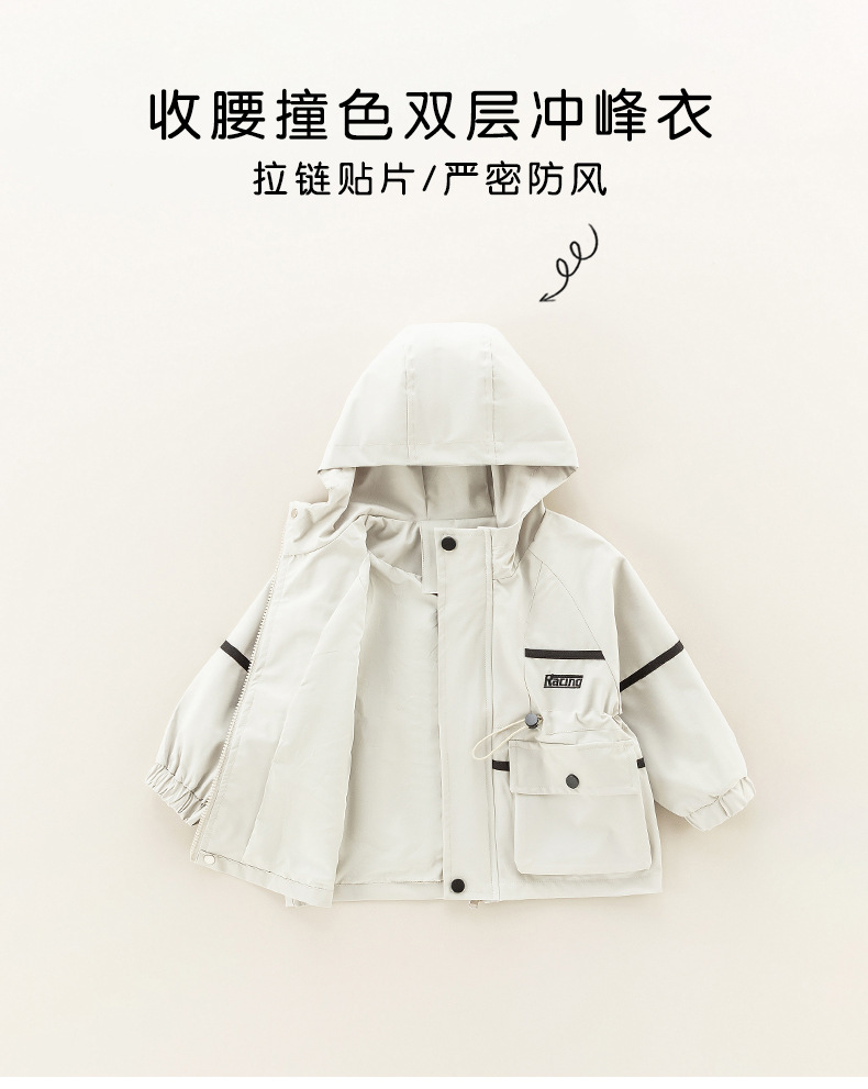 儿童外套春季新款男童韩版冲锋衣女童防风连帽衫春装小童工装上衣