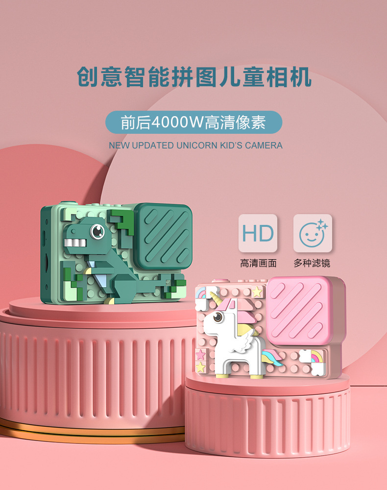 국경 창조적 인 어린이 카메라 새로운 사자 빌딩 블록 HD 더블 카메라 만화 장난감 제조 업체 디지털 카메라