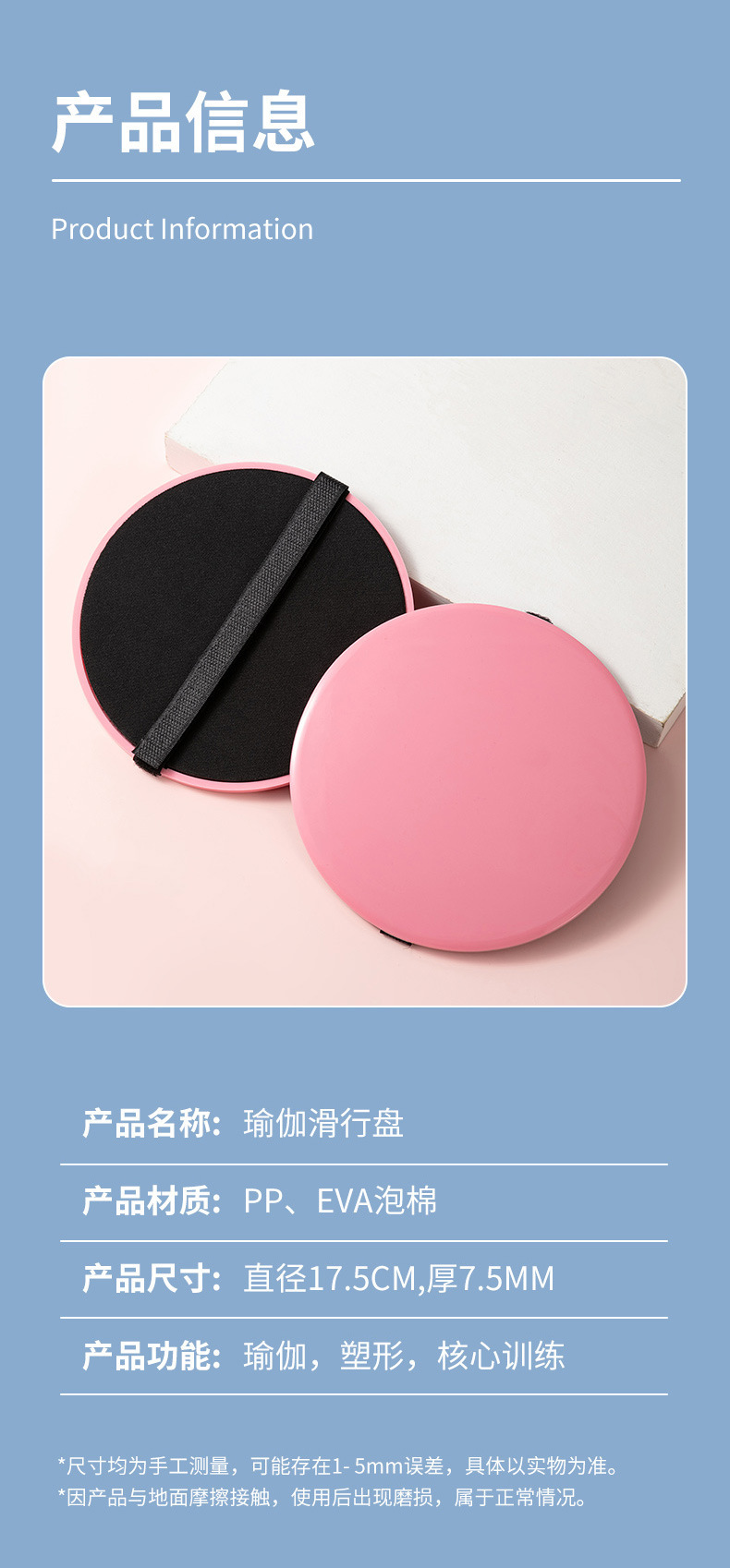 本产品一套(里面2片),按套卖; 圆形直径:17.8cm 三角形直径:19.5cm 椭圆形:23*15cm 椭圆形滑盘:380克重1对 (含彩盒) 产品表面贴防尘膜保护 彩盒包装,彩盒外面opp袋子塑封 圆形滑盘(彩袋装) 50套1箱 ;47.5*38.5*19cm 毛重9kg 圆形滑盘(彩盒装) 50套1箱;53*20*38cm 毛重12kg 椭圆形滑盘(彩盒装)20套1箱;58.5*32*25cm 毛重8.6kg