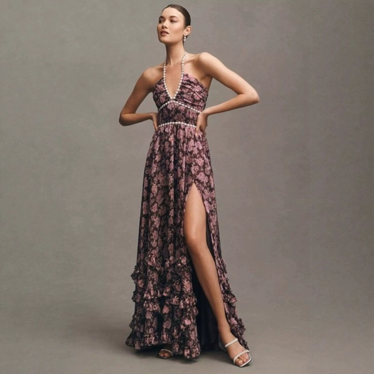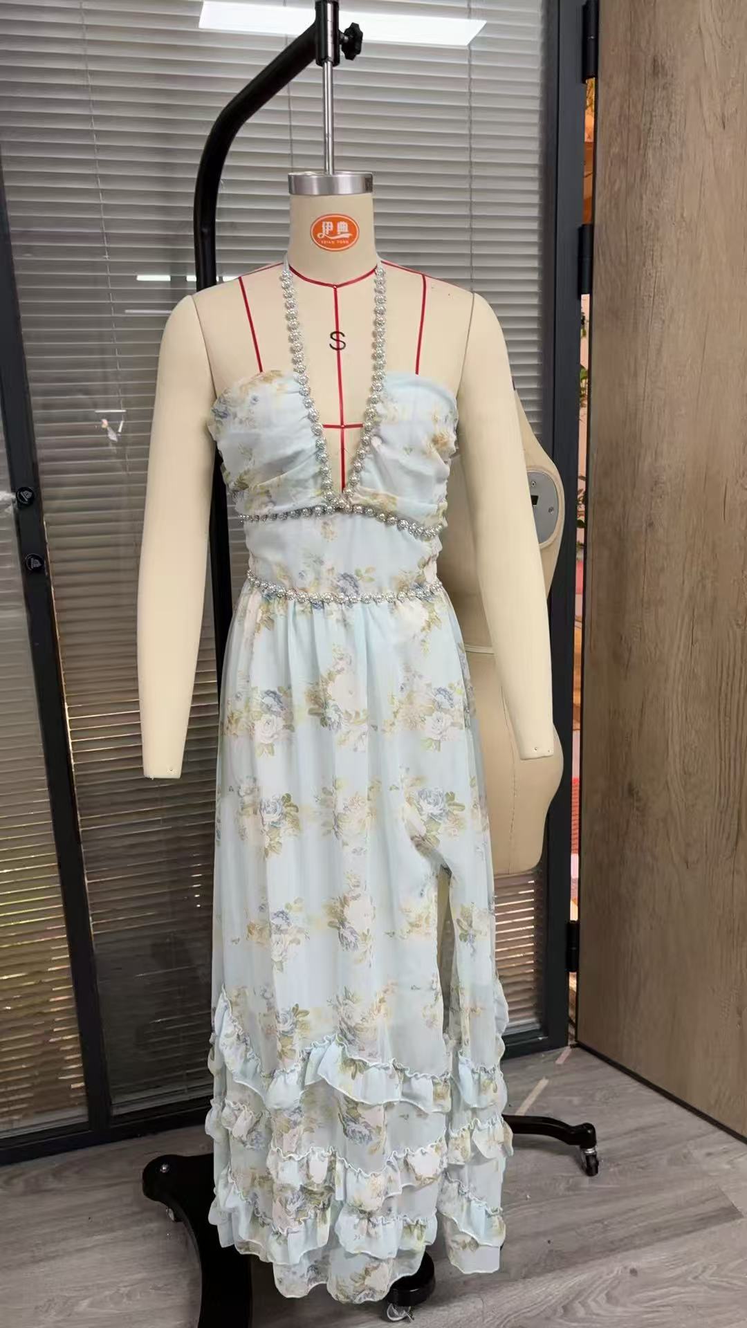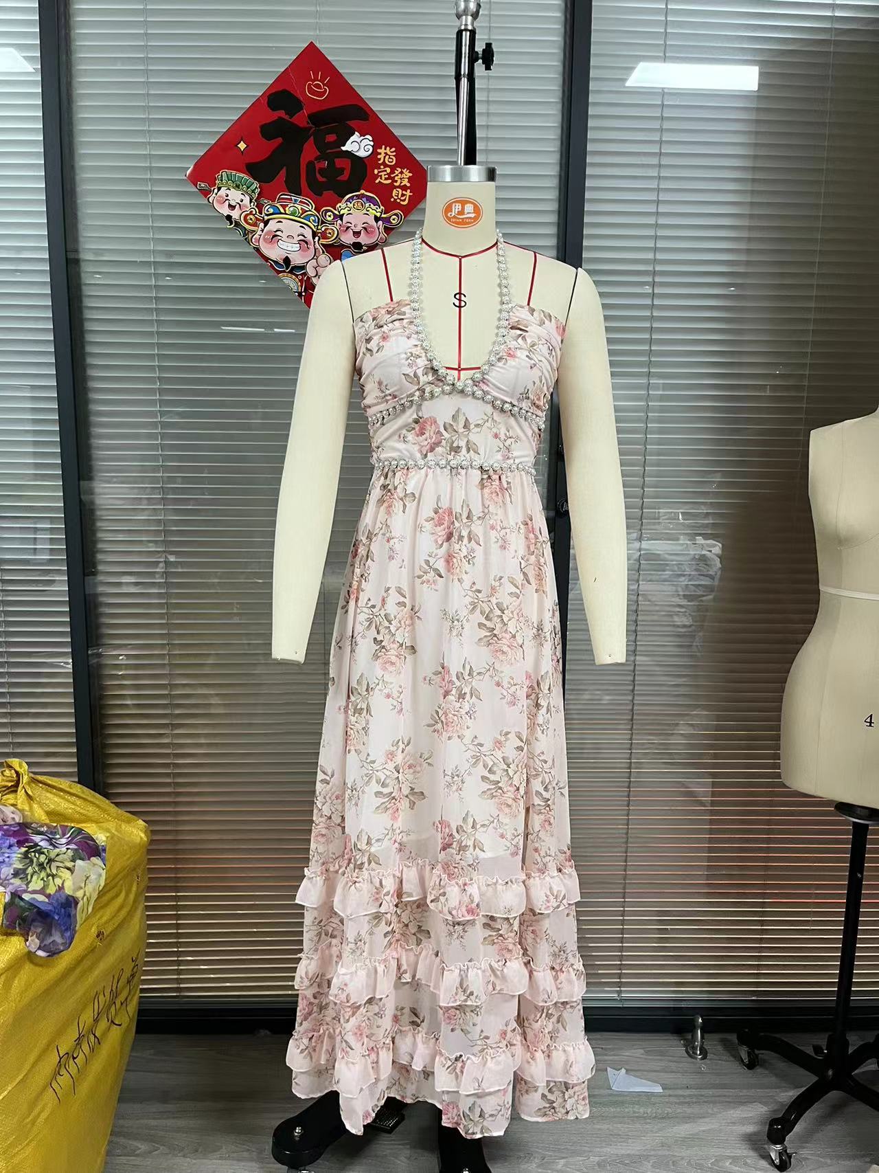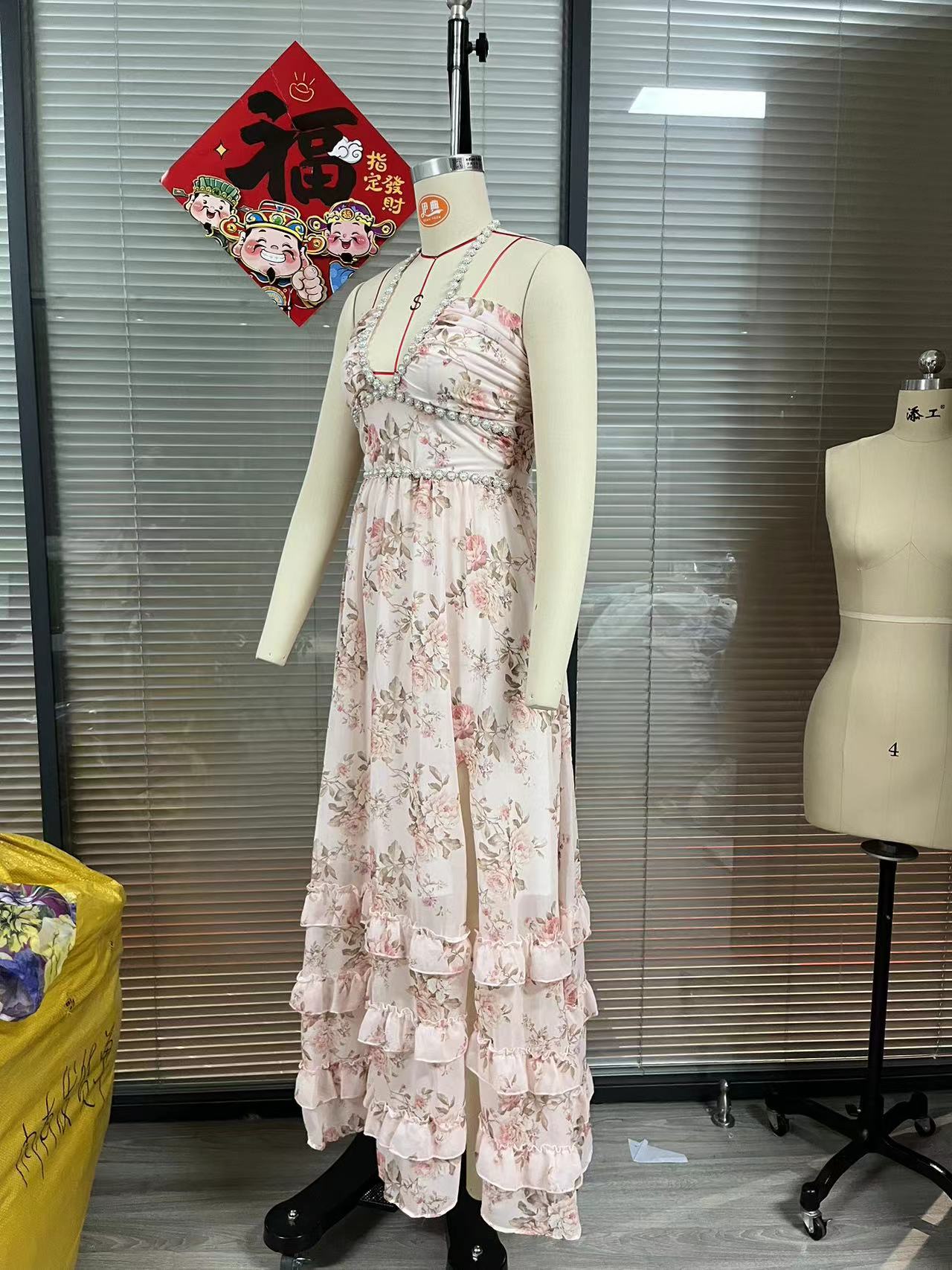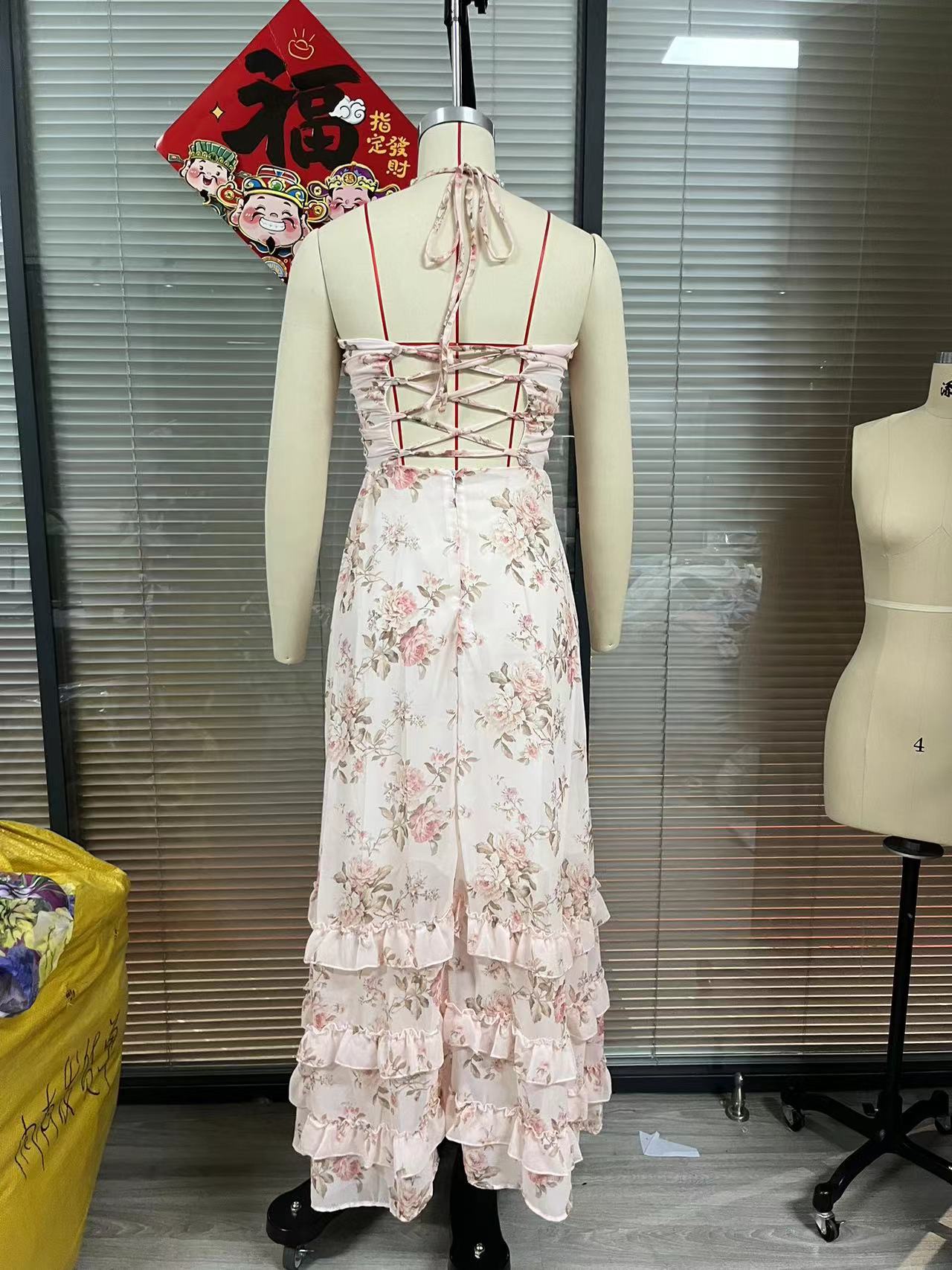 아마존 봄과 여름 폭발 대외 무역 여성의 우아한 우아한 원피스 슬림 핏 대형 스윙 홀리데이 슬링 롱 원피스 인쇄